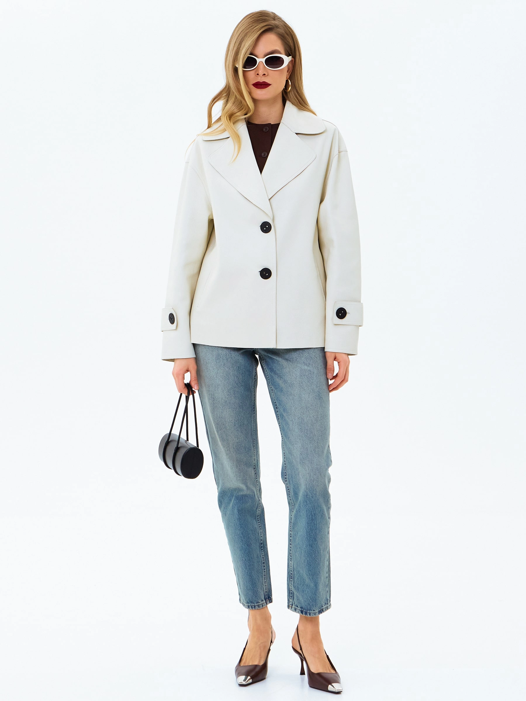 Белый кожаный женский пиджак премиум класса 3097, размер 44, артикул 24720