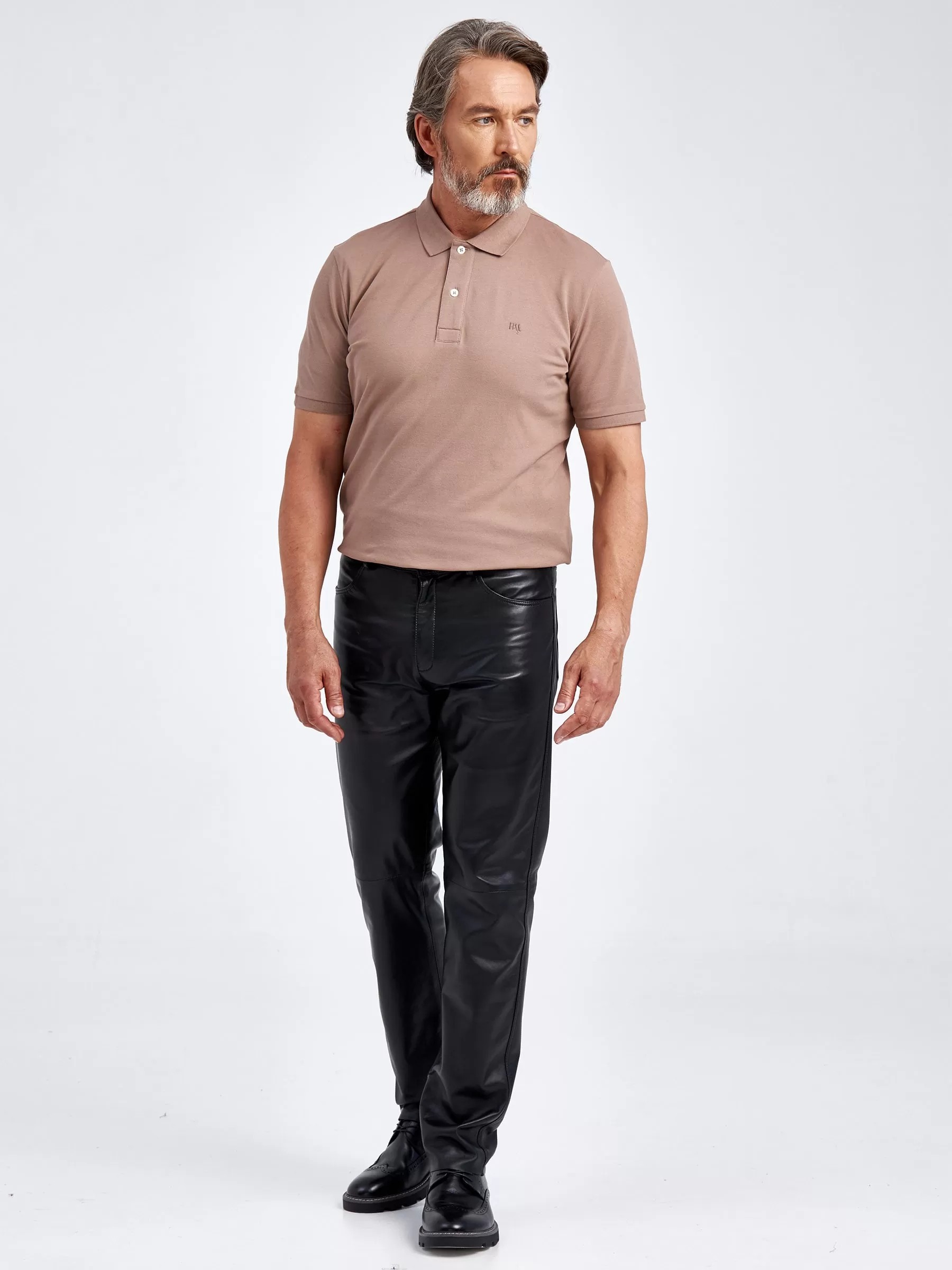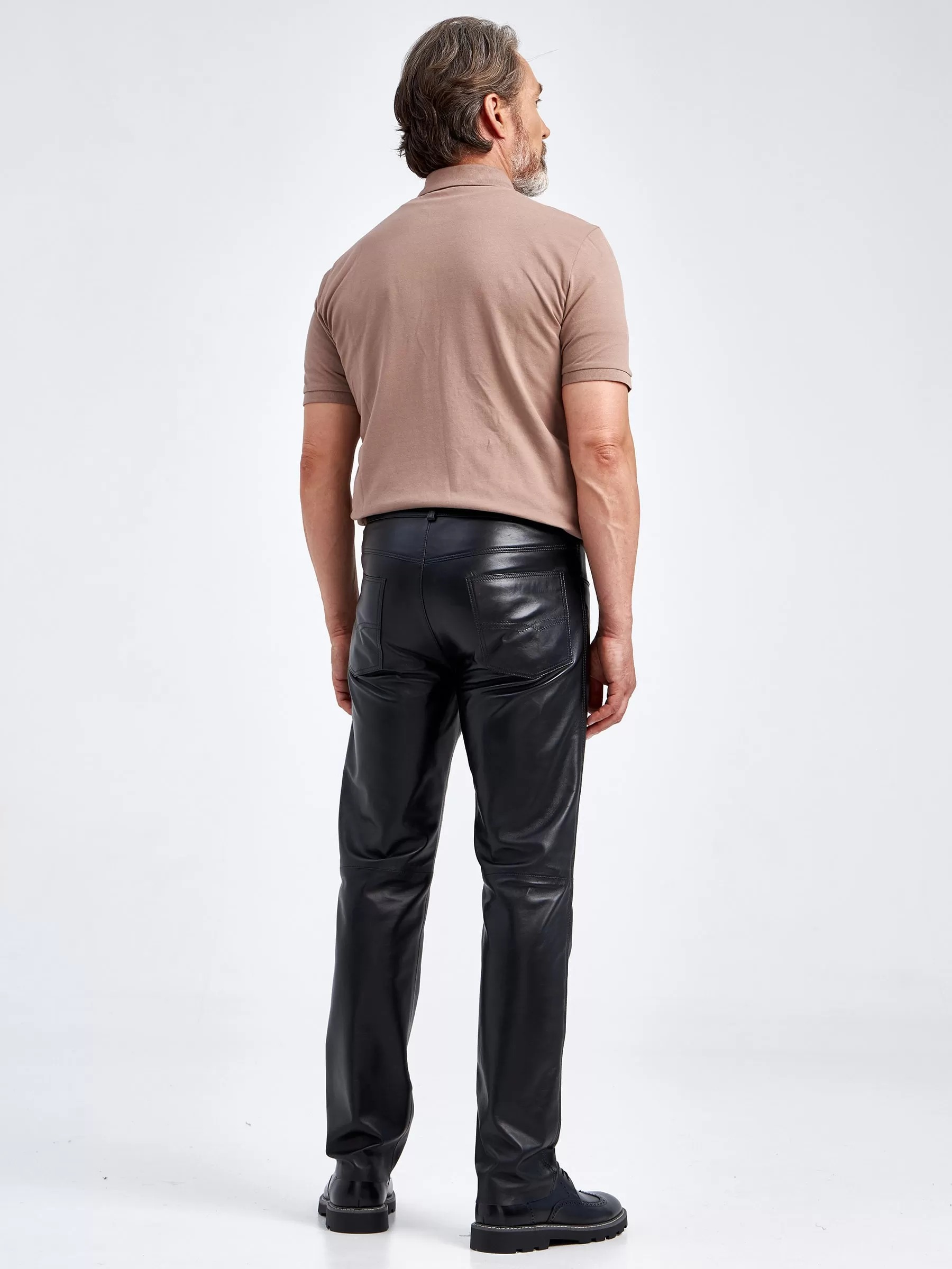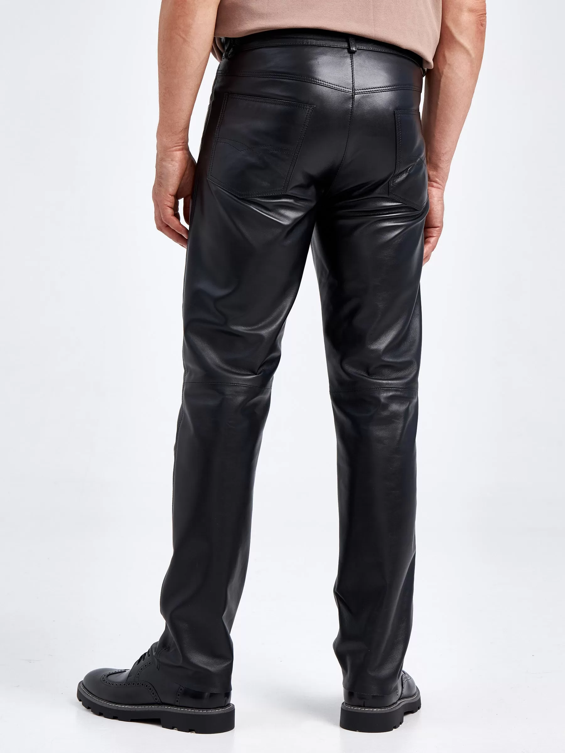 Мужские брюки из натуральной кожи премиум класса 01, черные, размер 48, артикул 120011