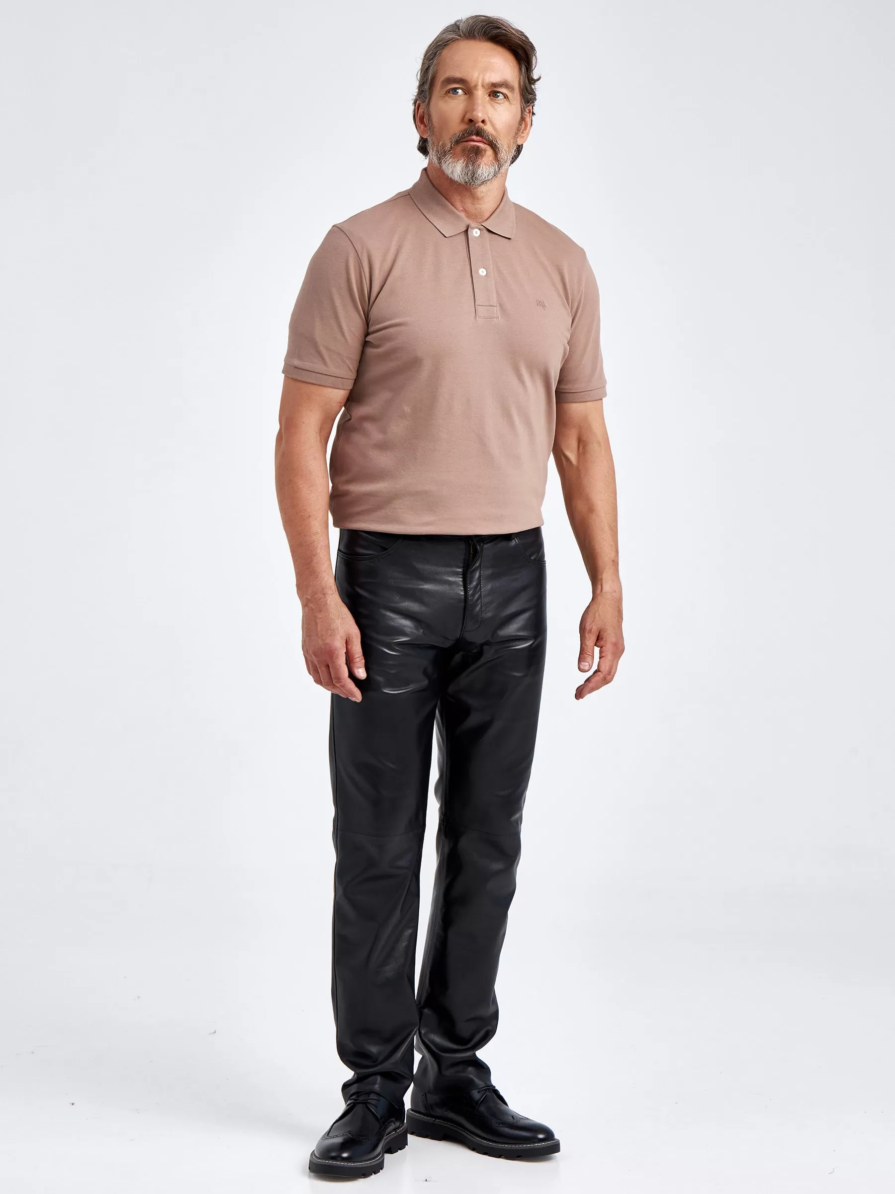 Прямые кожаные джинсы с классическим кроем. Модель поможет сформировать самые разные образы, одинаково удачно сочетаясь как с футболкой и кедами, так и с пальто и челси. Кожа особенно мягкая и слегка эластичная, поэтому вещь комфортно садится по фигуре и не сковывает движения.