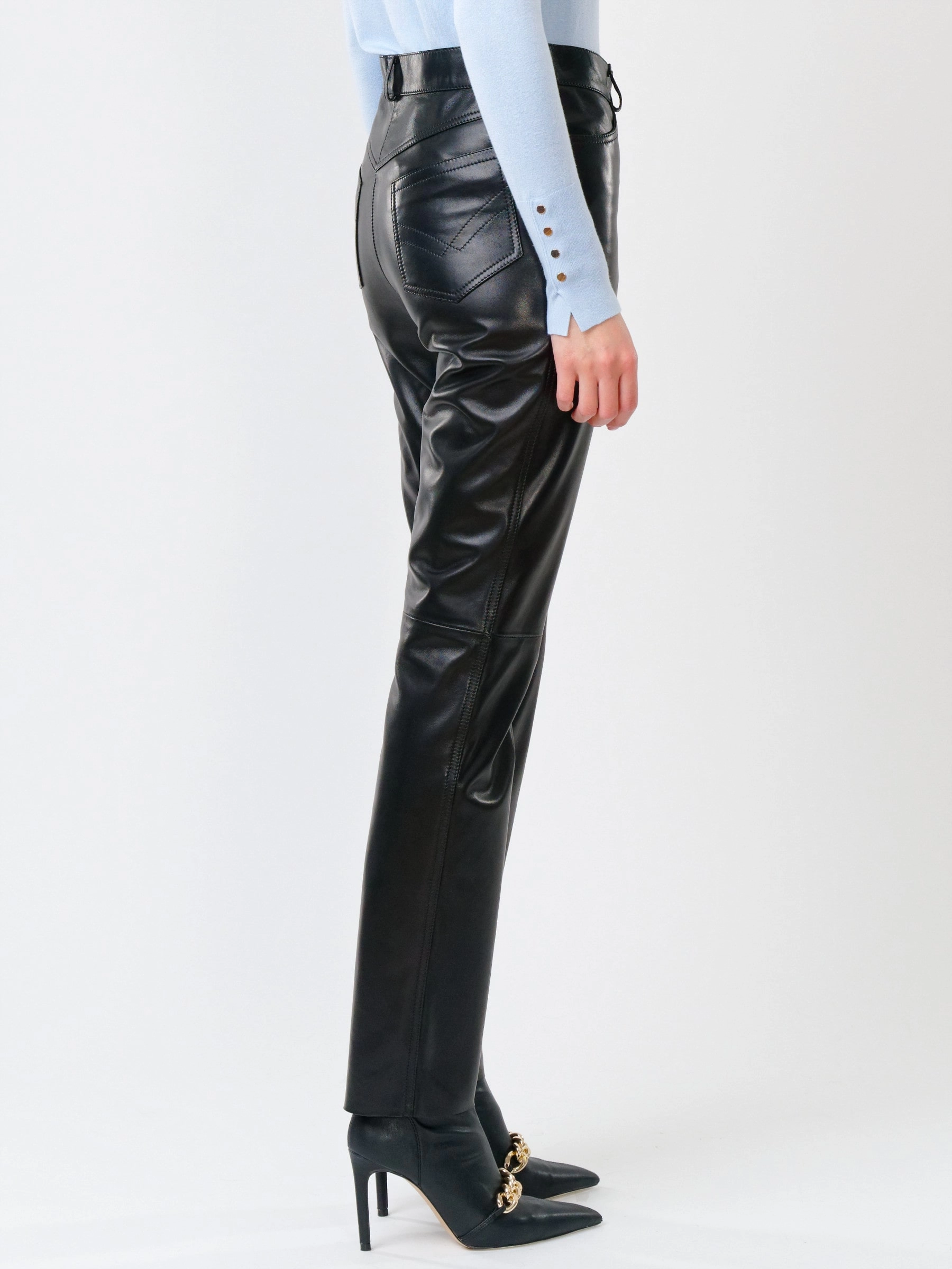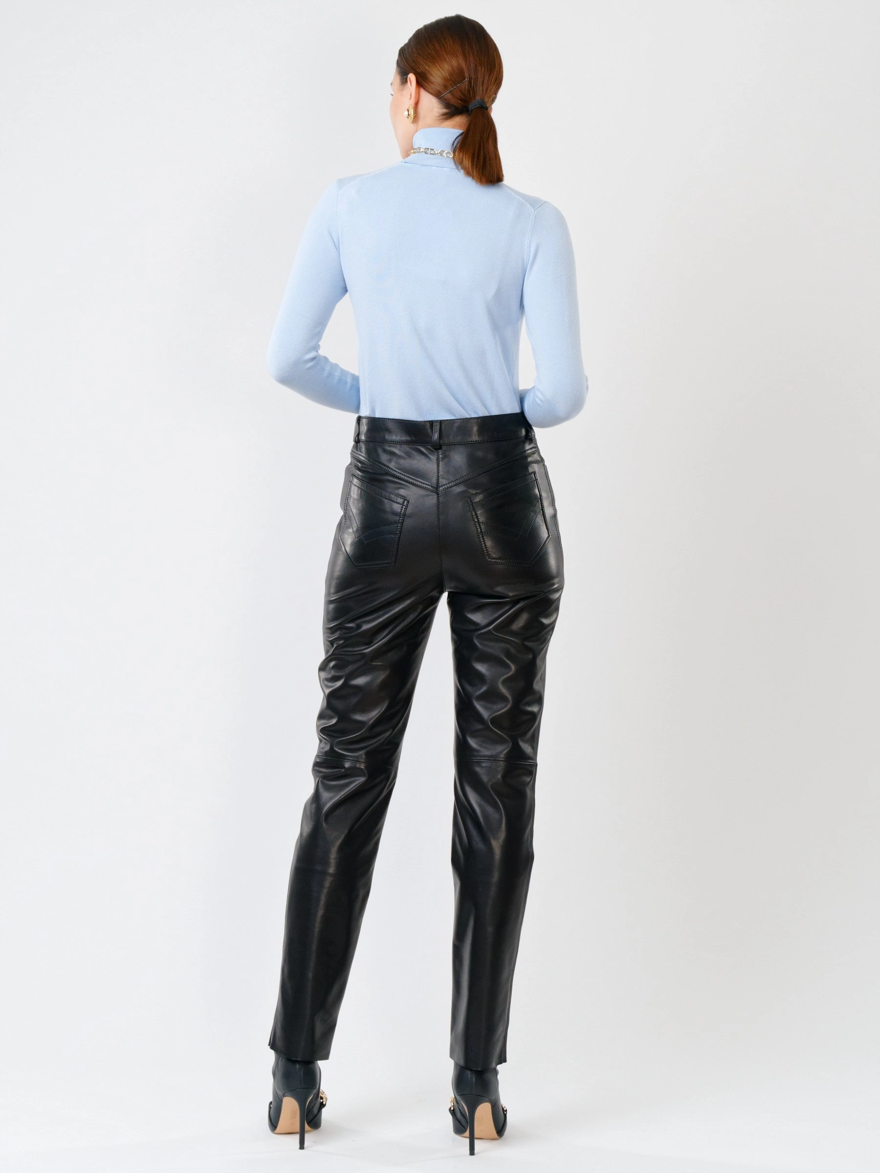 Кожаные зауженные женские брюки 02, черные, размер 44, артикул 85230