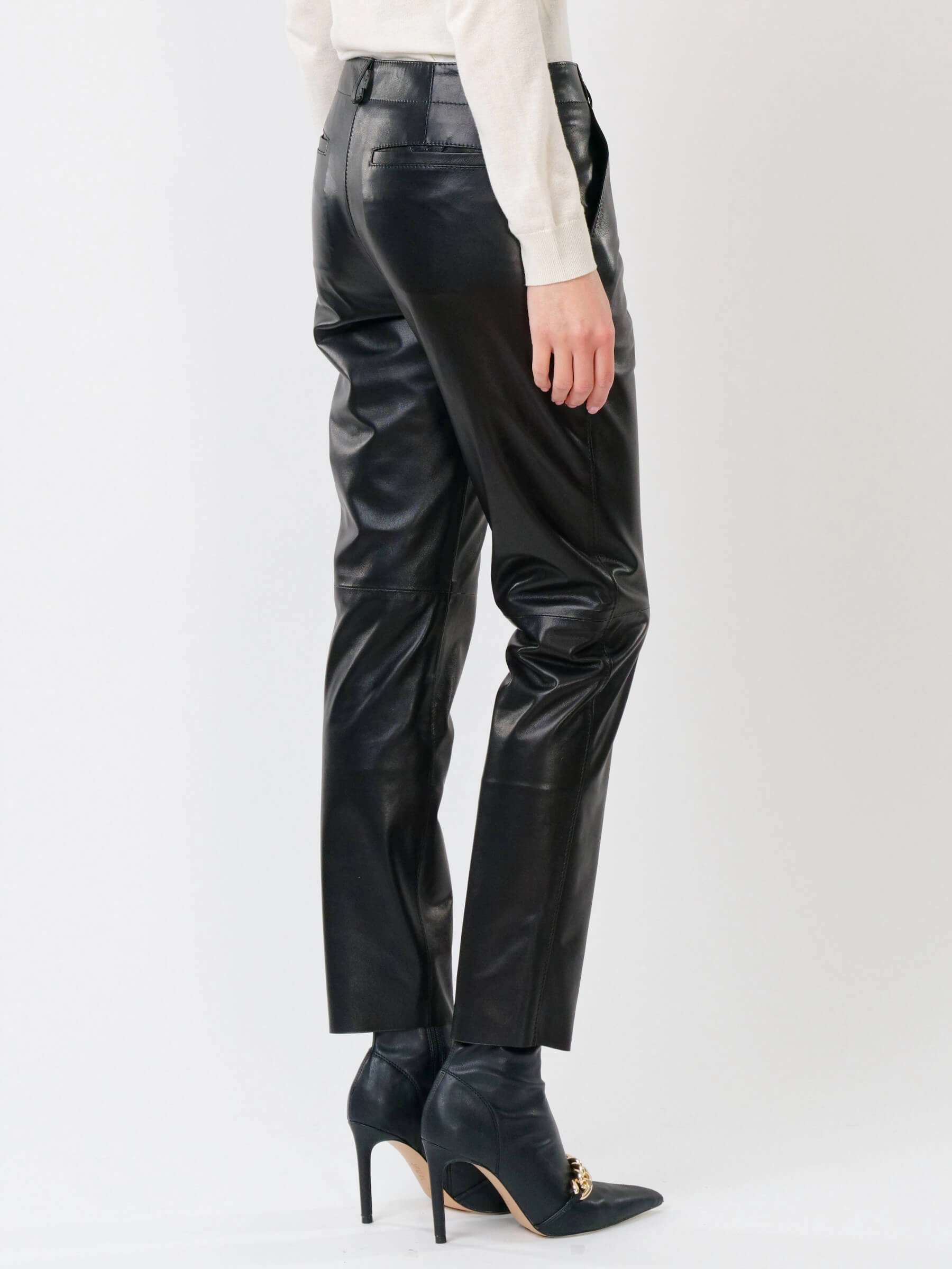 Зауженные женские кожаные брюки 03, черные, размер 48, артикул 85240