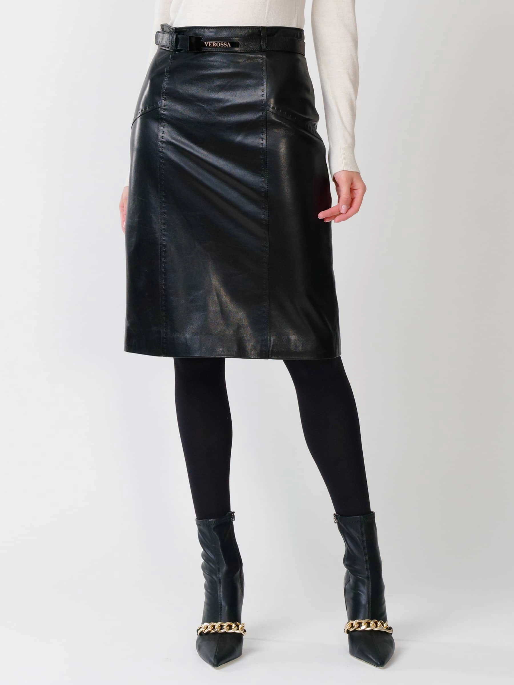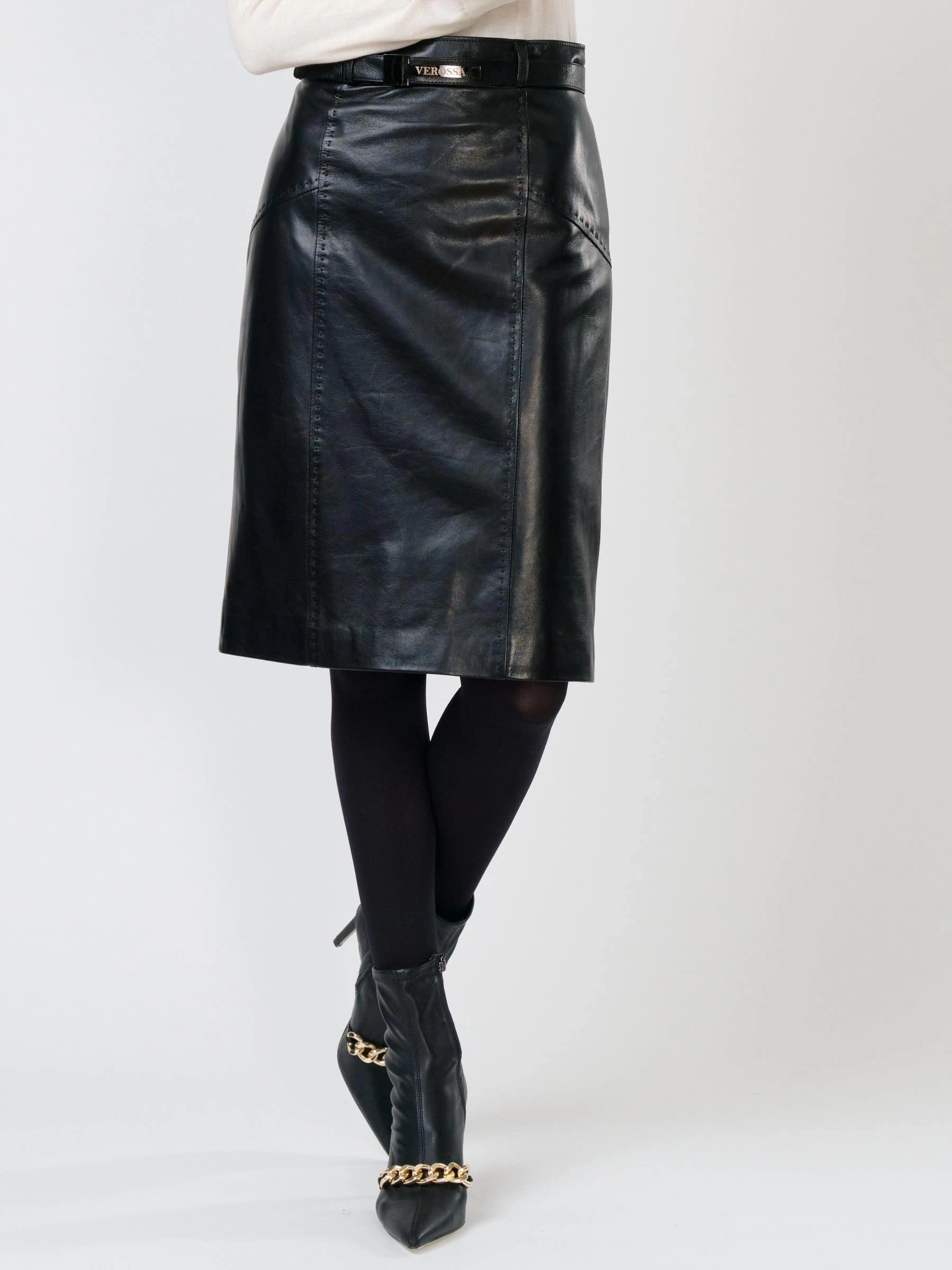 Товар черная кожаная юбка карандаш 02рс, размер 52, артикул 85481 выполнен из натуральной кожи с застежкой молния. Рассчитан на сезон: демисезон. Длина изделия 64 см, силуэт прямой.