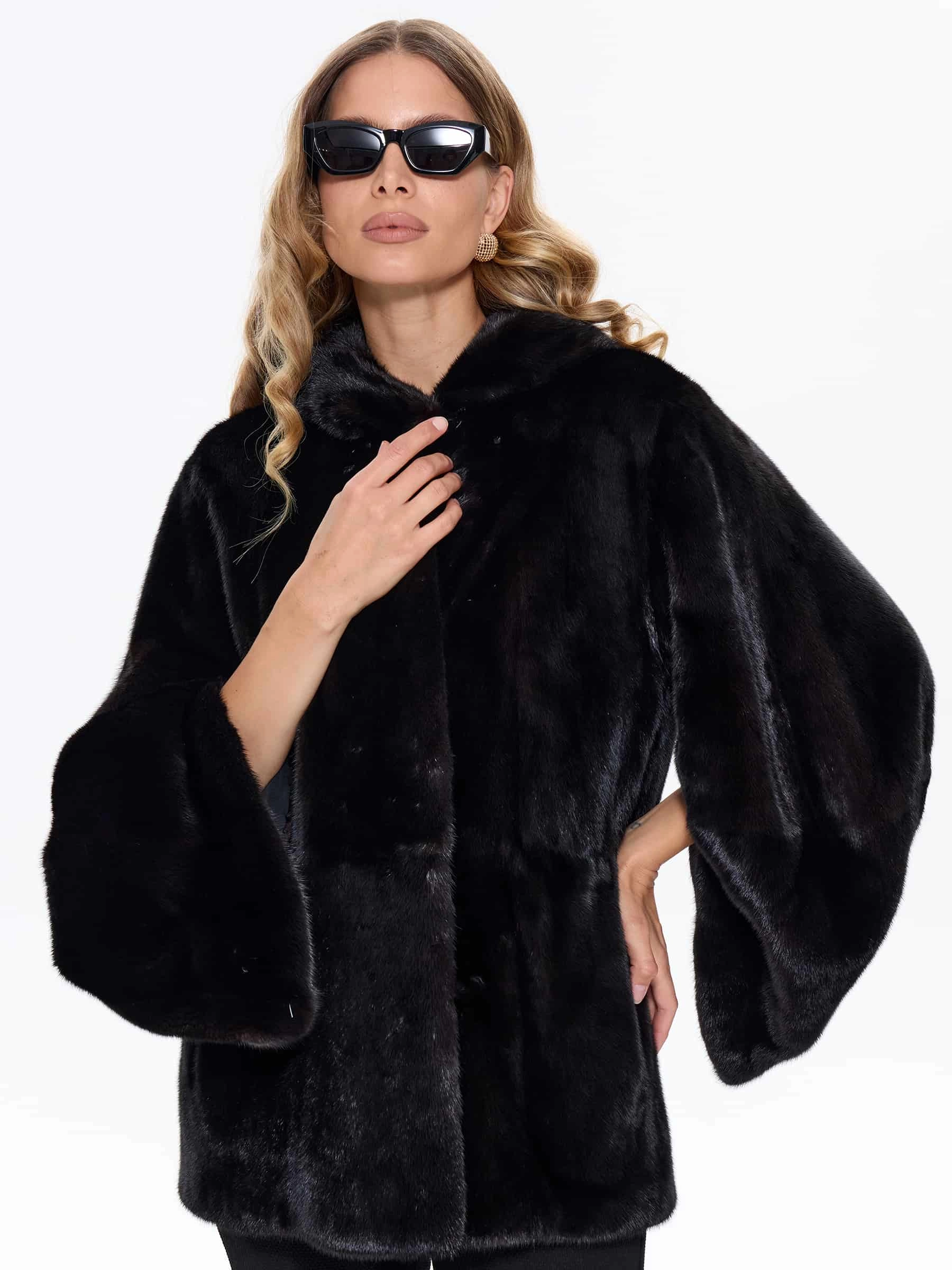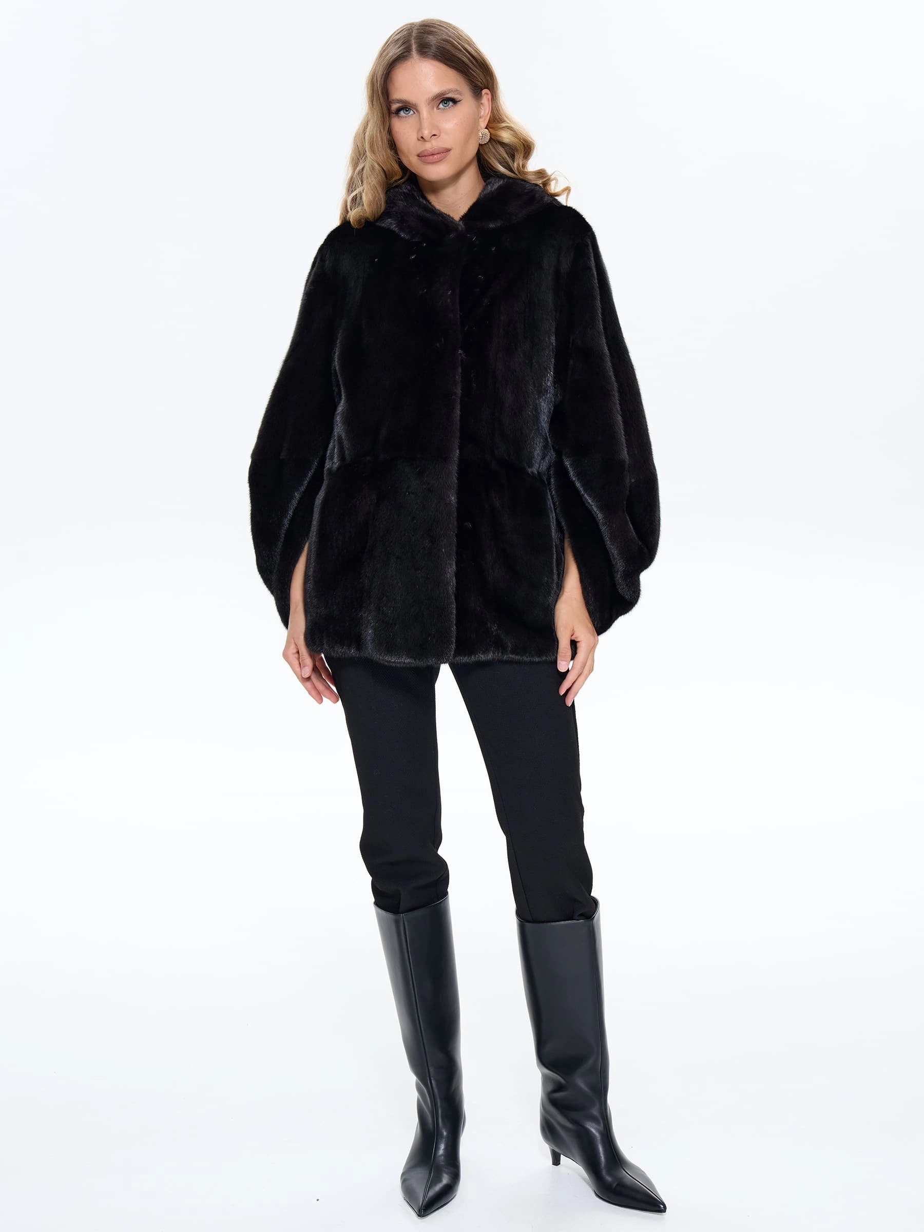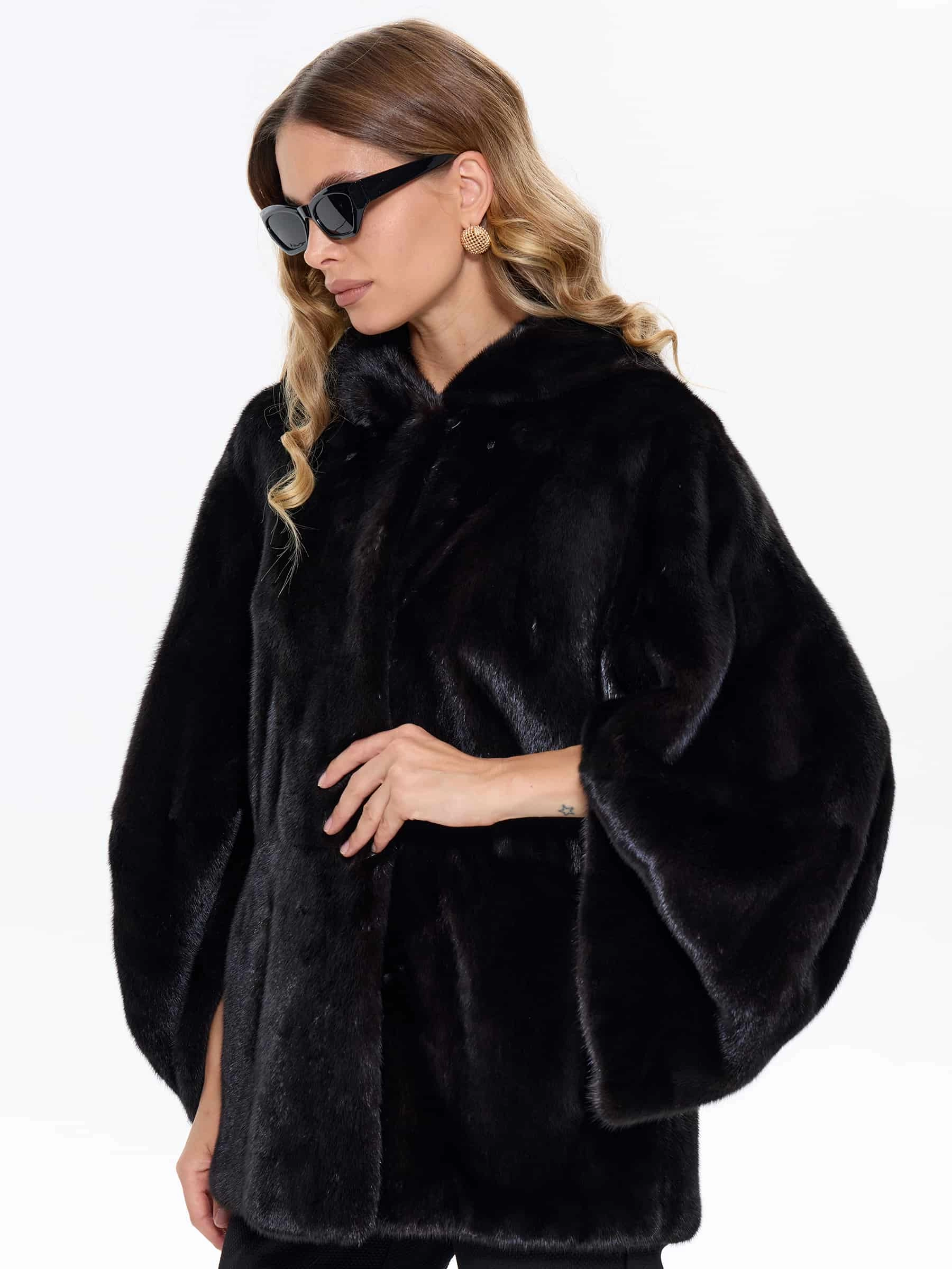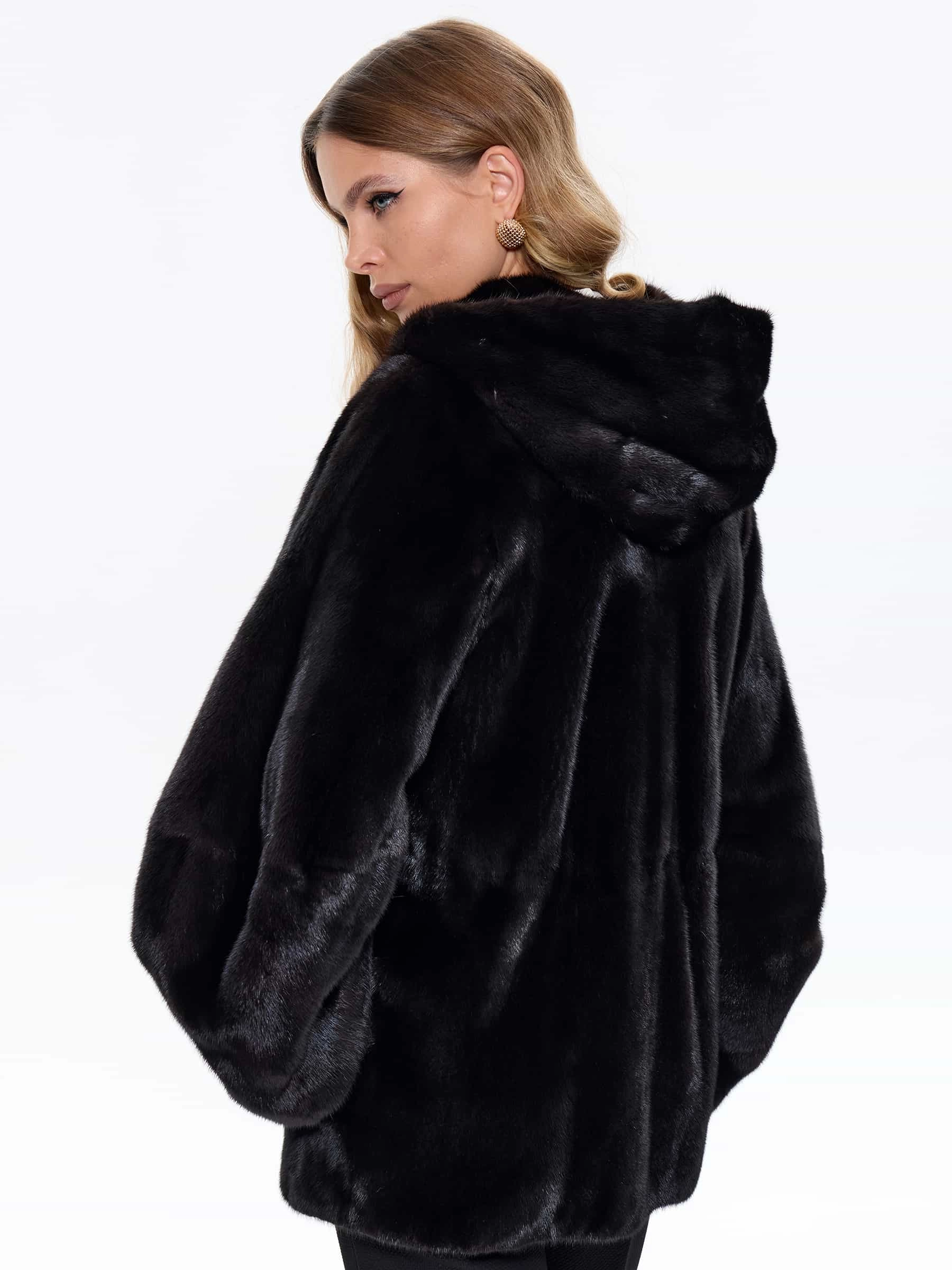 Женская шуба BRASCHI из натурального меха норки представлена в классическом прямом силуэте ультракороткой длины примерно 78 см, специально разработанной для удобства автоледи и активного образа жизни. Модель выполнена с аккуратными втачными рукавами и оснащена многофункциональным капюшоном-трансформером, который легко превращается в стильный объемный воротник, при этом лаконичный дизайн без декоративной отделки подчеркивает природную красоту и безупречное качество меха норки. Шуба застегивается на надежные металлические клипсы, имеет комфортную вискозную подкладку и выполнена в редком благородном оттенке Violet Fox — глубоком холодном цвете с изысканными фиолетово-синеватыми переливами, напоминающими мех чернобурой лисы, что придает образу особую роскошь и элегантность, сохраняя при этом все теплоизоляционные свойства для холодной зимы.