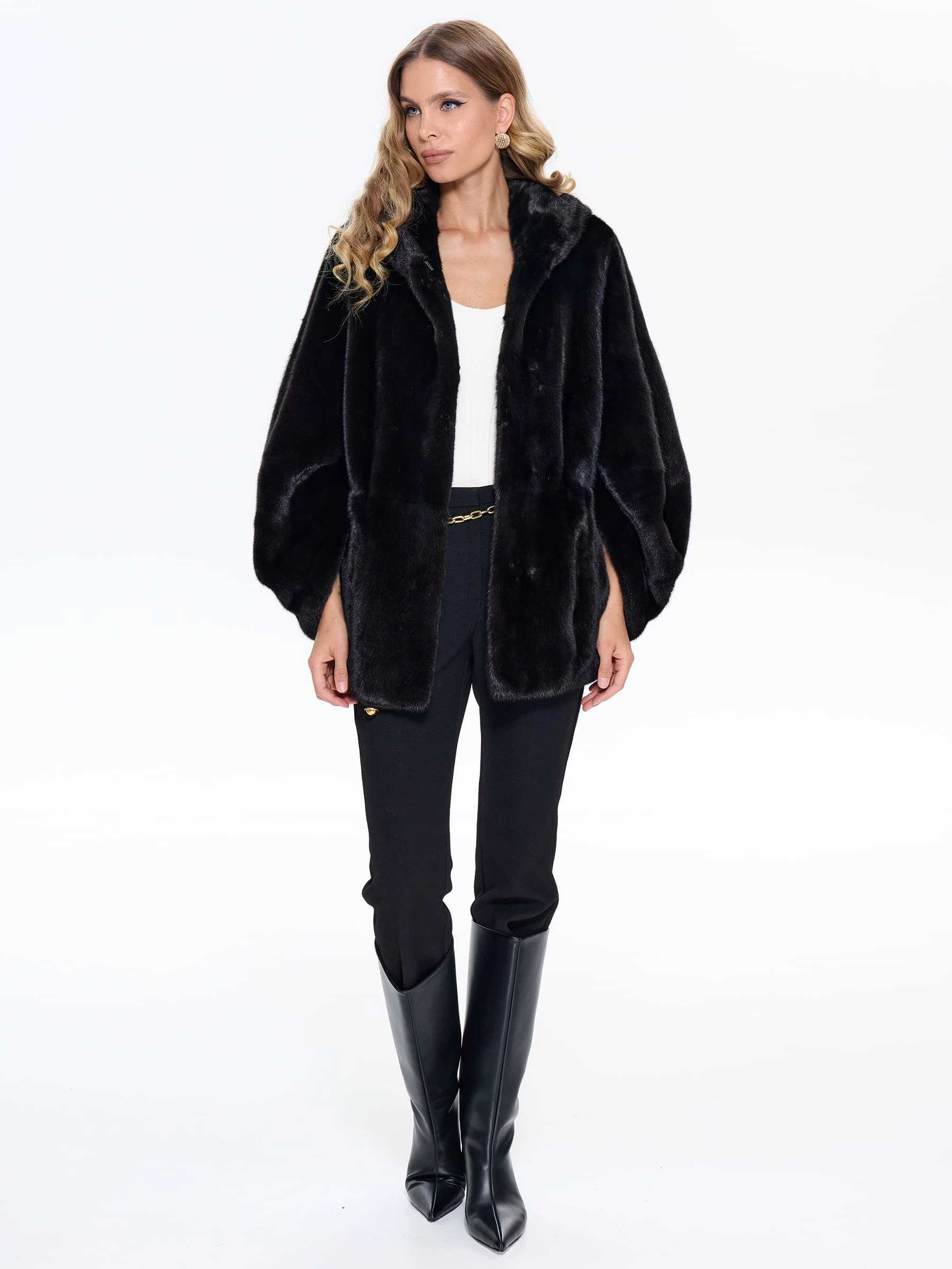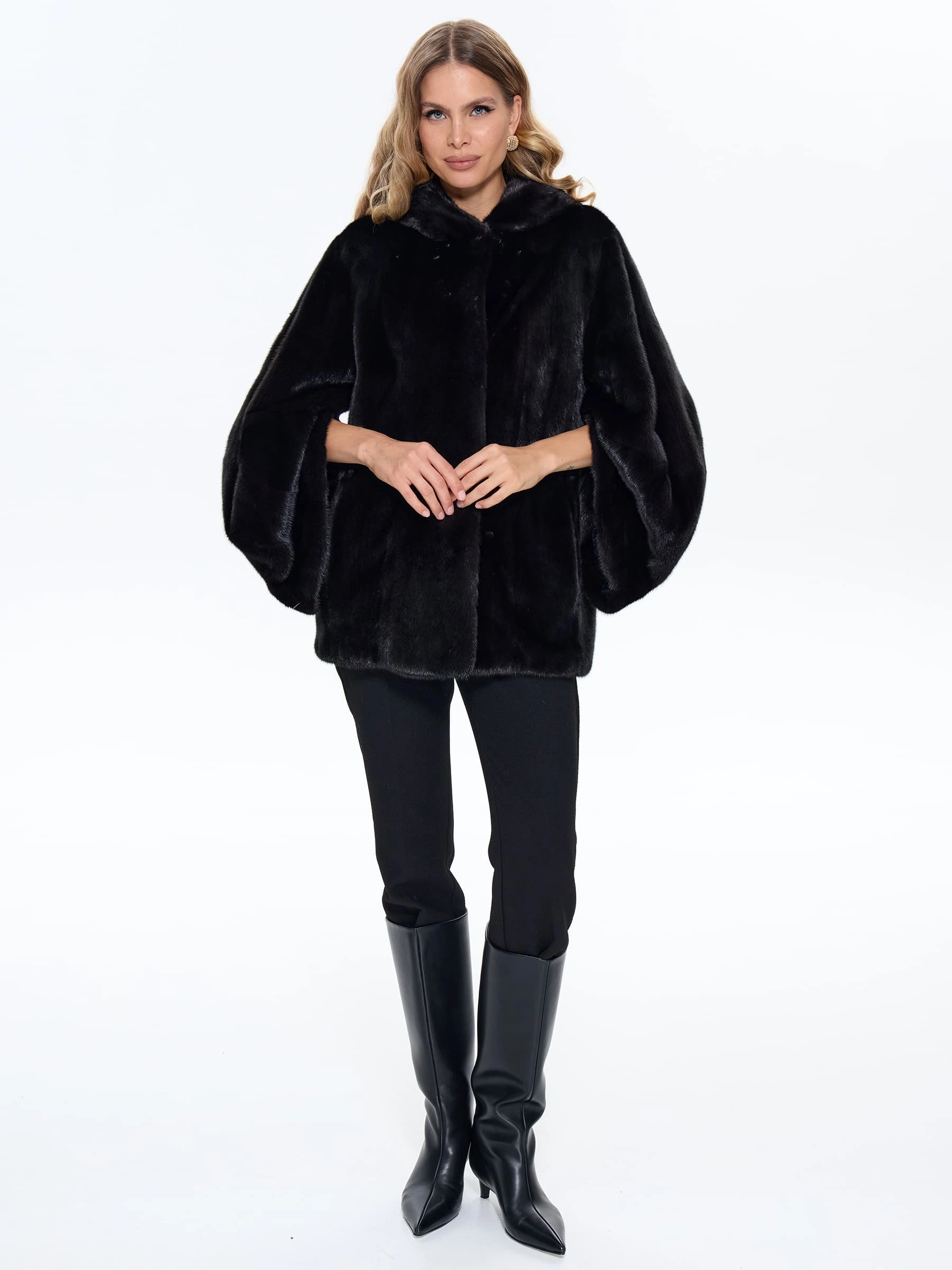 Товар черная норковая шуба braschi 6883.h1, размер 40, артикул 34420 выполнен из норка с застежкой клипсы. Рассчитан на сезон: зима. Длина изделия 70 см, силуэт прямой.