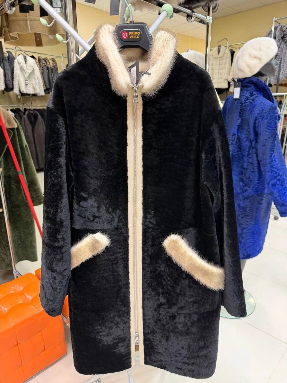 Товар черная женская дубленка из астрагана с мехом норки премиум класса 2018, размер 44, артикул 65140 выполнен из овчина "астраган" с застежкой молния. Рассчитан на сезон: осень-зима. Длина изделия свыше 90 см, силуэт прямой.