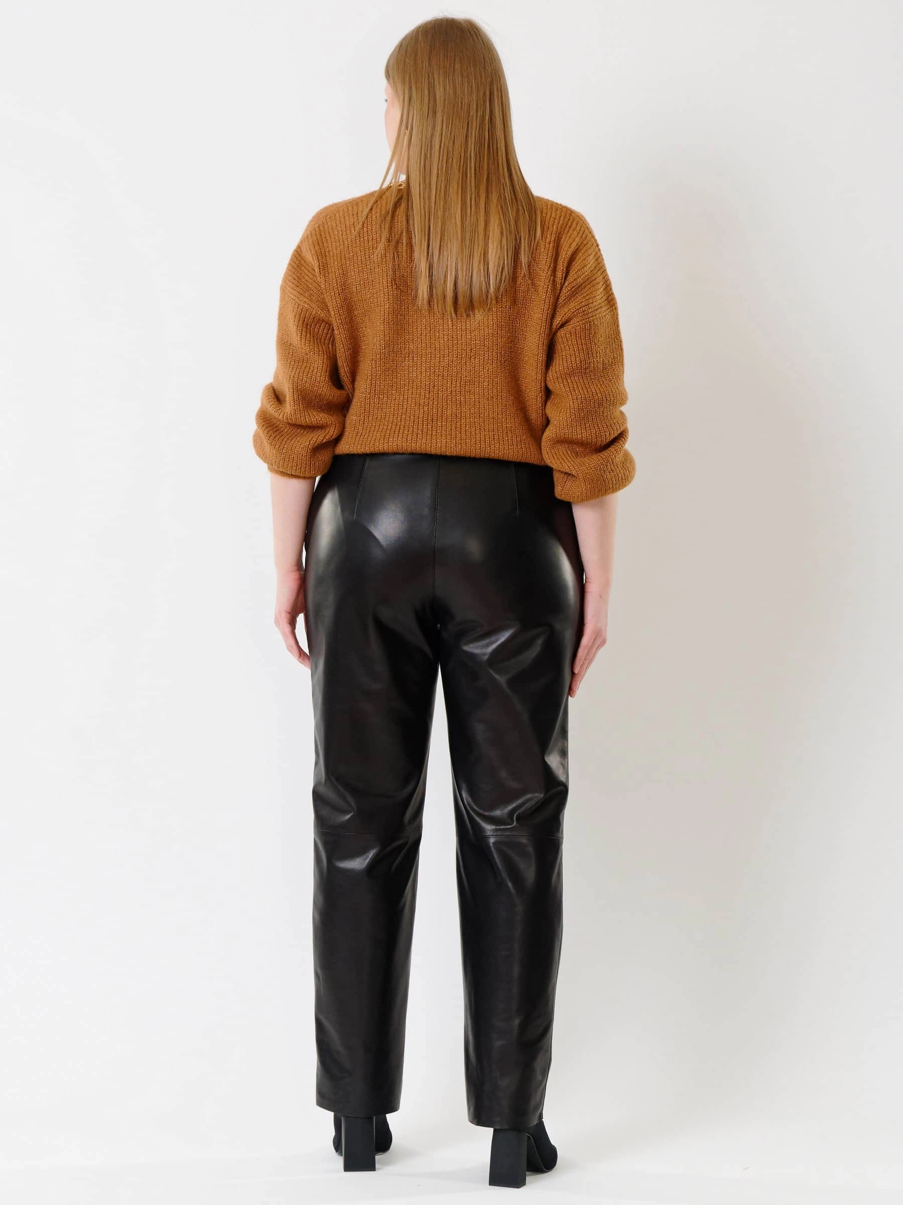 Черные прямые женские кожаные брюки 04, размер 46, артикул 85392