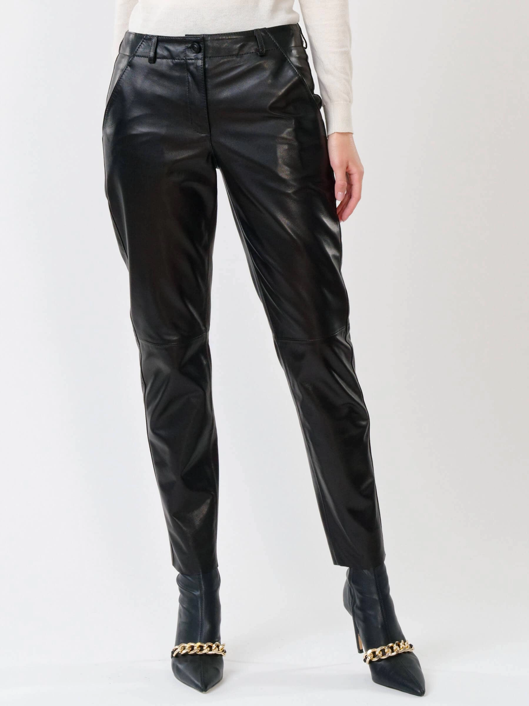 Черные зауженные женские кожаные брюки 03, размер 48, артикул 85502
