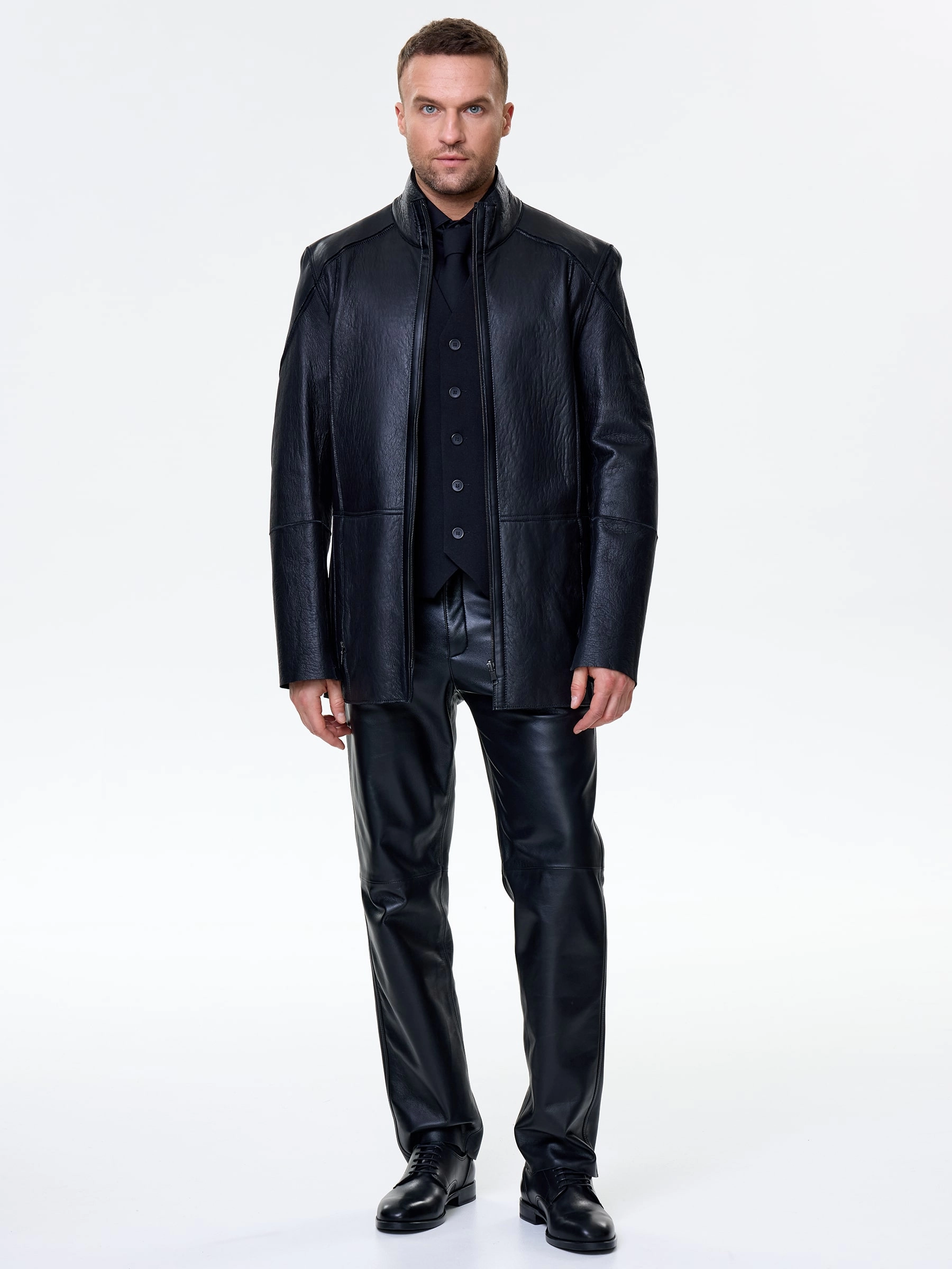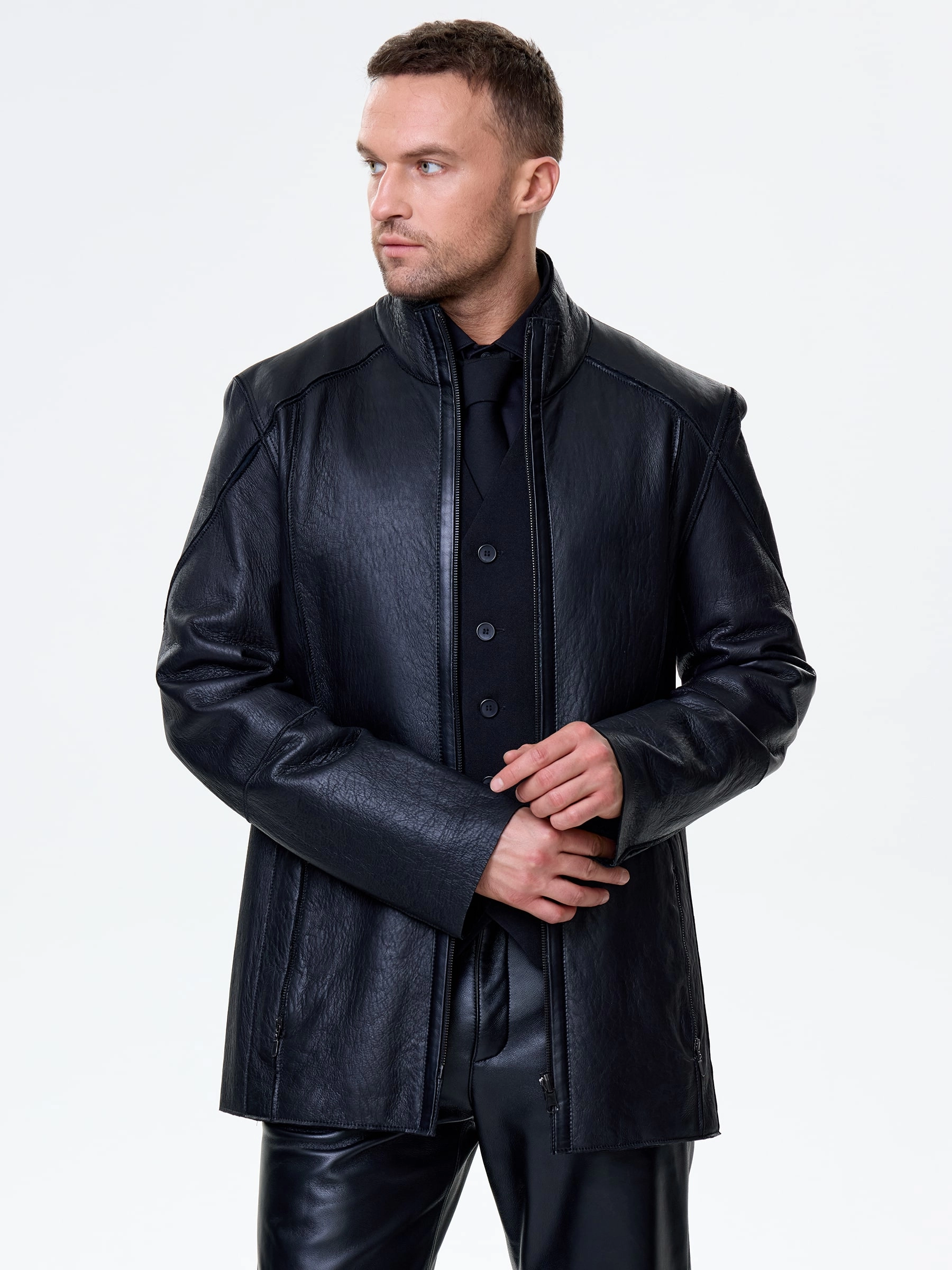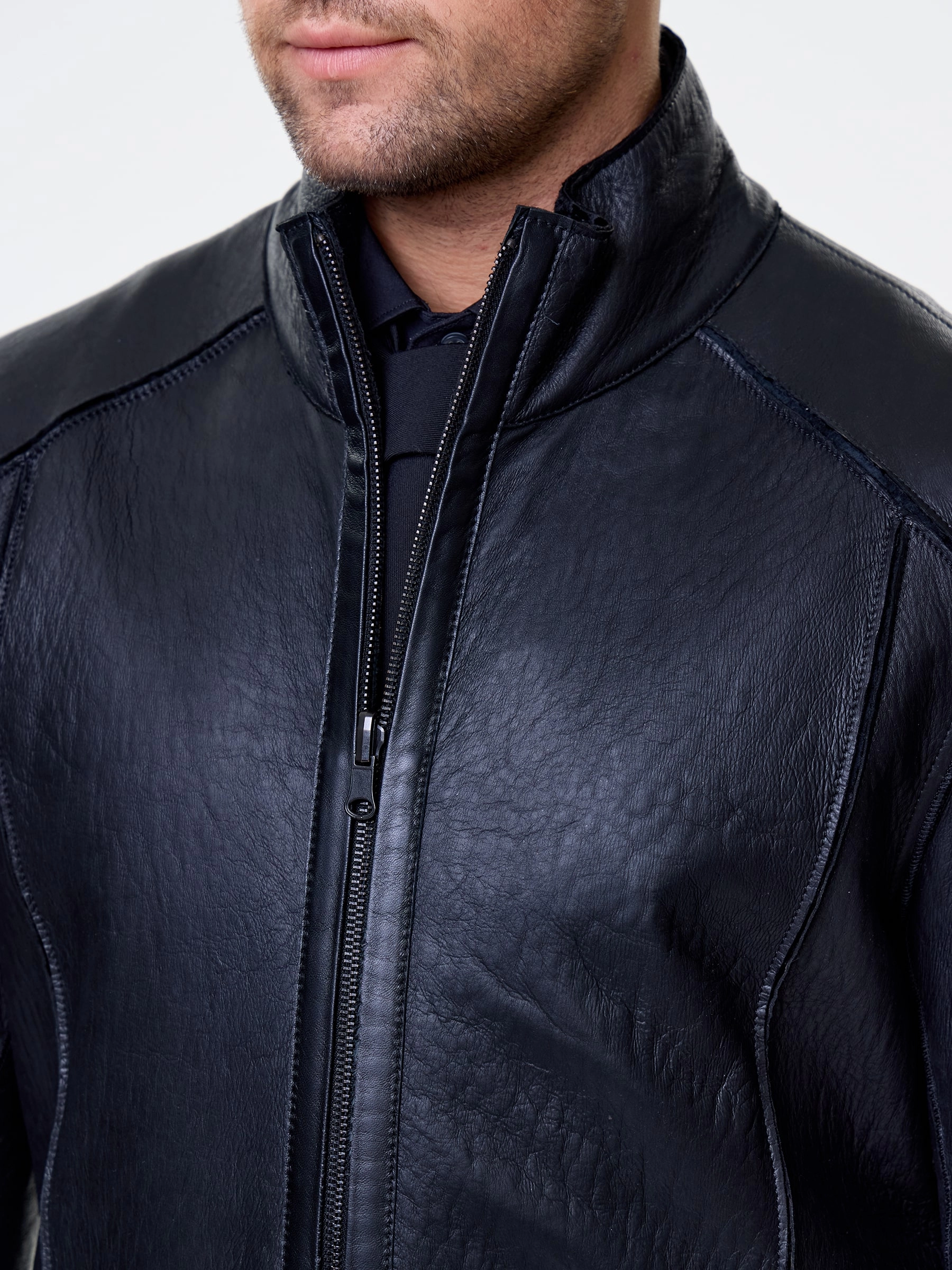Товар демисезонная двусторонняя мужская дубленка премиум класса 409, черная, размер 50, артикул 71590 выполнен из овчина "мерино" с застежкой молния.