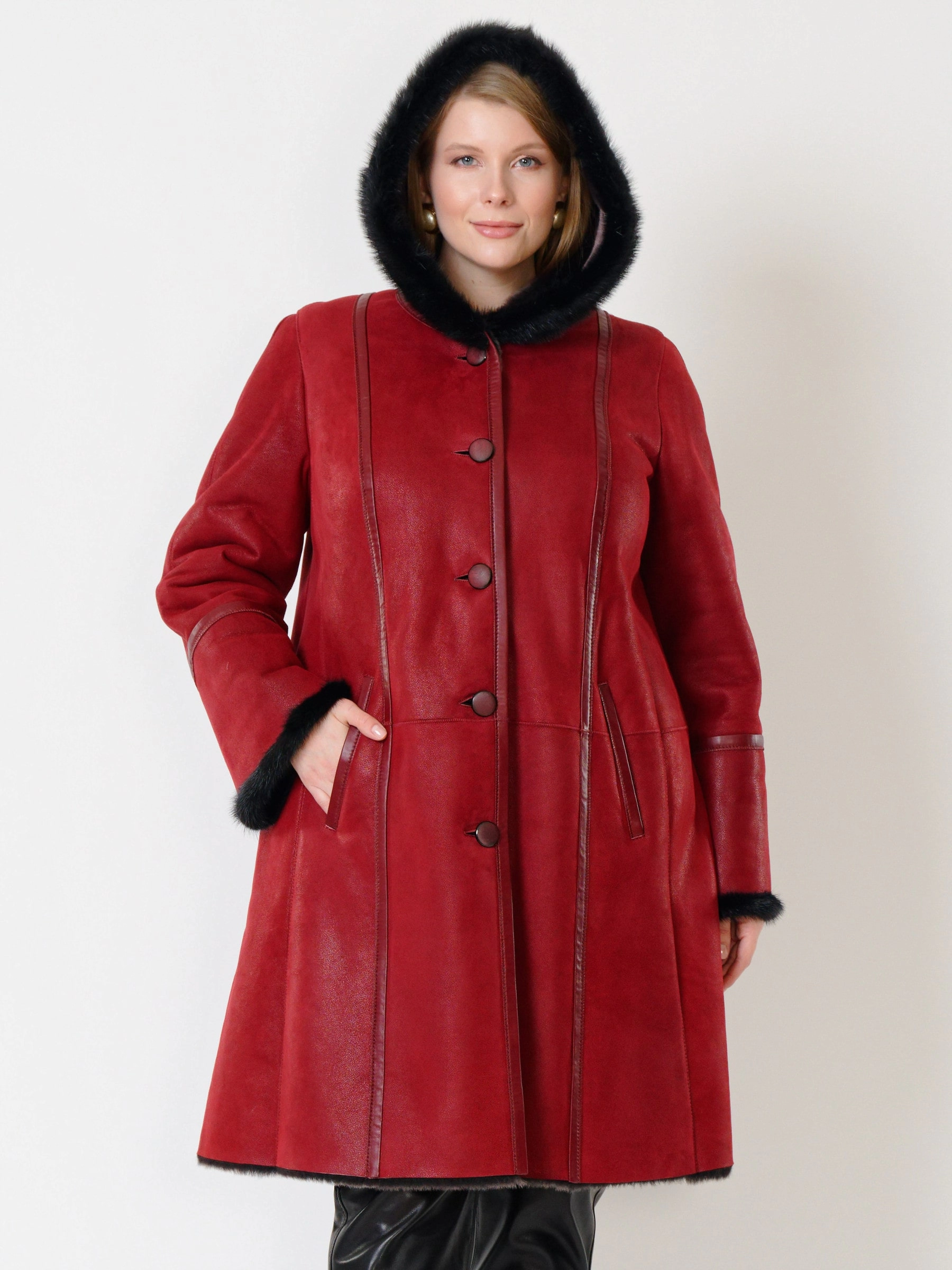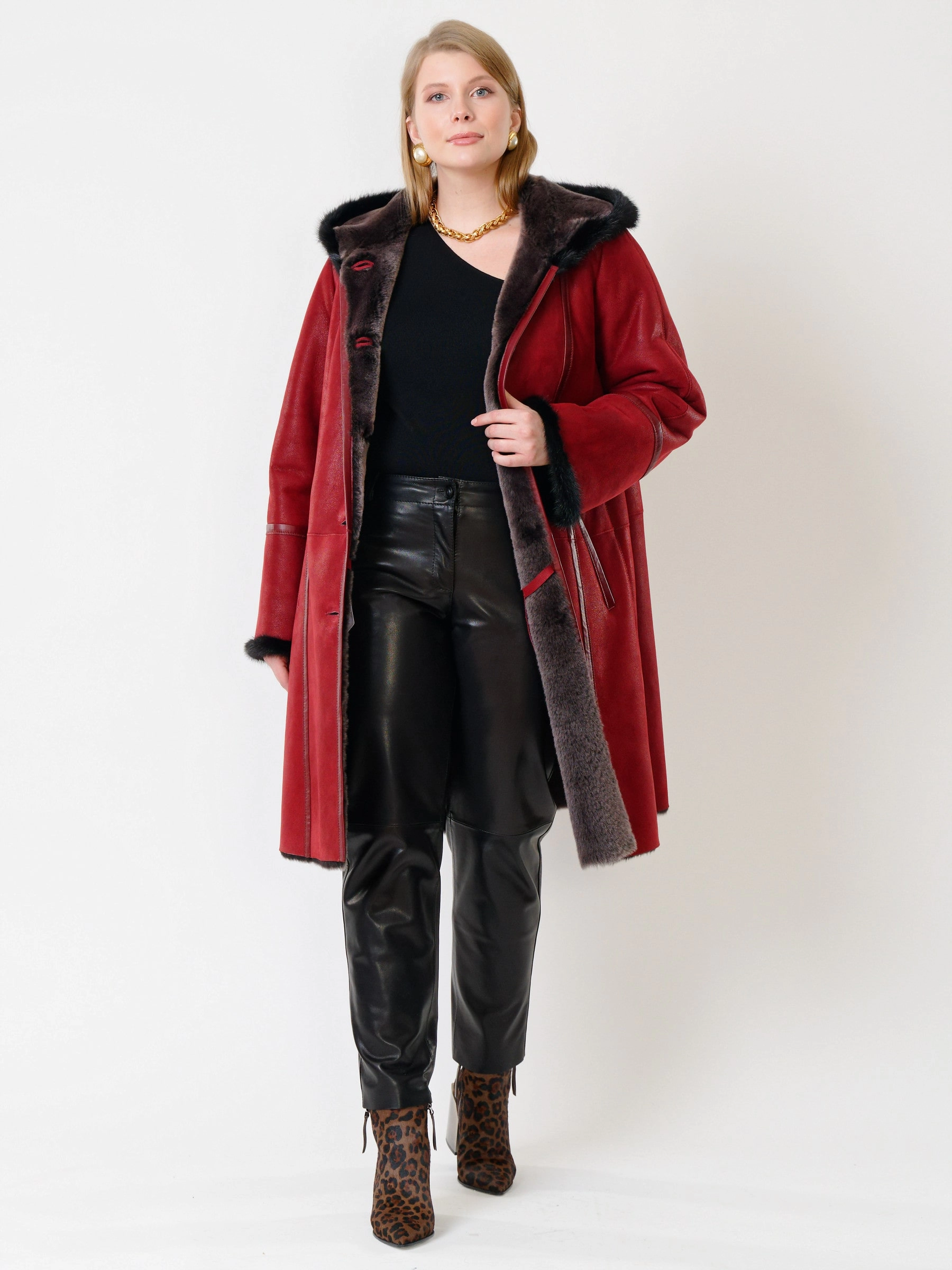 Демисезонный комплект женский: Дубленка 225У + Брюки 03, красный/черный, р. 50, арт. 111210