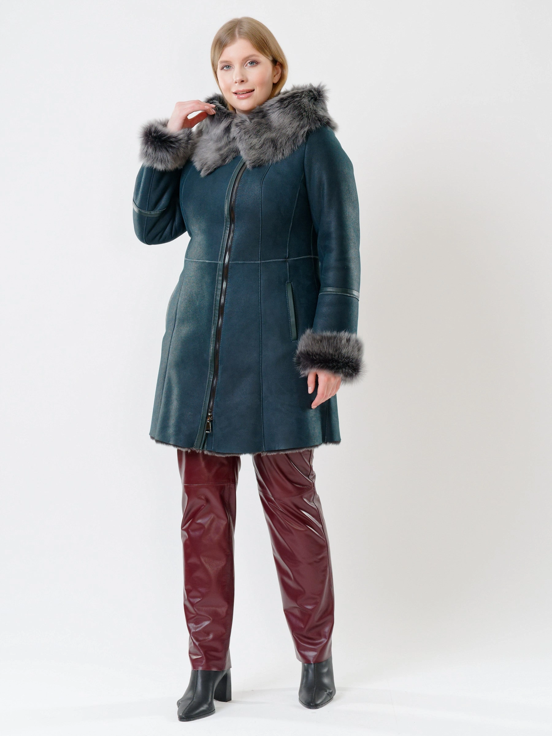 Демисезонный комплект женский: Дубленка 283 + Брюки 02, синий/бордовый, р. 44, арт. 111231