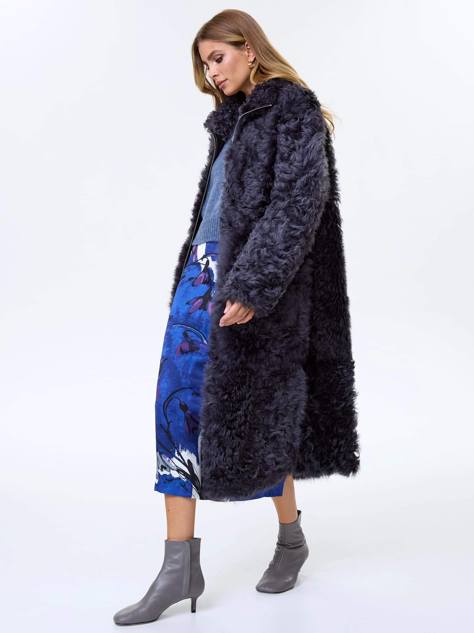Товар длинная женская дубленка из натуральной овчины тиградо премиум класса 2025, темно-серая, размер 44, артикул 64210 выполнен из овчина "тиградо" с застежкой молния. Рассчитан на сезон: осень-зима. Длина изделия 117 см, силуэт свободный.