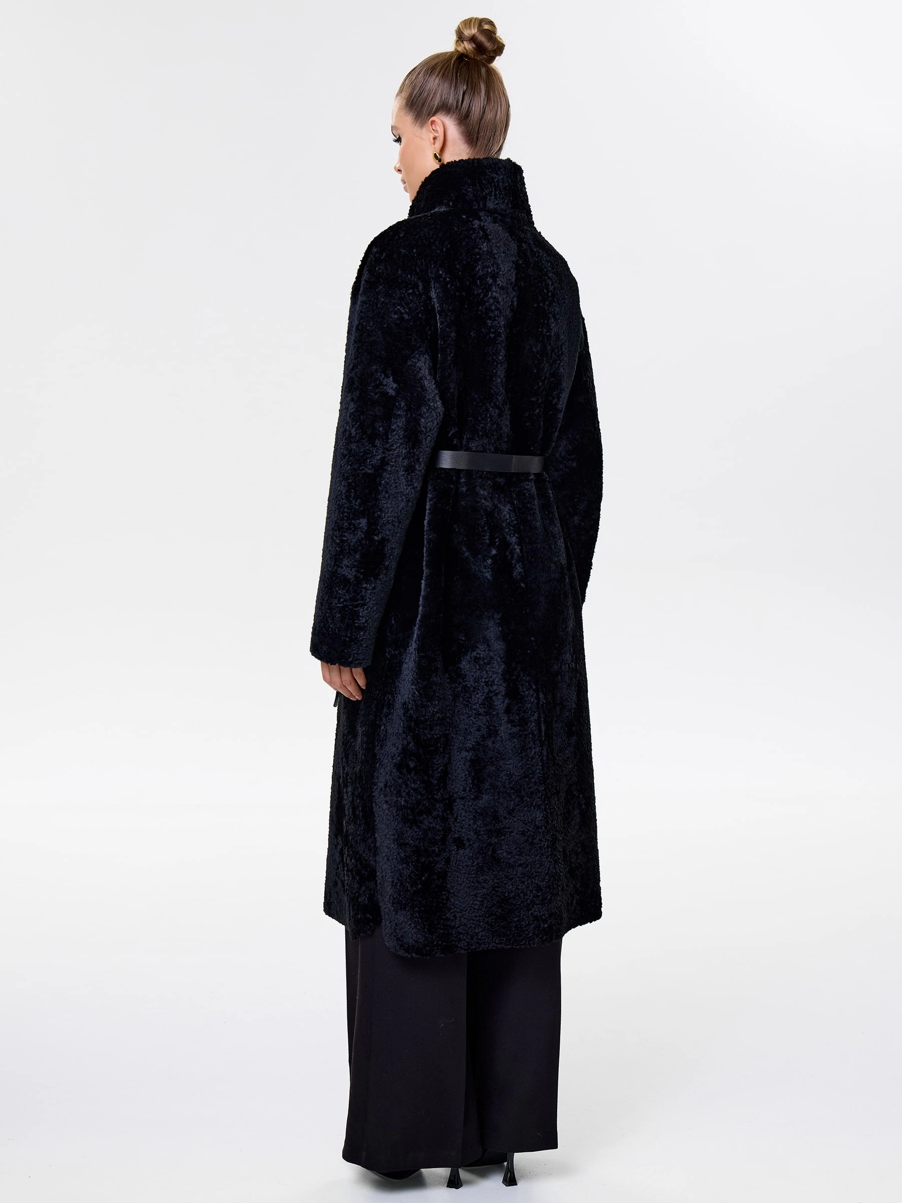 Длинное женское пальто из натуральной овчины астрагана премиум класса 2060, черное, размер 46, артикул 64320