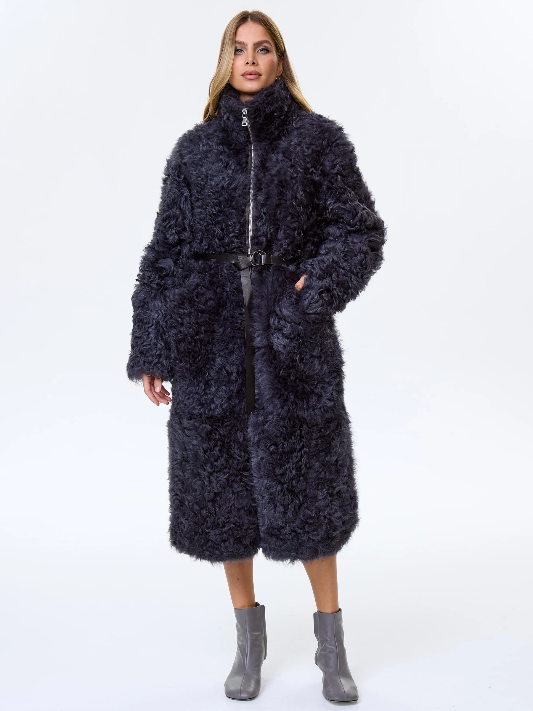 Товар длинное женское пальто из натуральной овчины тиградо премиум класса 2025, темно-серое, размер 44, артикул 64430 выполнен из овчина "тиградо" с застежкой молния. Рассчитан на сезон: осень-зима. Длина изделия 117 см, силуэт свободный.