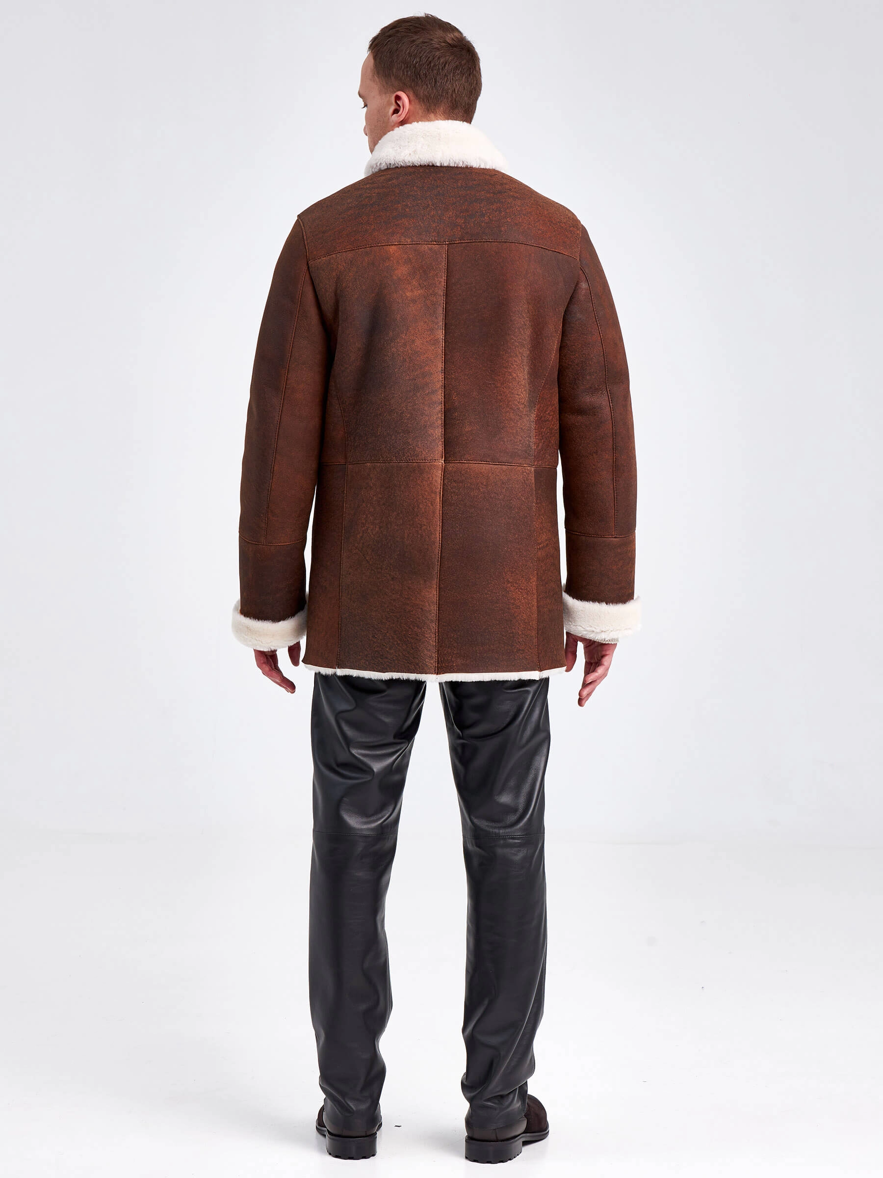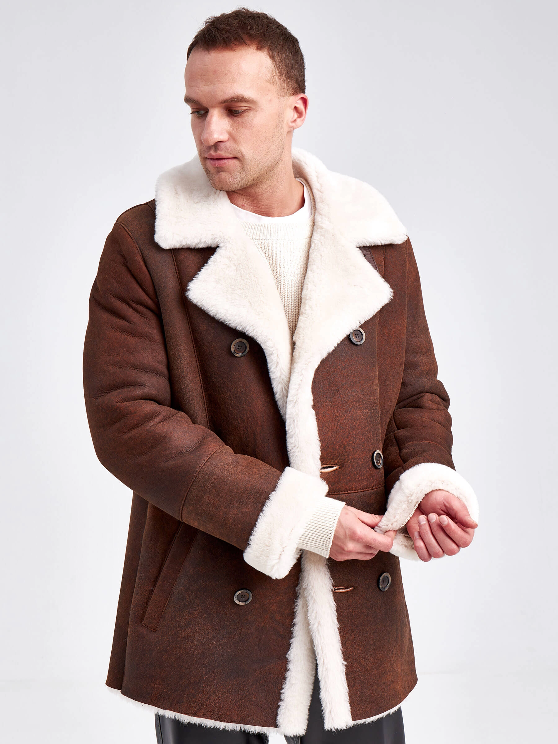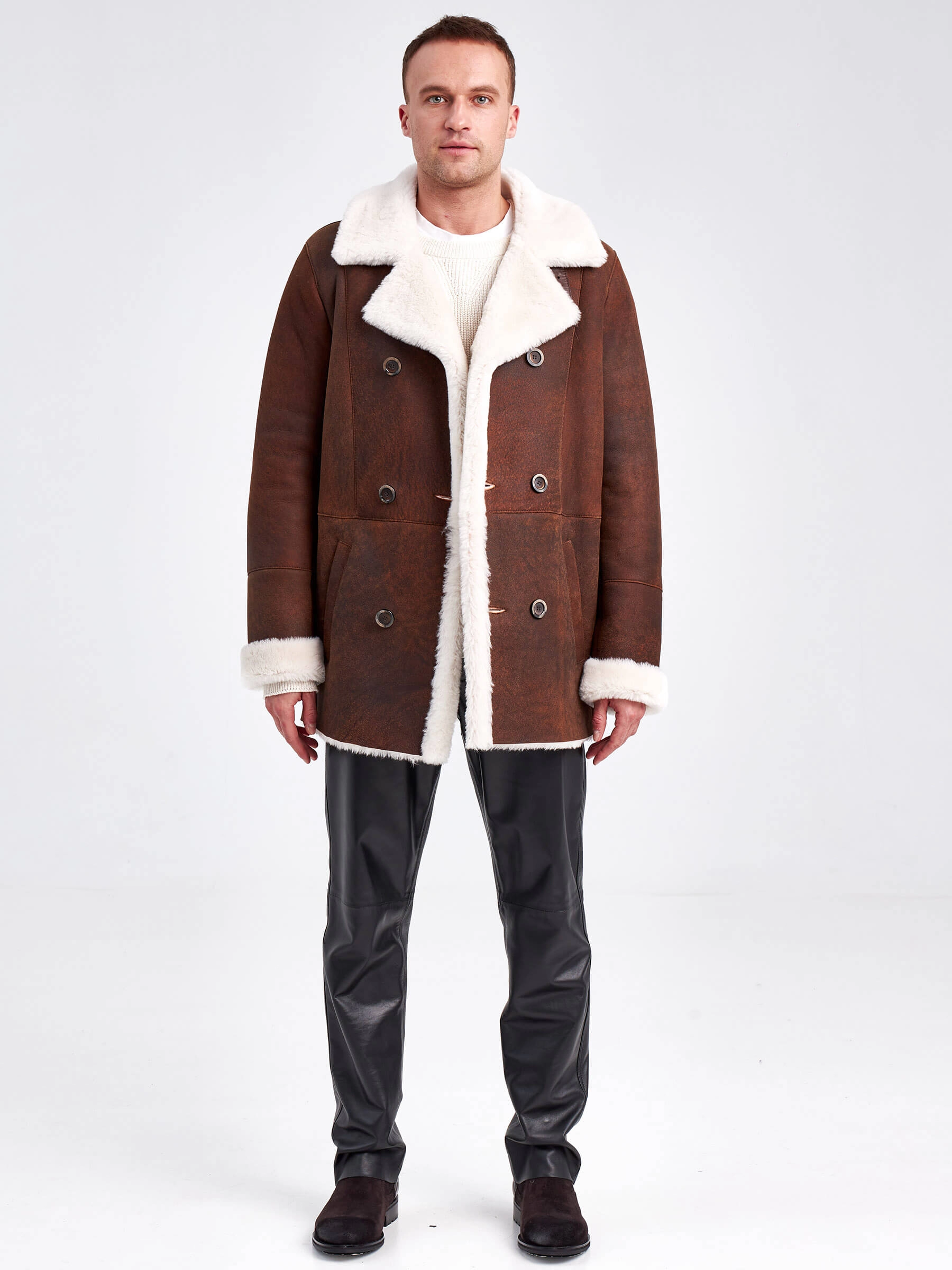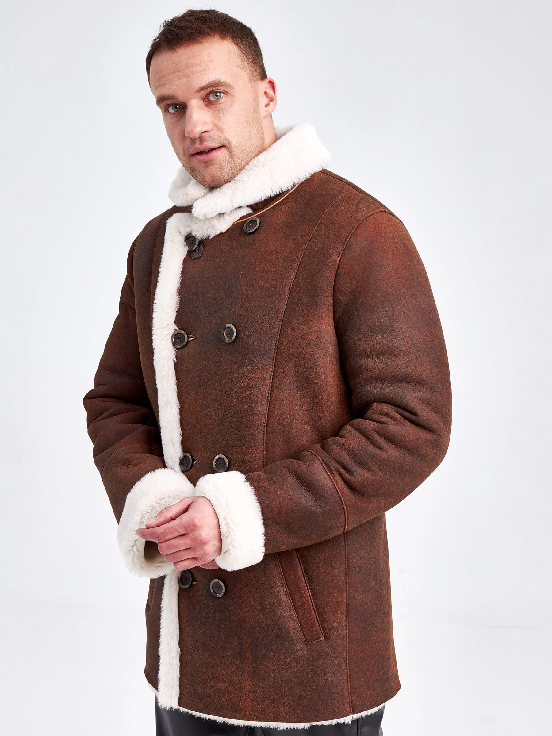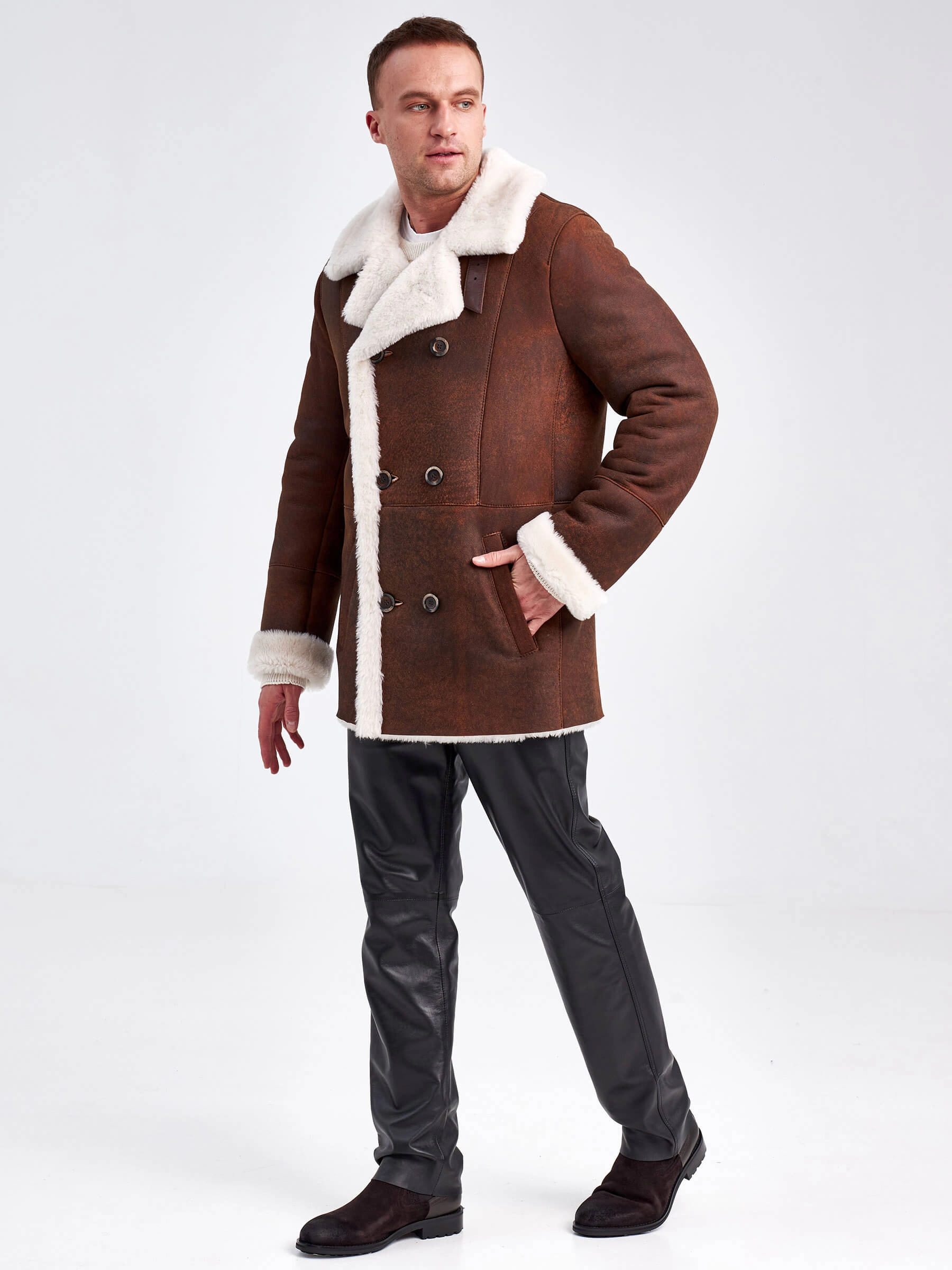 Дубленка двубортная мужская 431, виски, размер 48, артикул 71151