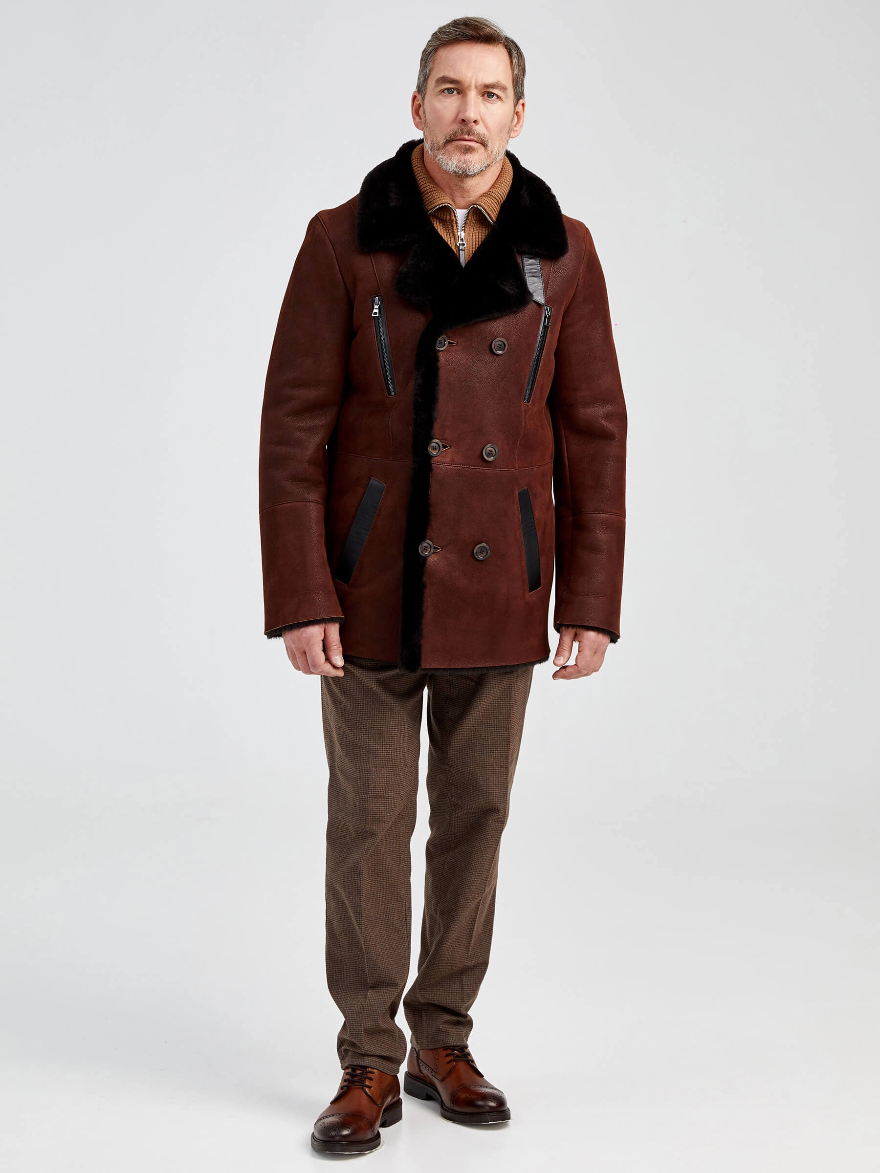 Дубленка двубортная мужская 431, коричневая, размер 48, артикул 70782