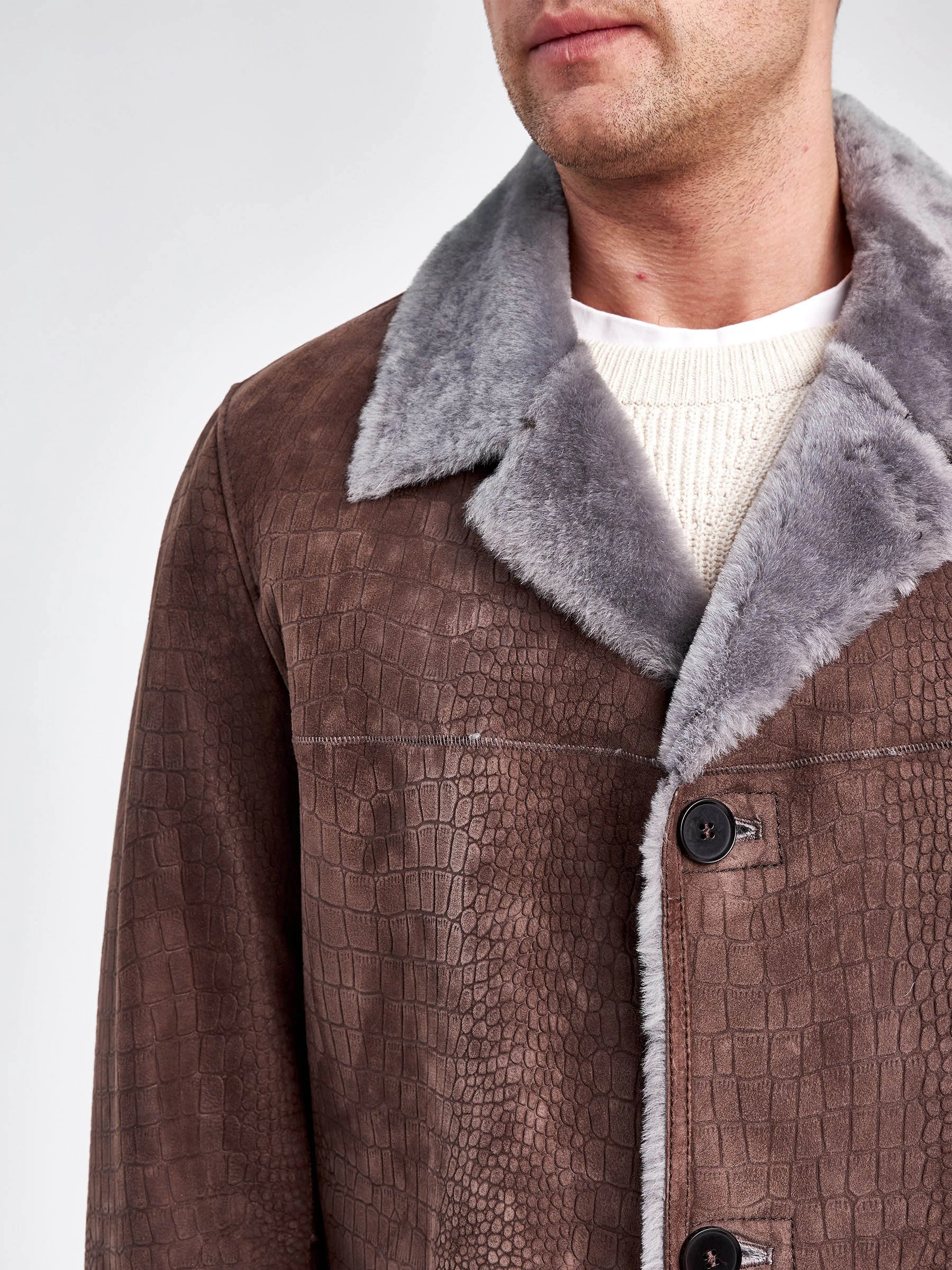Облегченная дубленка из натурального меха ягненка с принтом «сroсo»