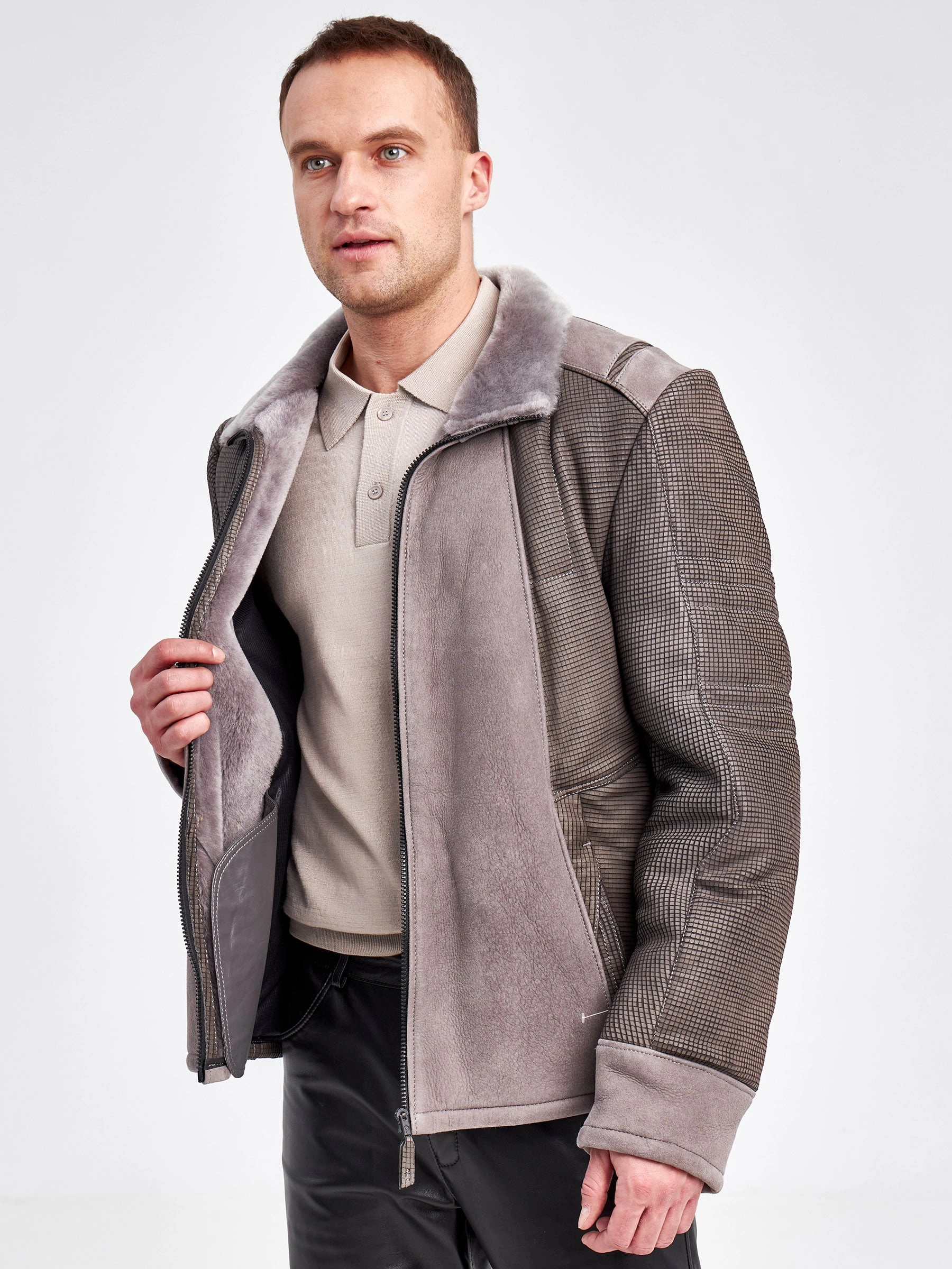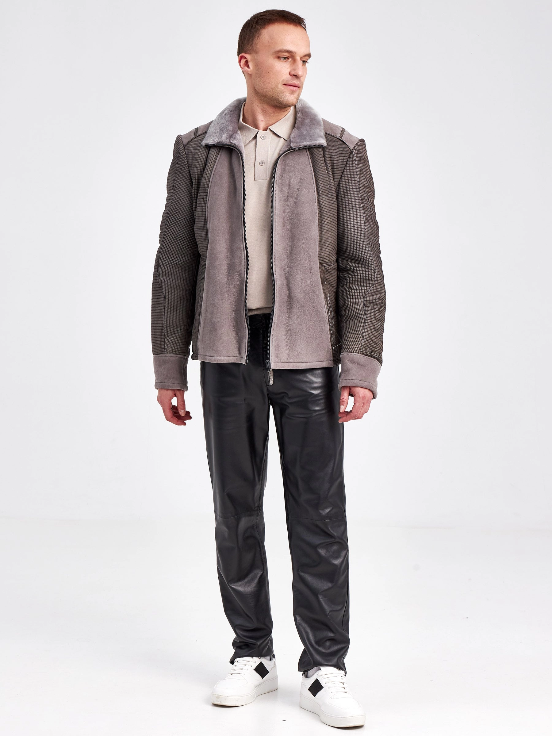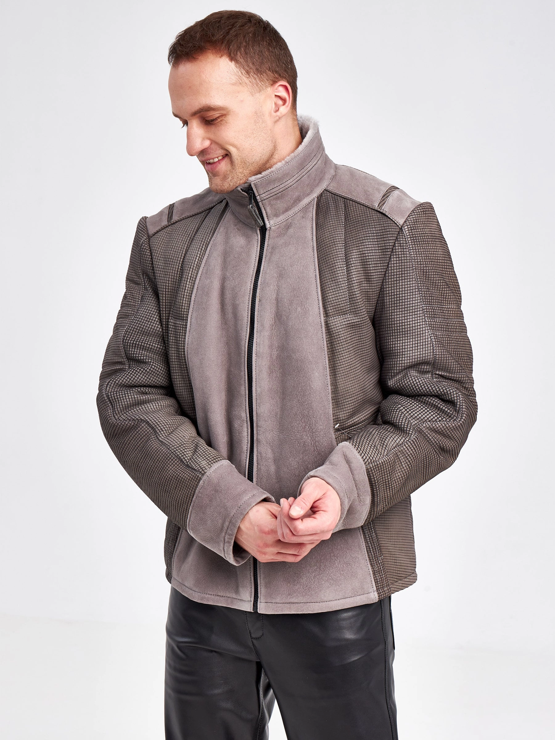 Товар комбинированная короткая мужская дубленка 40072, серая, короткая, размер 50, артикул 71240 выполнен из овчина "мерино" с застежкой молния. Рассчитан на сезон: зима. Длина изделия 65 см, силуэт прямой.