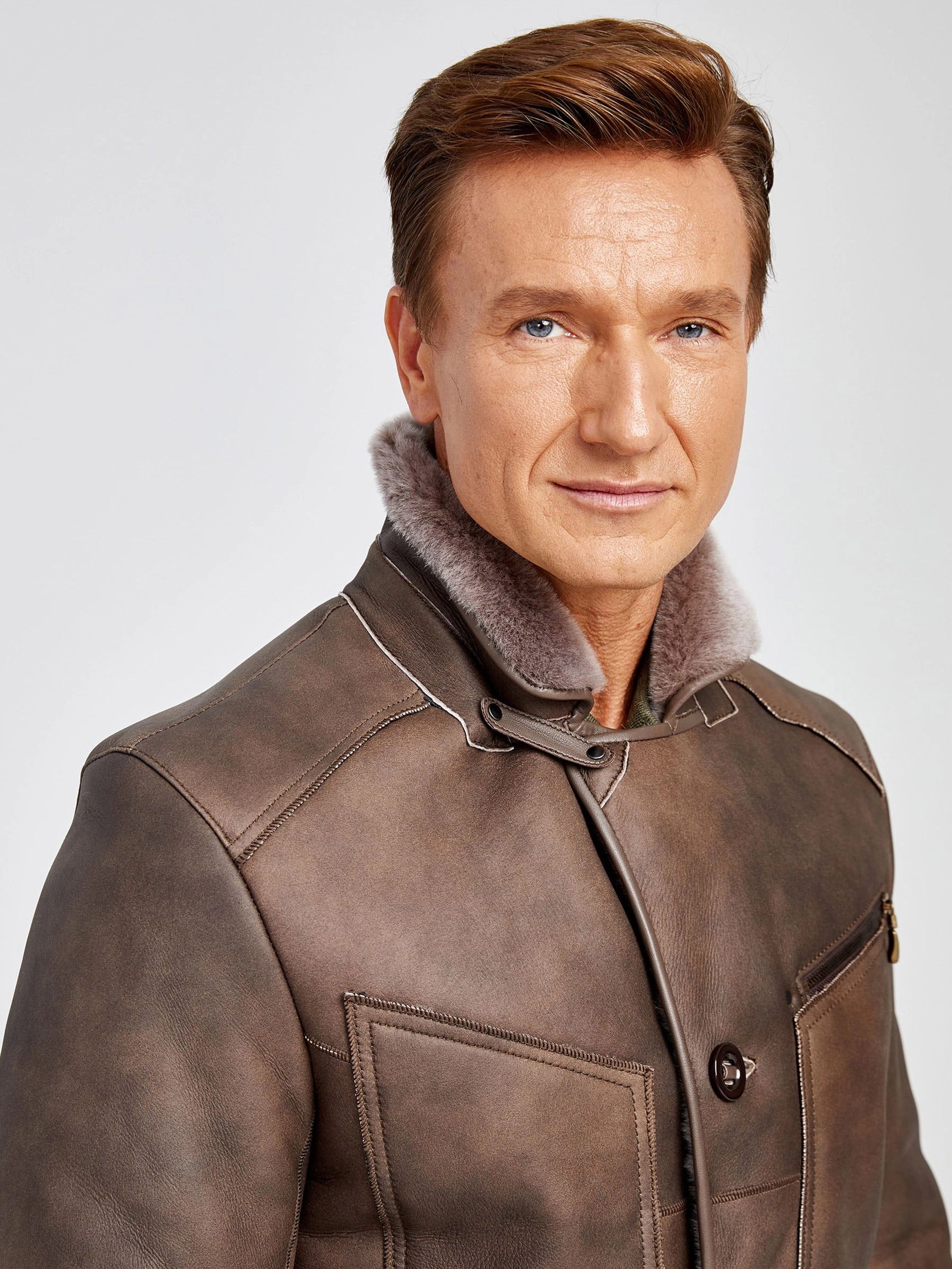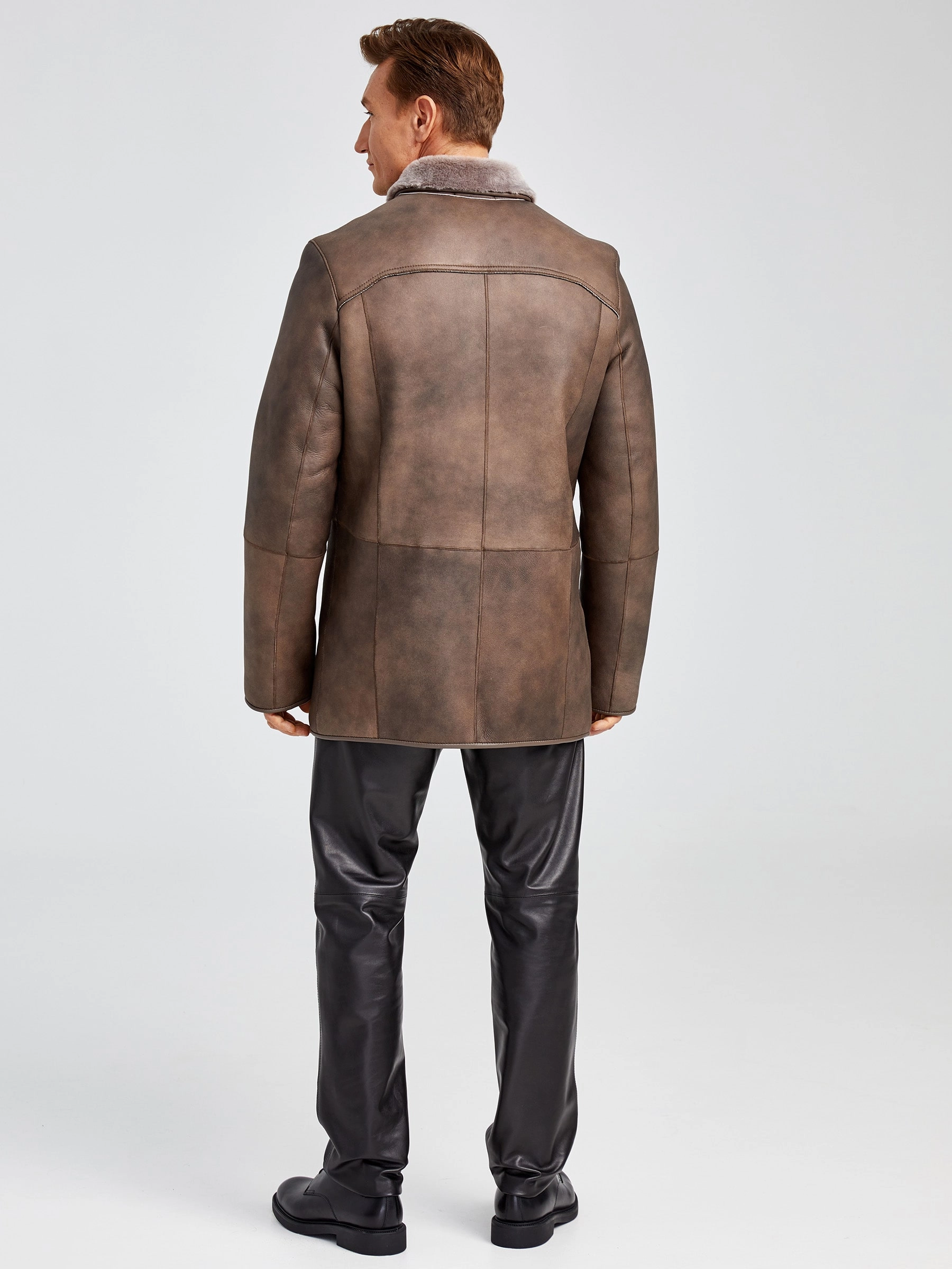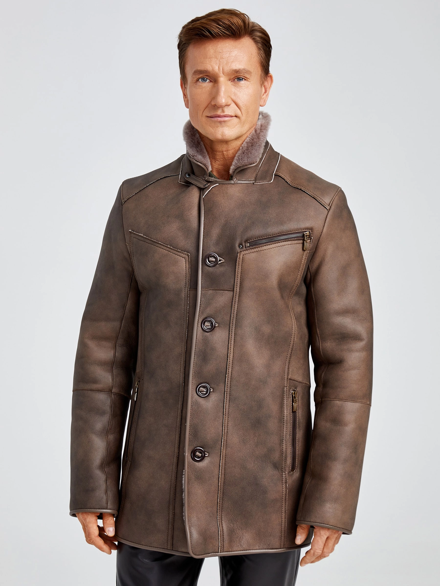 Классическая мужская дубленка 402, серо-коричневая, размер 50, артикул 70751