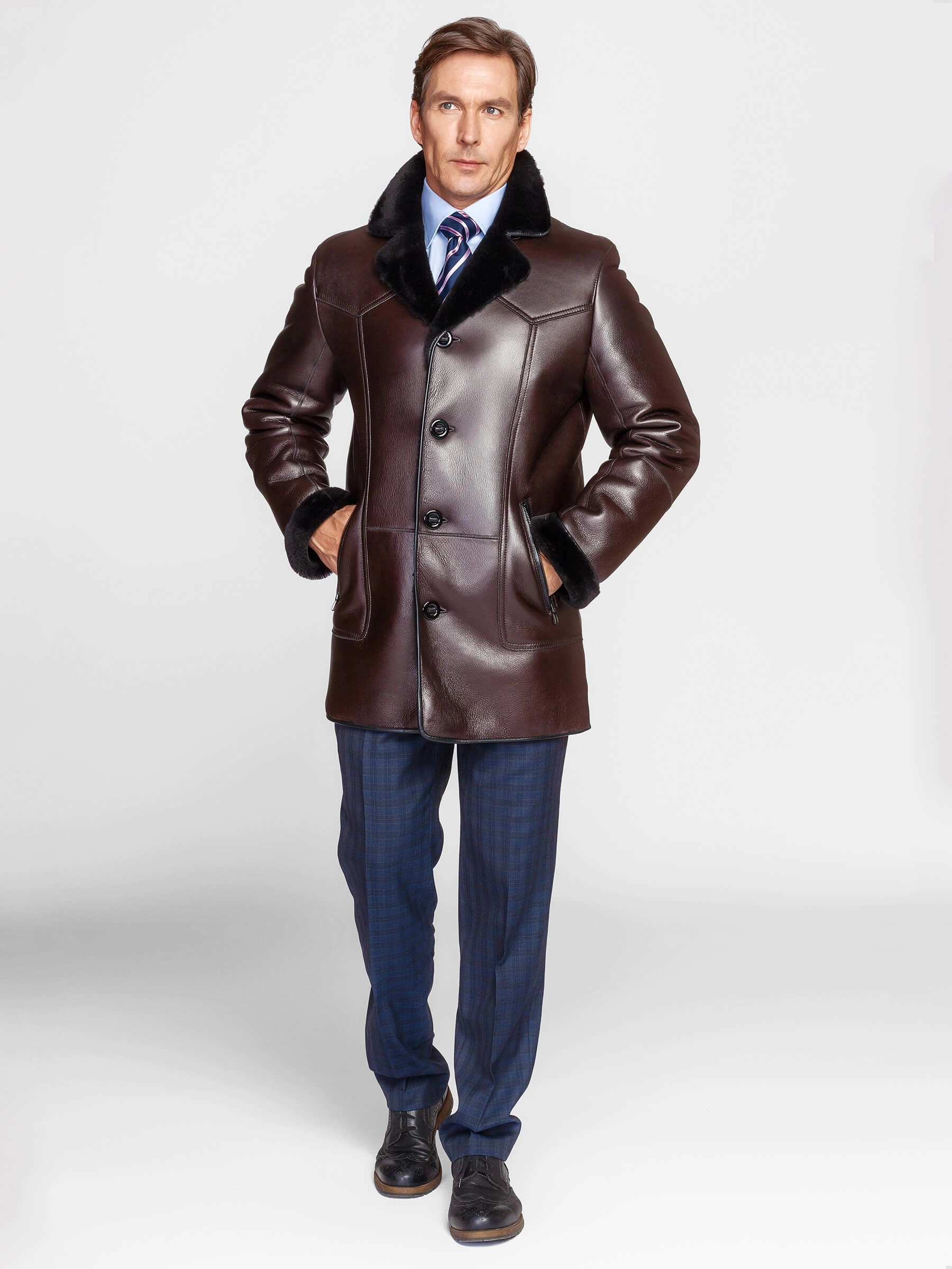 Дубленка мужская 403, коричневая, размер 52, артикул 9290