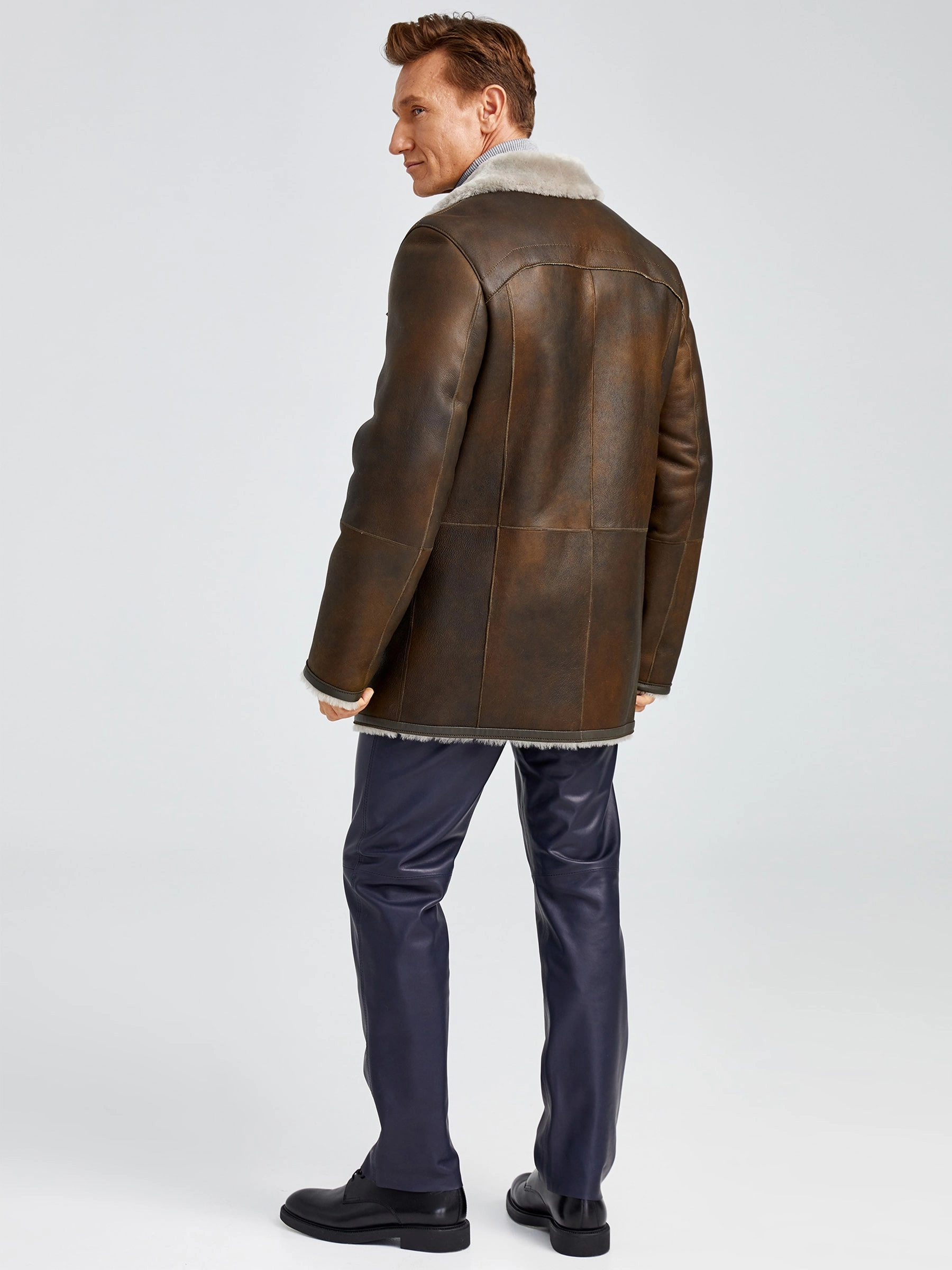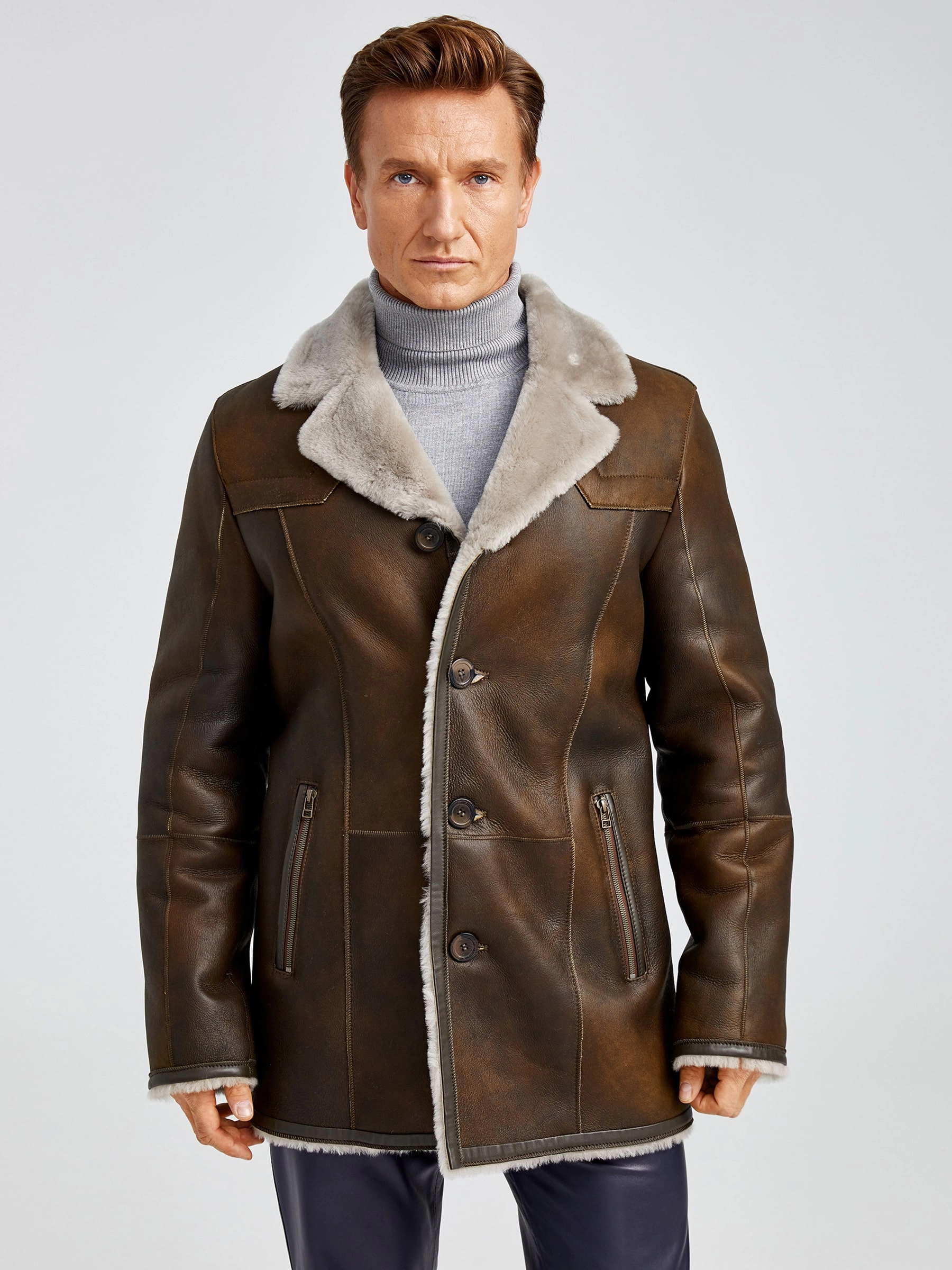 Современная мужская дублёнка, классической длины. Удобные карманы для ключей и документов. Верхняя застёжка закрывает горловину. Новейшее защитное покрытие. Особо прочные нитки. Приятный на ощупь, максимально густой мех мериносной породы овец. Идеальные швы, продуманные и удобные элементы. Аккуратность во всей работе. Чёткая и очень удобная посадка по фигуре. Великолепная свобода движений. Абсолютный комфорт.