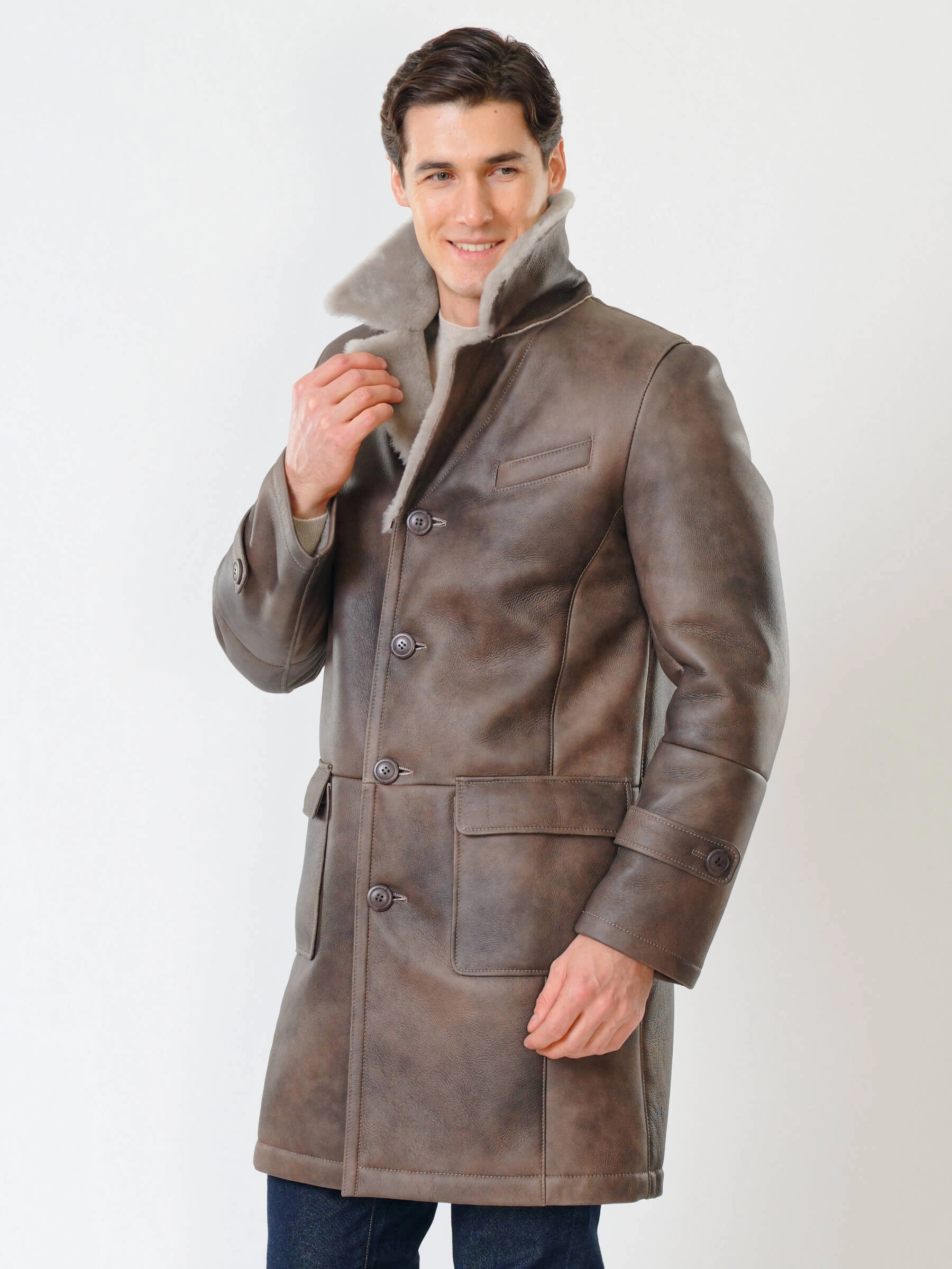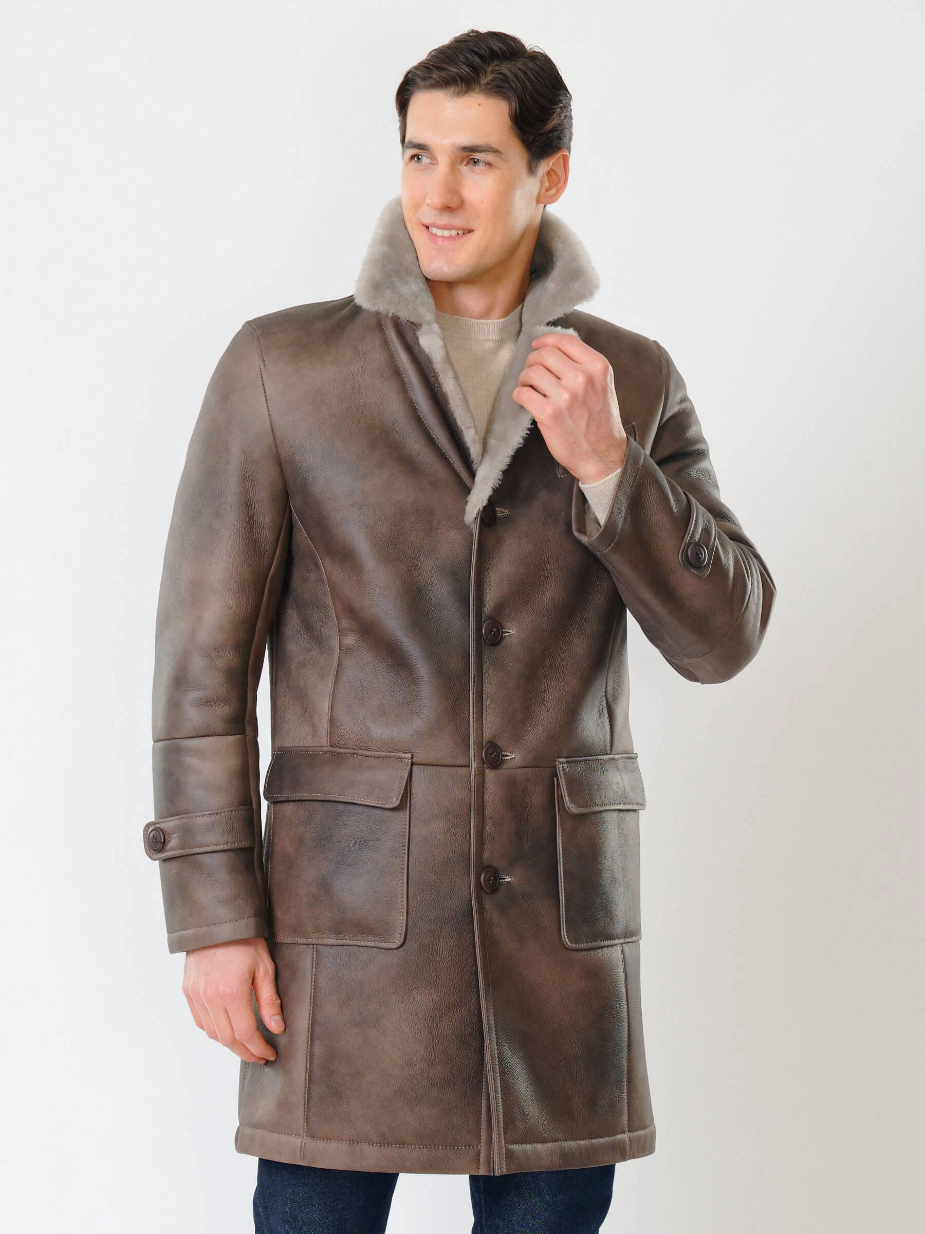 Длинная классическая мужская дубленка 419, серо-коричневая, размер 48, артикул 70470