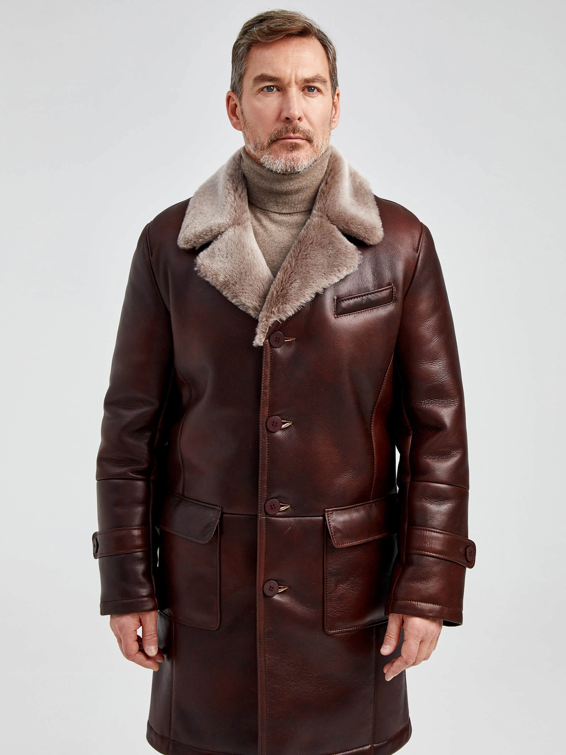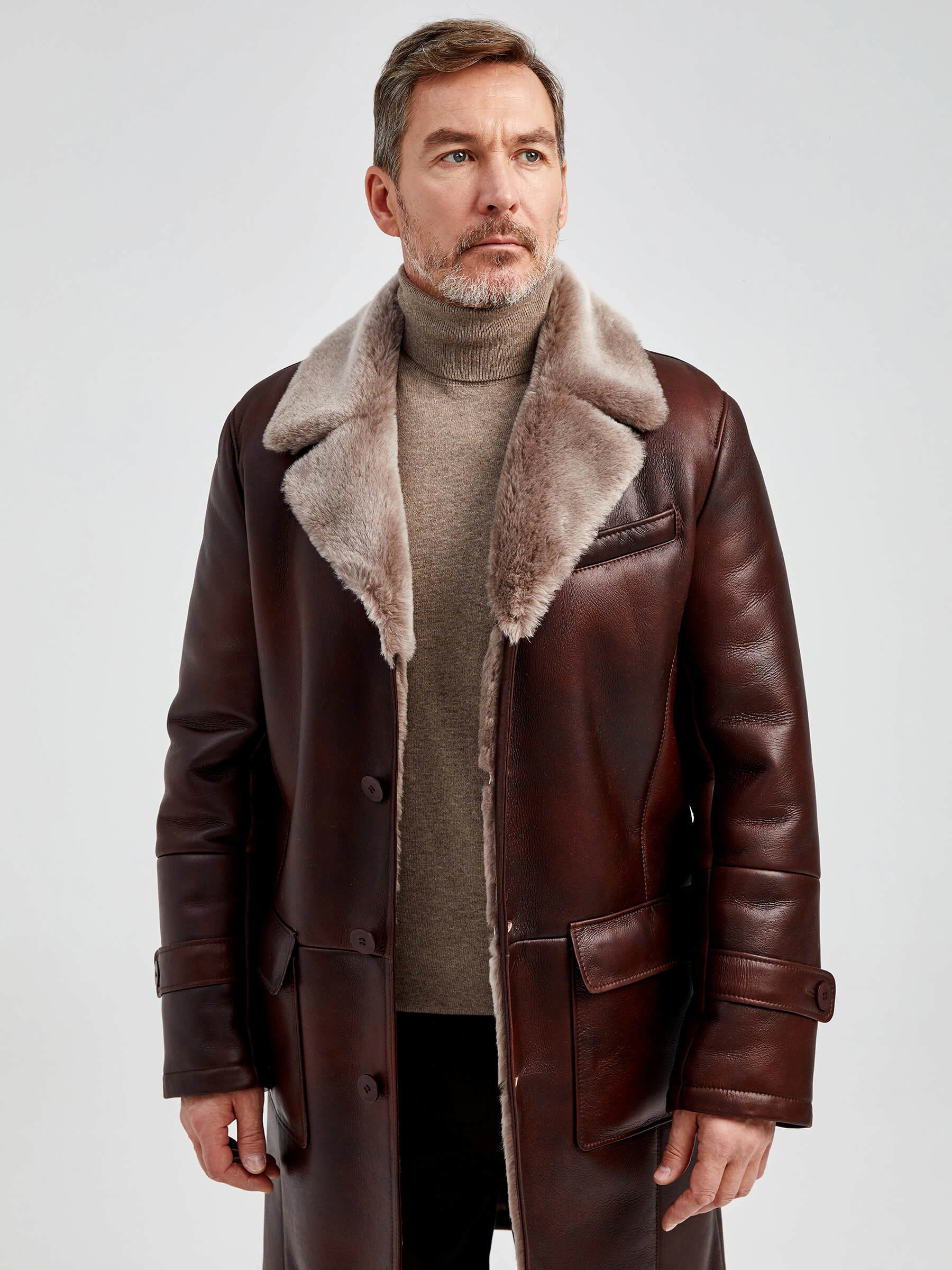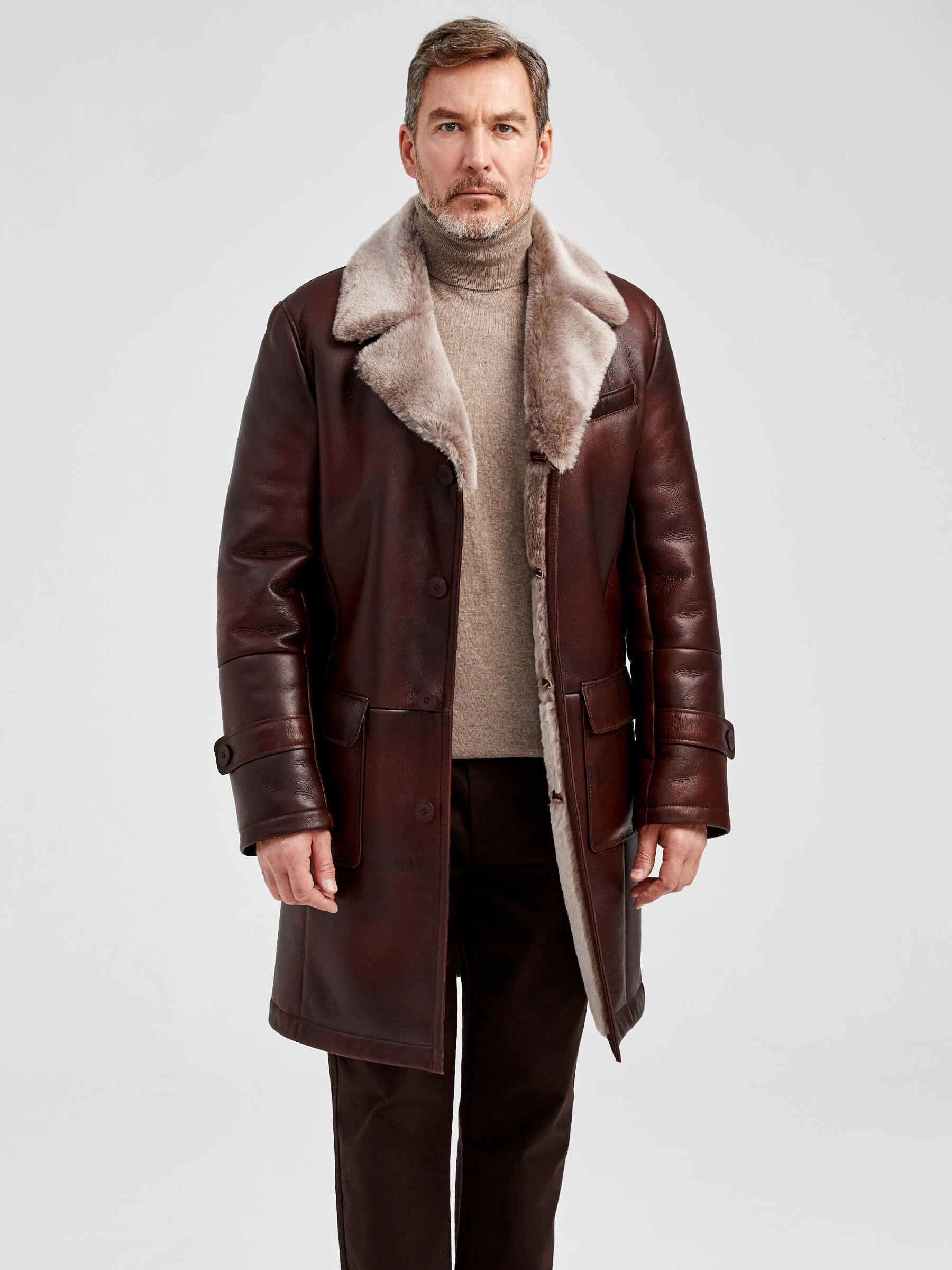 Мужское меховое пальто. Новейшее защитное покрытие. Особо прочные нитки. Приятный на ощупь, густой, красивый мех мериносной породы овец. Идеальные швы, продуманные и удобные элементы. Аккуратность во всей работе. Чёткая и очень удобная посадка по фигуре. Великолепная свобода движений. Абсолютный комфорт.