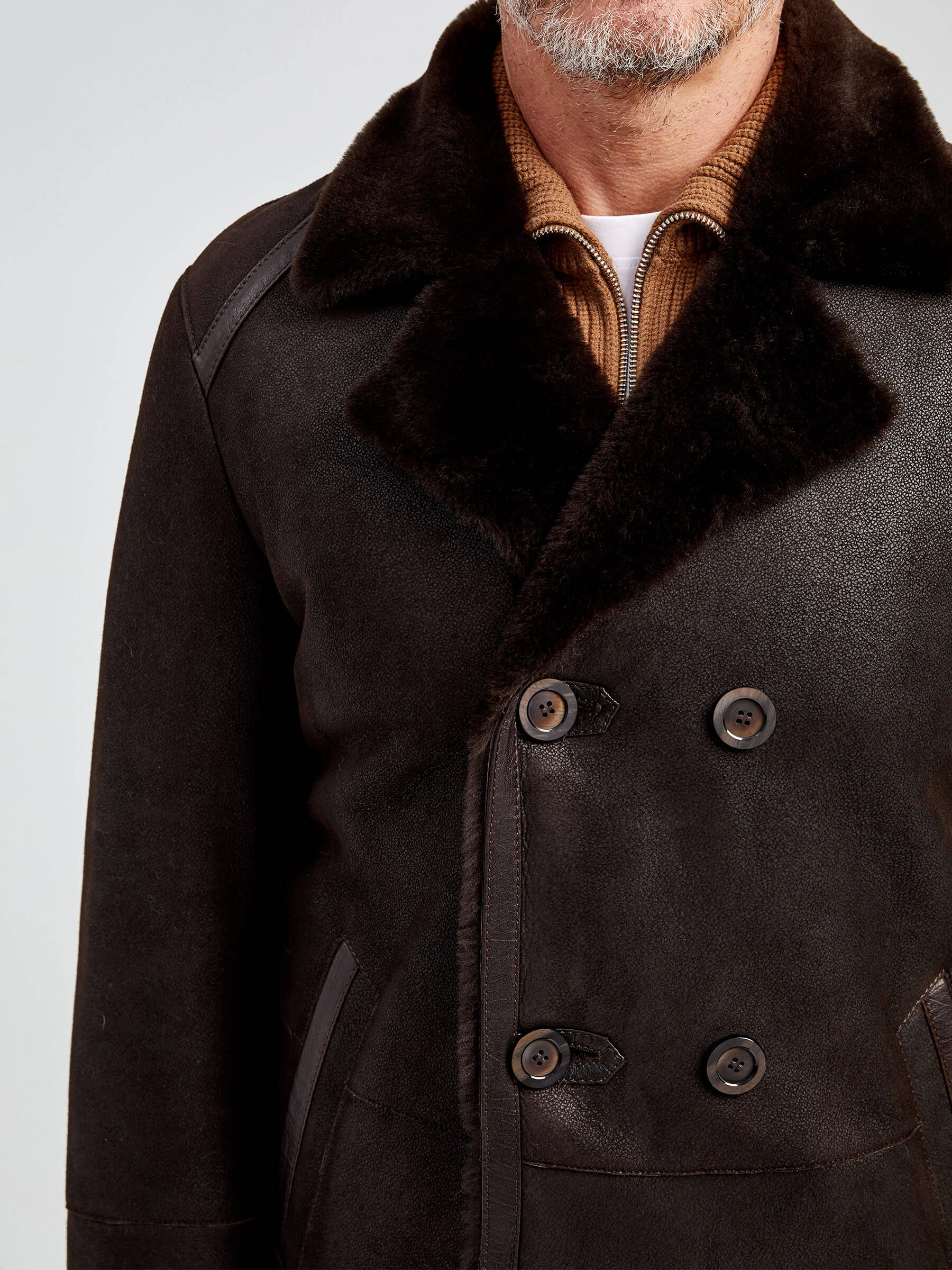 Дубленка двубортная классическая мужская 422, коричневая, размер 58, артикул 70872