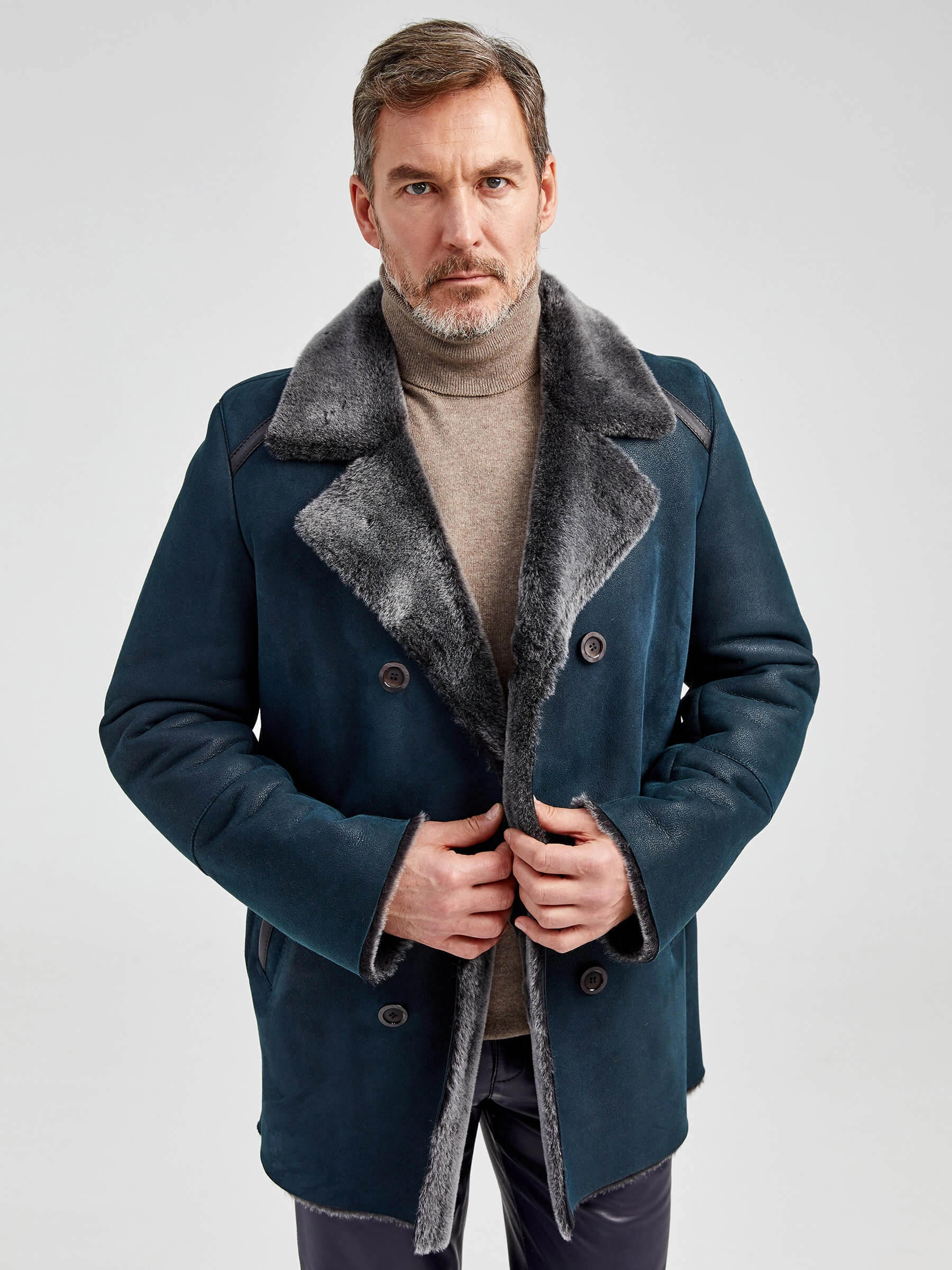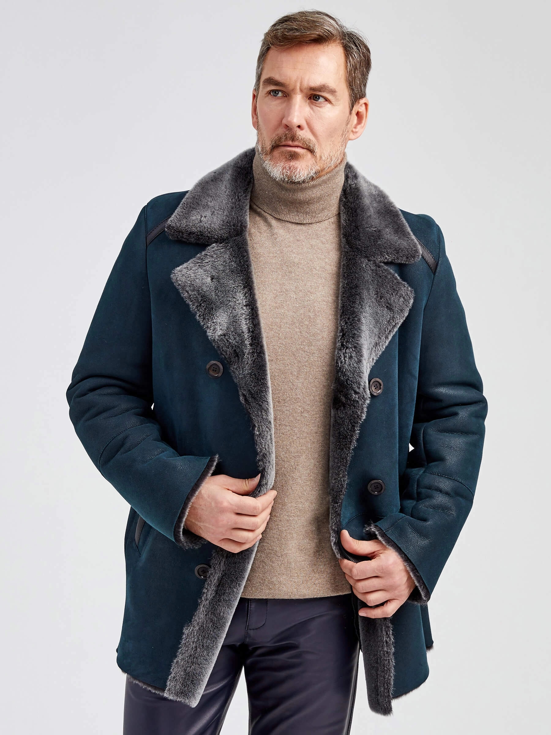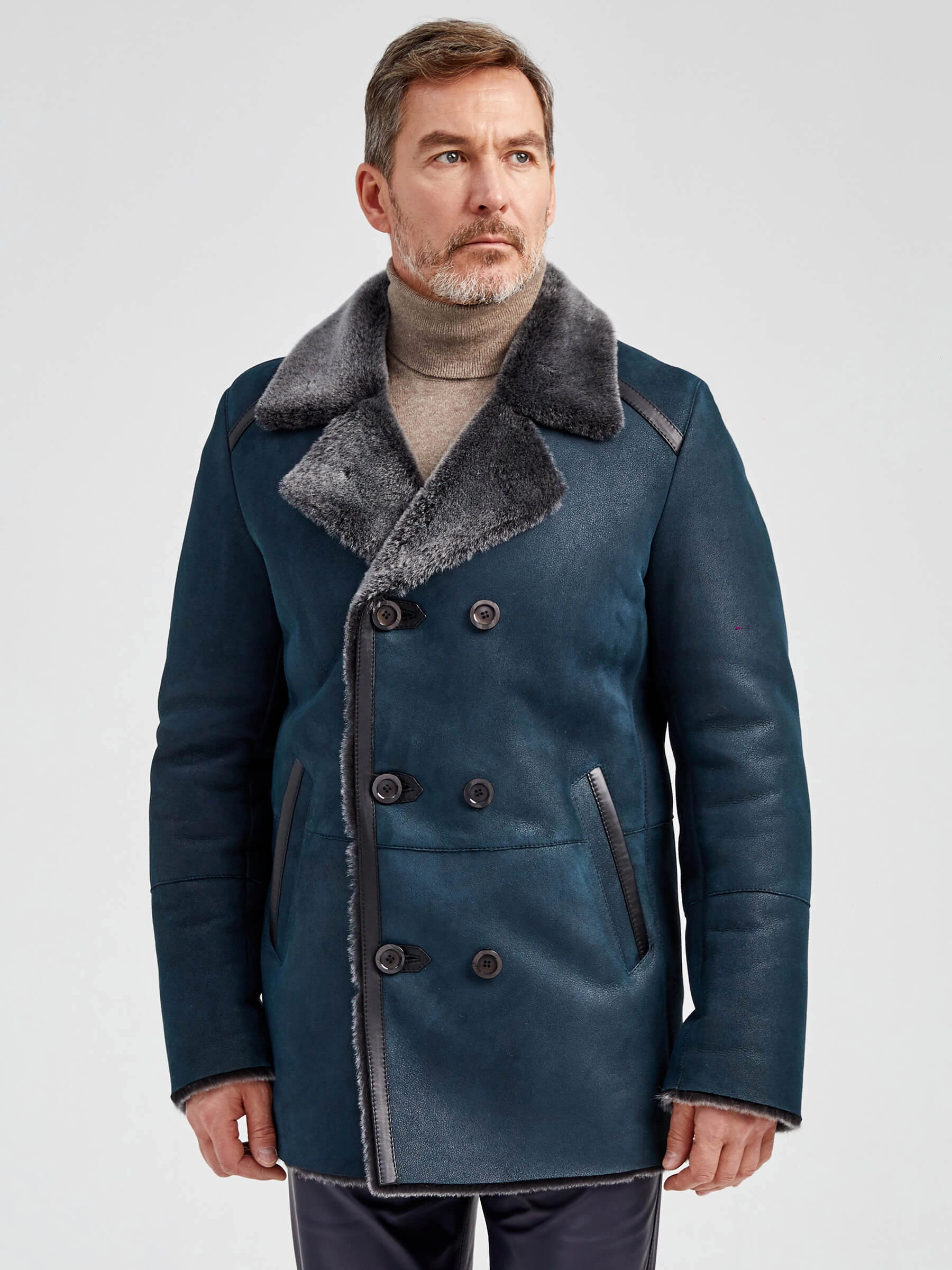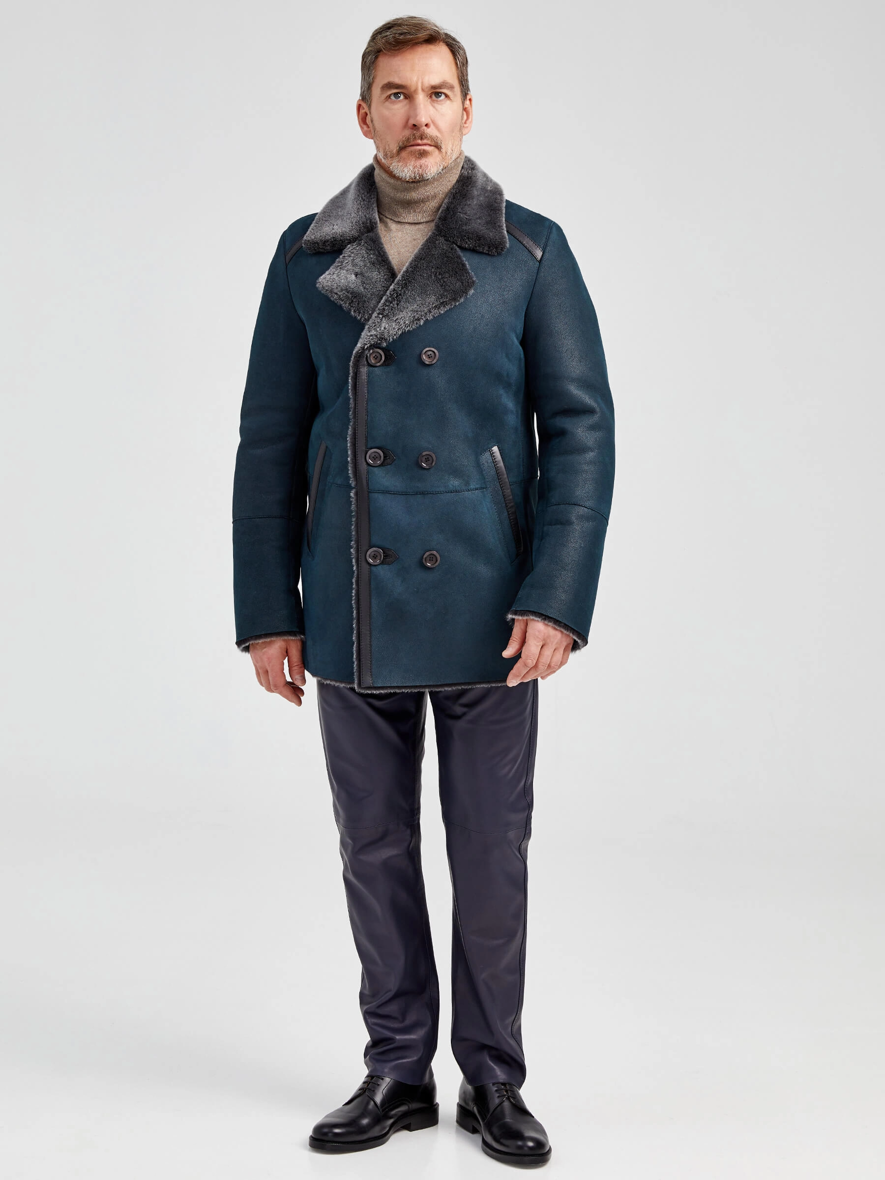 Стильная двубортная мужская дублёнка. Мериносная овчина высшего качества. Максимально густой мех прекрасно защитит от любого мороза. Новейшее устойчивое защитное покрытие. Английский воротник. Длина рукавов регулируется отворотом манжет. Чёткая, выверенная посадка по фигуре. Безупречная работа наших портных.
