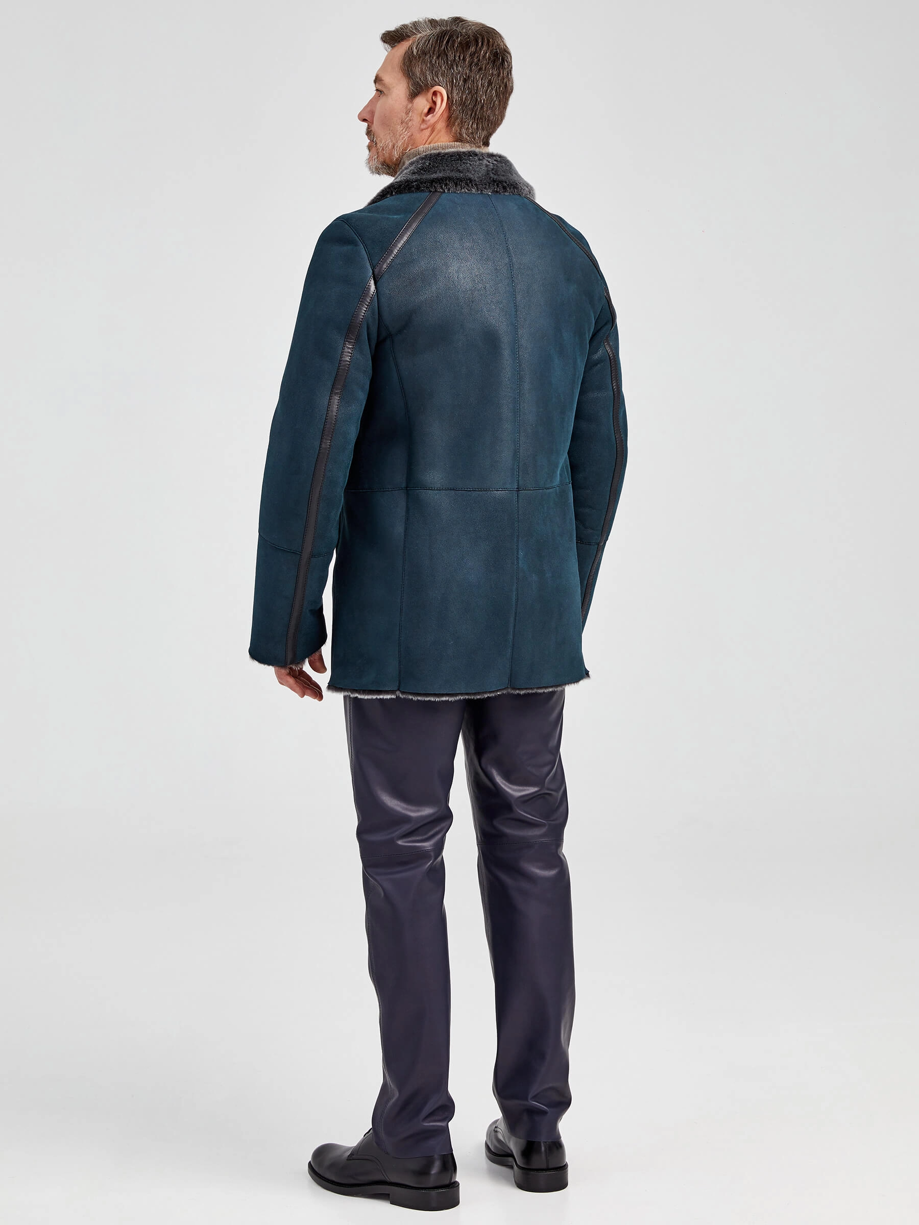 Дубленка двубортная классическая мужская 422, синяя, размер 60, артикул 70882