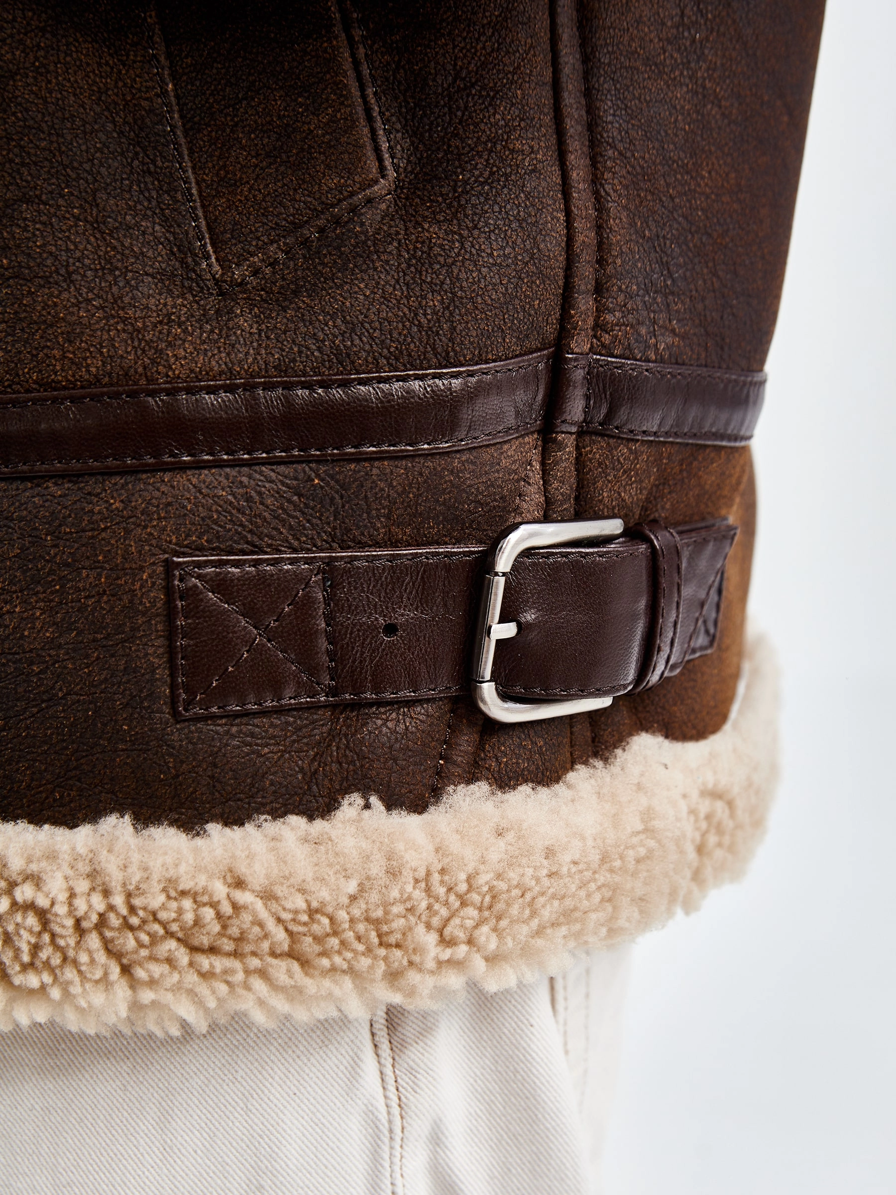 Дублёнка-авиатор. Специальная технология стирки овчины придает поверхности дублёнки повышенную износостойкость. Максимально густой мех. Минимальный вес. Предусмотрены внутренние карманы для документов. Безупречная работа наших портных. Комфортная посадка по фигуре. Великолепная свобода движений.