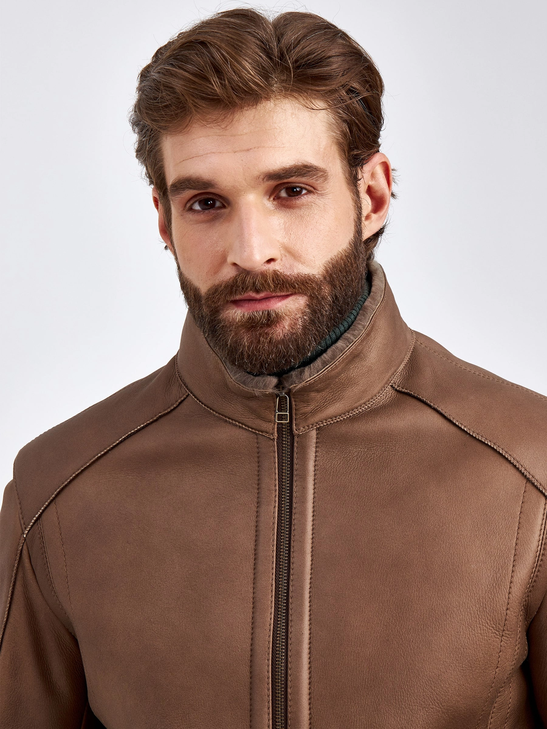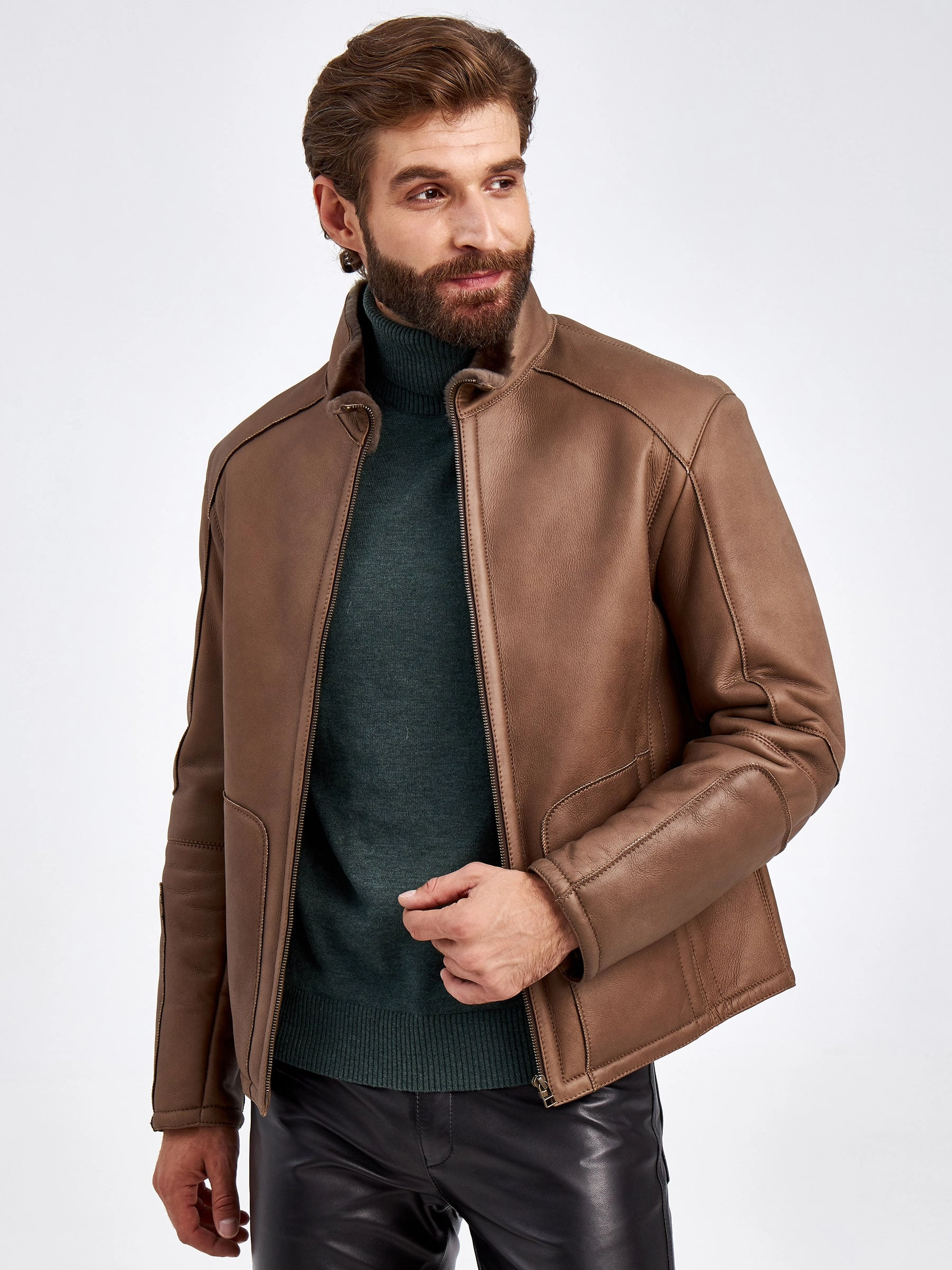 Короткая дубленка для мужчин Джой, бежевая, размер 48, артикул 29390