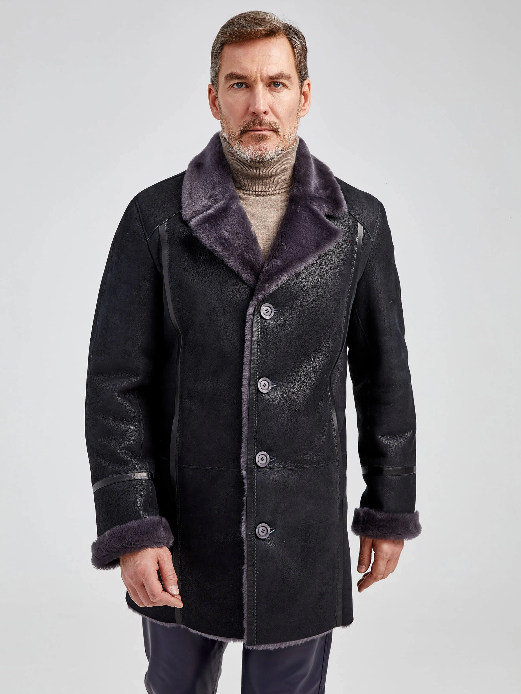 Товар зимний комплект мужской: дубленка леон + брюки 01, черный/синий, р. 48, артикул 140350 выполнен из овчина "мерино". Рассчитан на сезон: осень-зима.