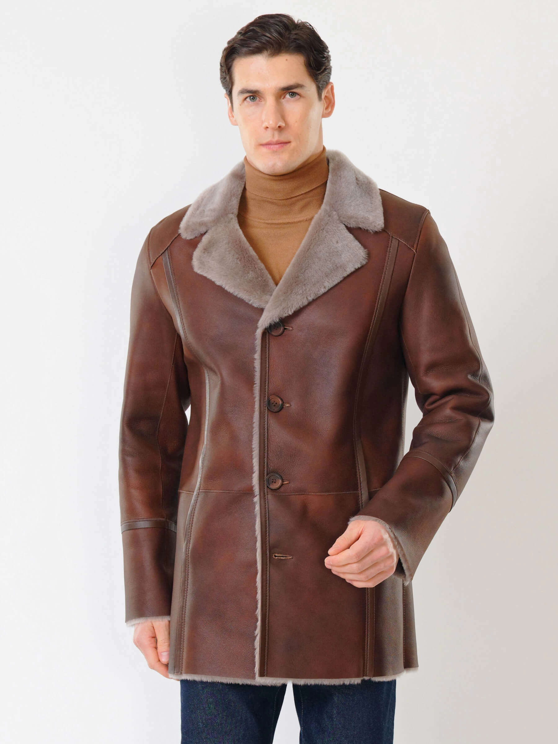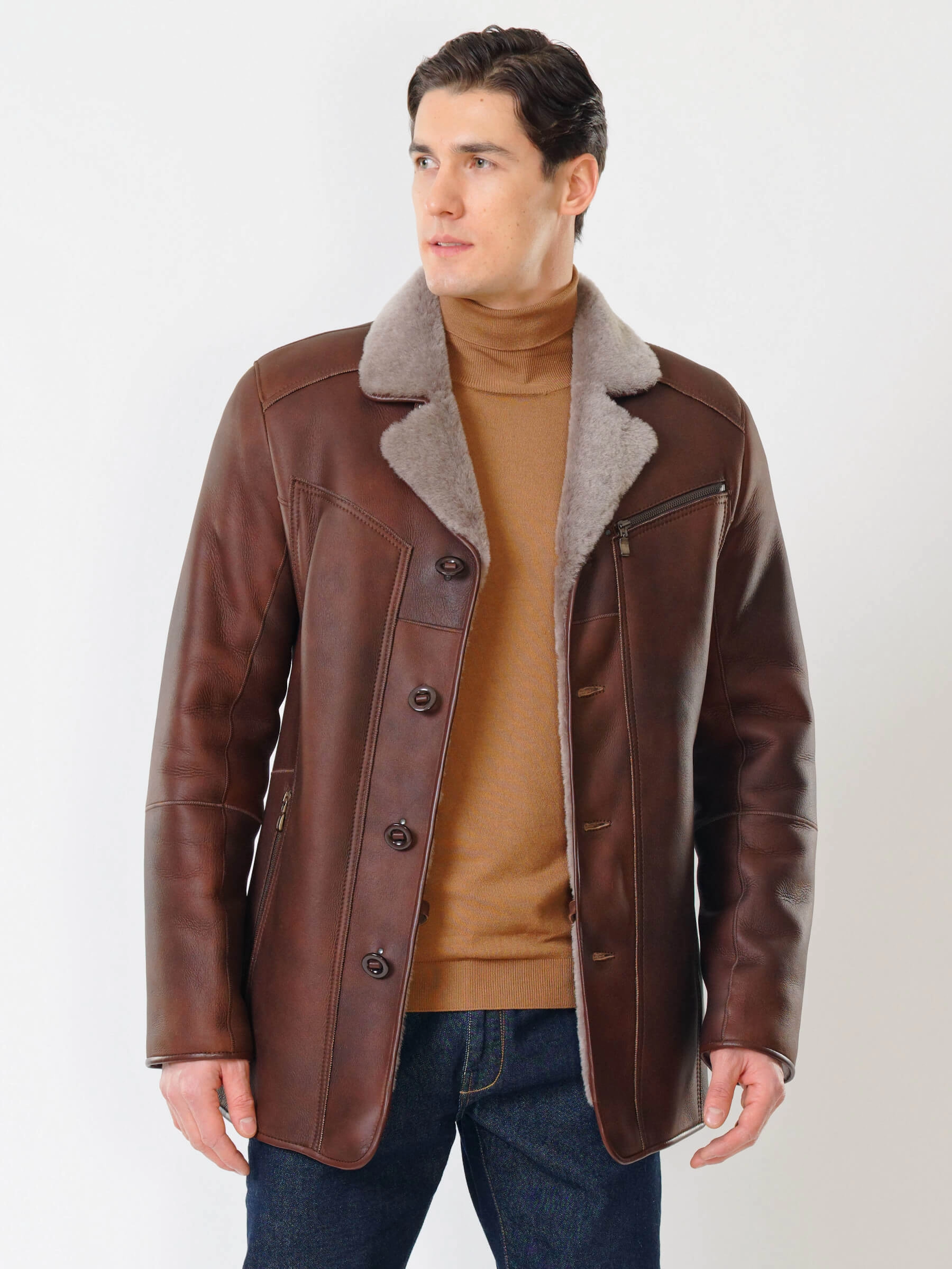 Дубленка классическая мужская Леон, виски, размер 48, артикул 70600