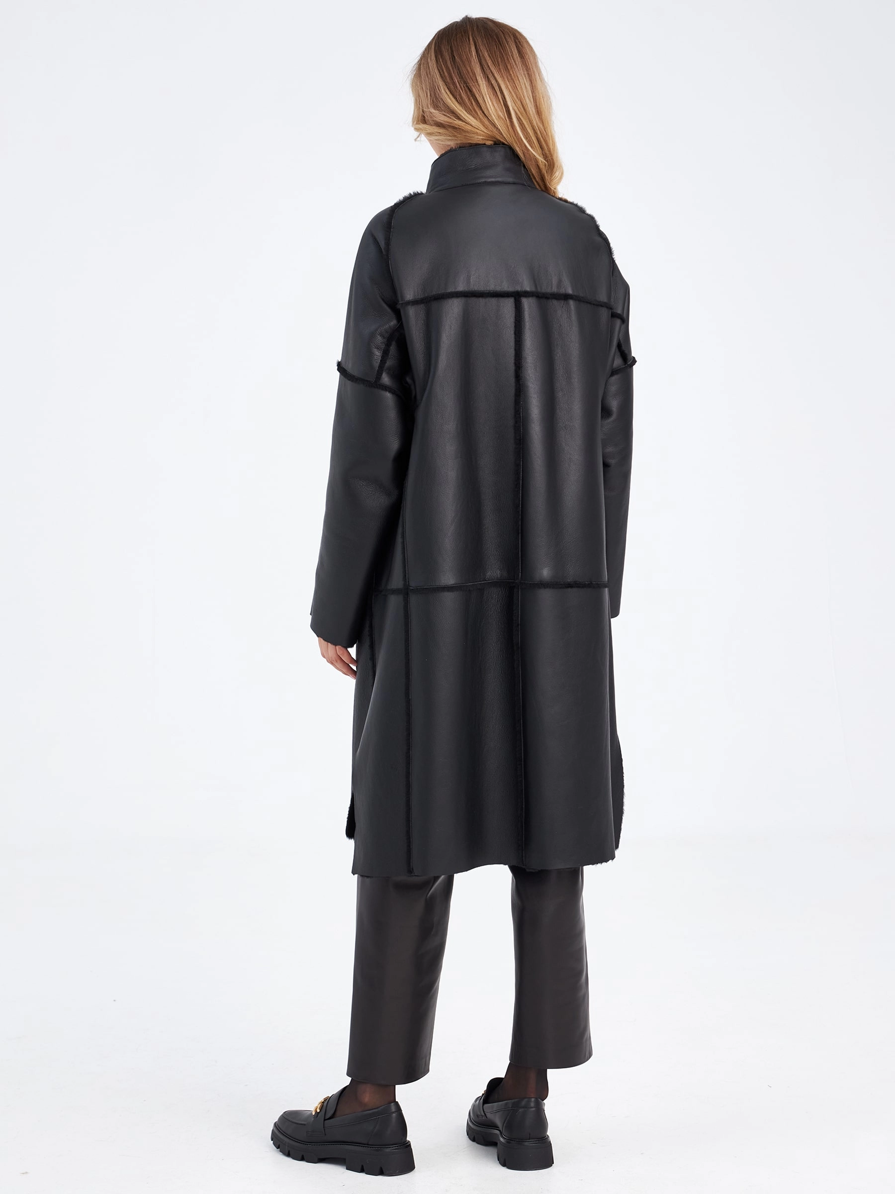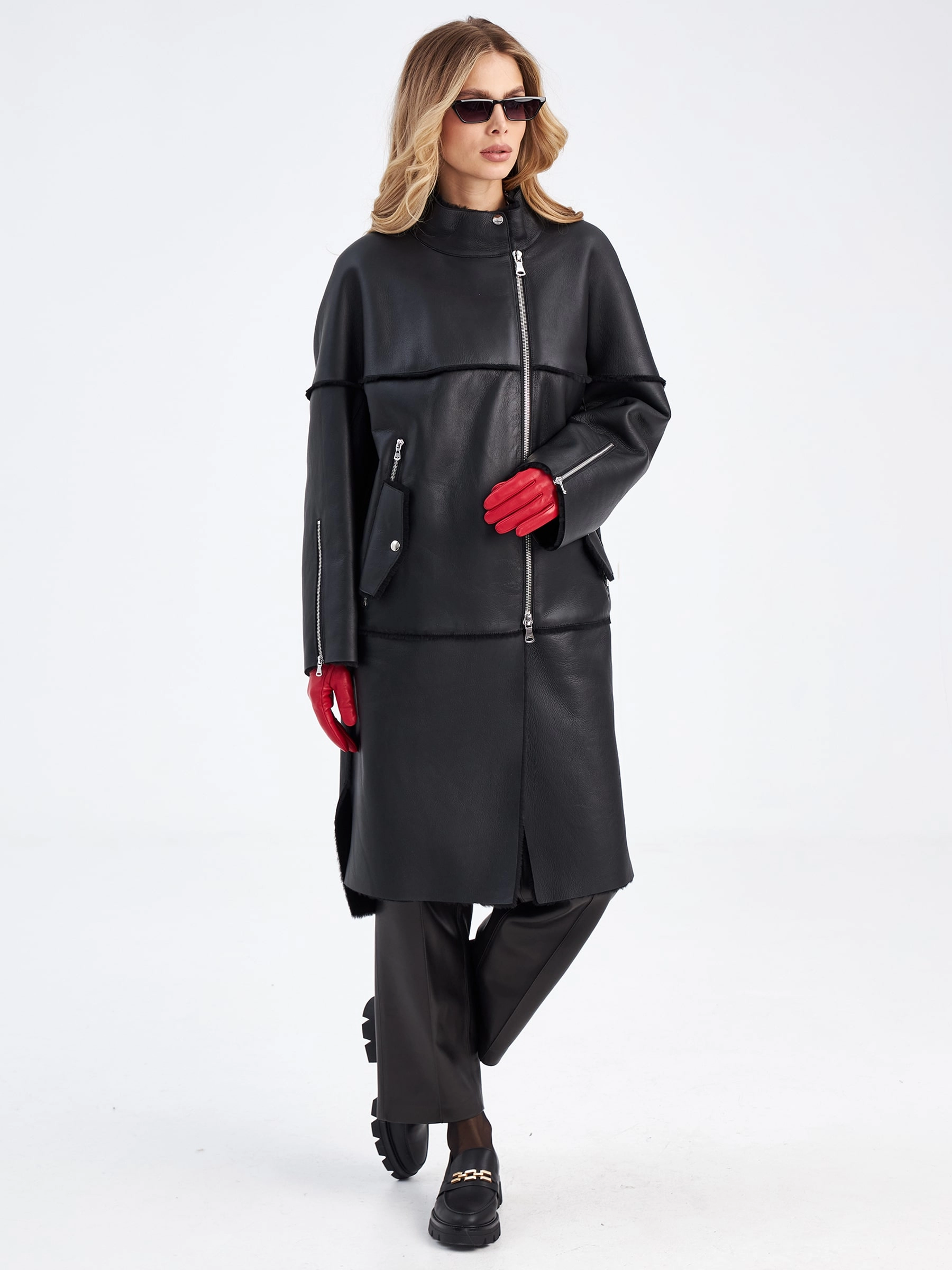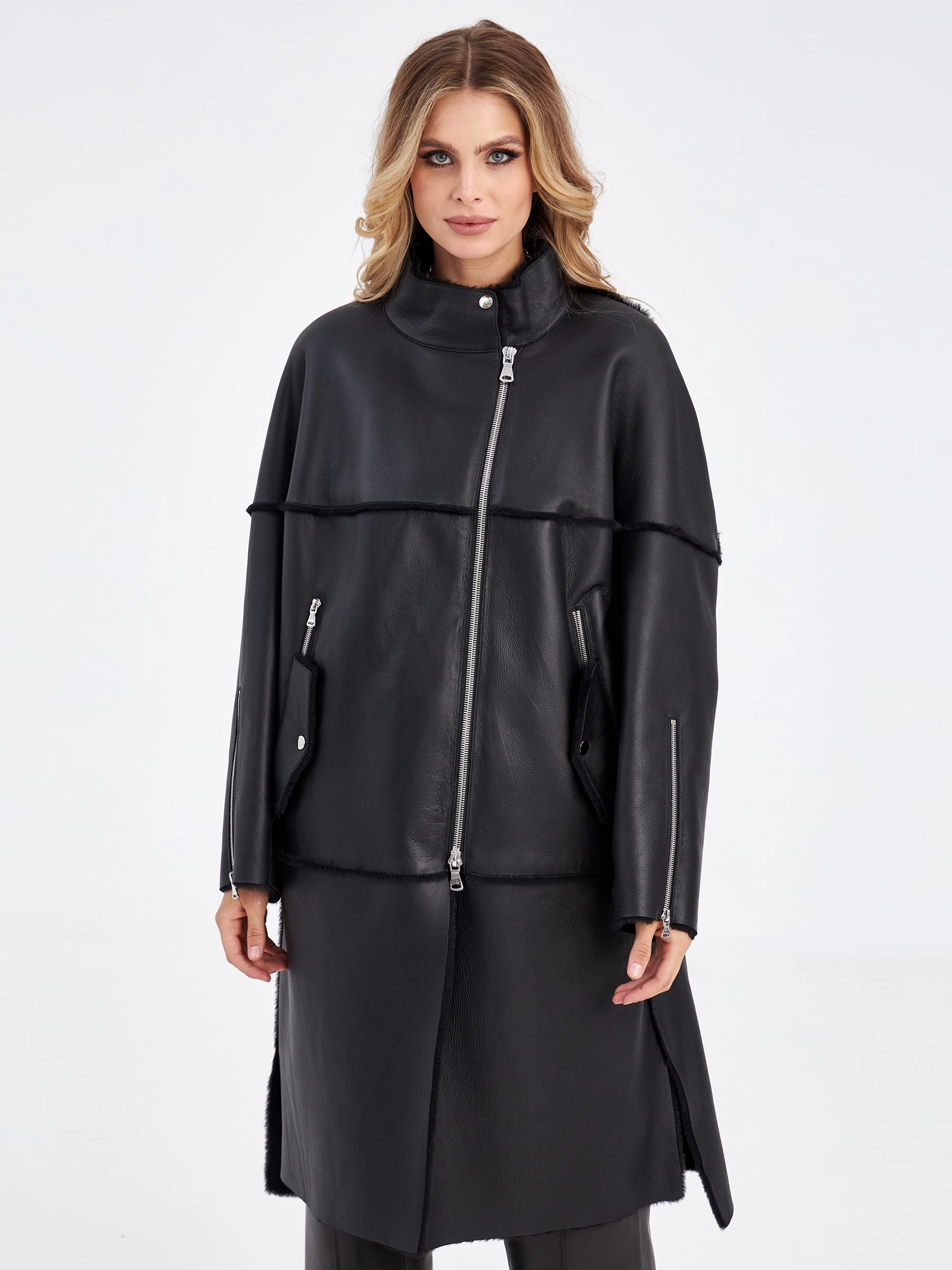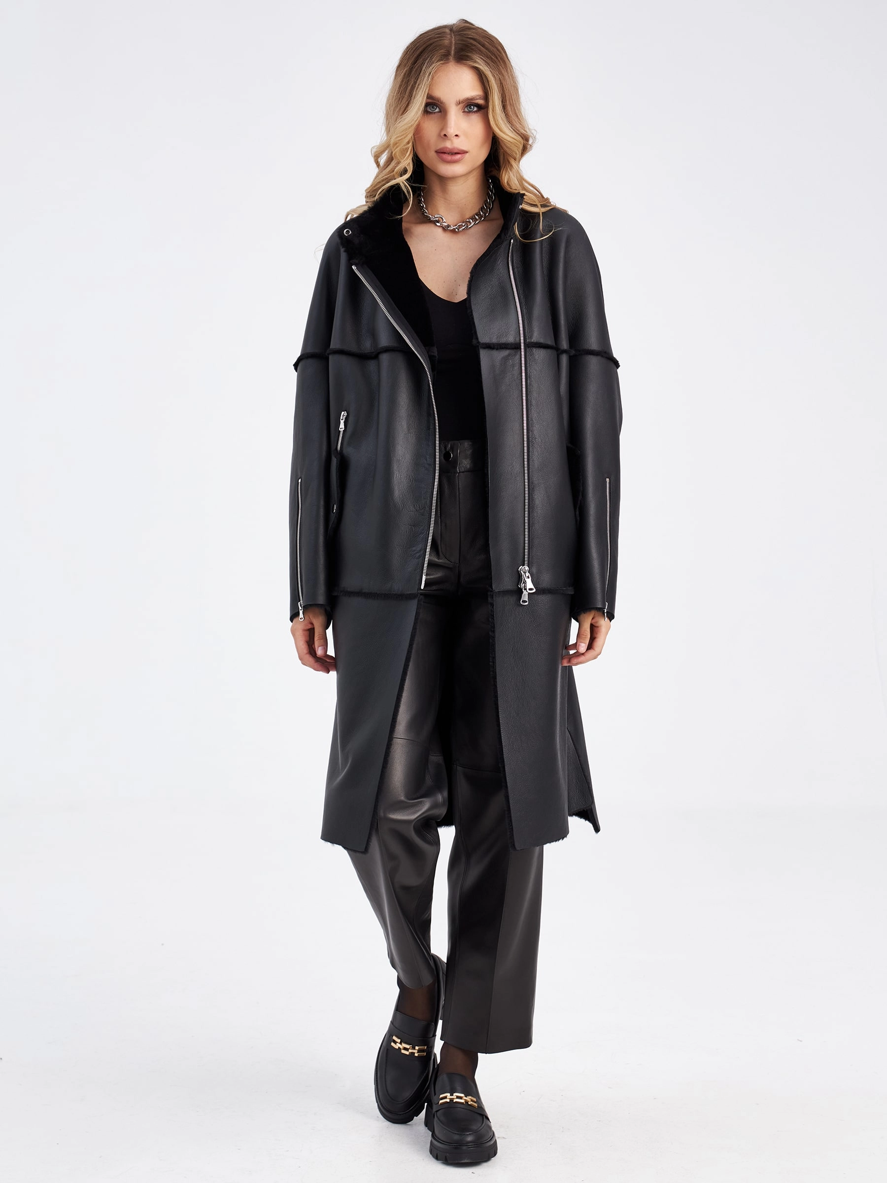 Товар молодежная женская дубленка на молнии премиум класса 2029, черная, размер 52, артикул 63000 выполнен из овчина "мерино" с застежкой молния. Рассчитан на сезон: осень-зима. Длина изделия 105 см, силуэт прямой.