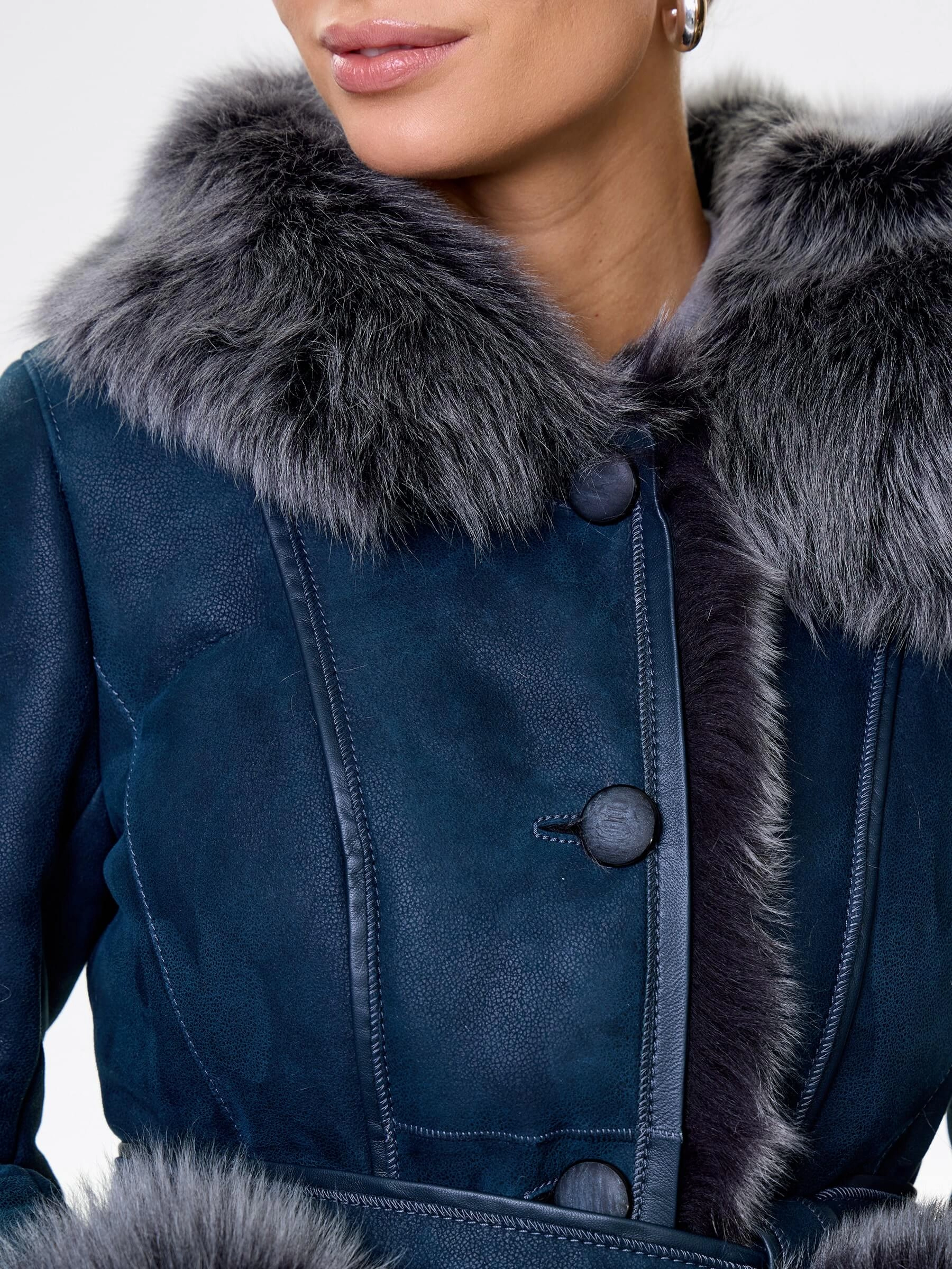 Товар длинная женская дубленка из тосканы с капюшоном 123нк, синяя, размер 40, артикул 61913 выполнен из овчина "тоскана" с застежкой пуговицы. Рассчитан на сезон: осень-зима. Длина изделия 101 см, силуэт полуприлегающий.