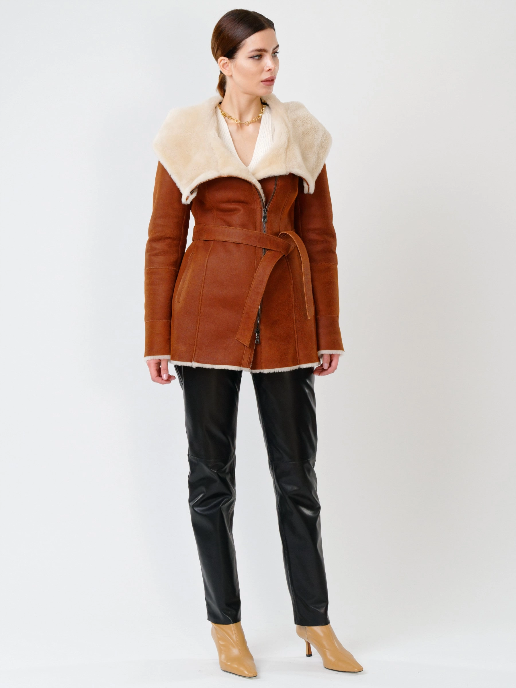 В теплом табачно-рыжем цвете, эта дерзкая короткая женская дубленка-косуха из нежнейшей овчины мерино на двойной молнии, с удобным объемным капюшоном, полуприлегающим силуэтом, двумя врезными карманами и длинным поясом, дарит премиальное тепло и абсолютный комфорт; сочетайте ее с худи и рваными джинсами, кожаными брюками и футболкой, платьем-свитером и ботинками или поверх тонкого джемпера, дополняя объемным шарфом и рюкзаком для уличного шика.