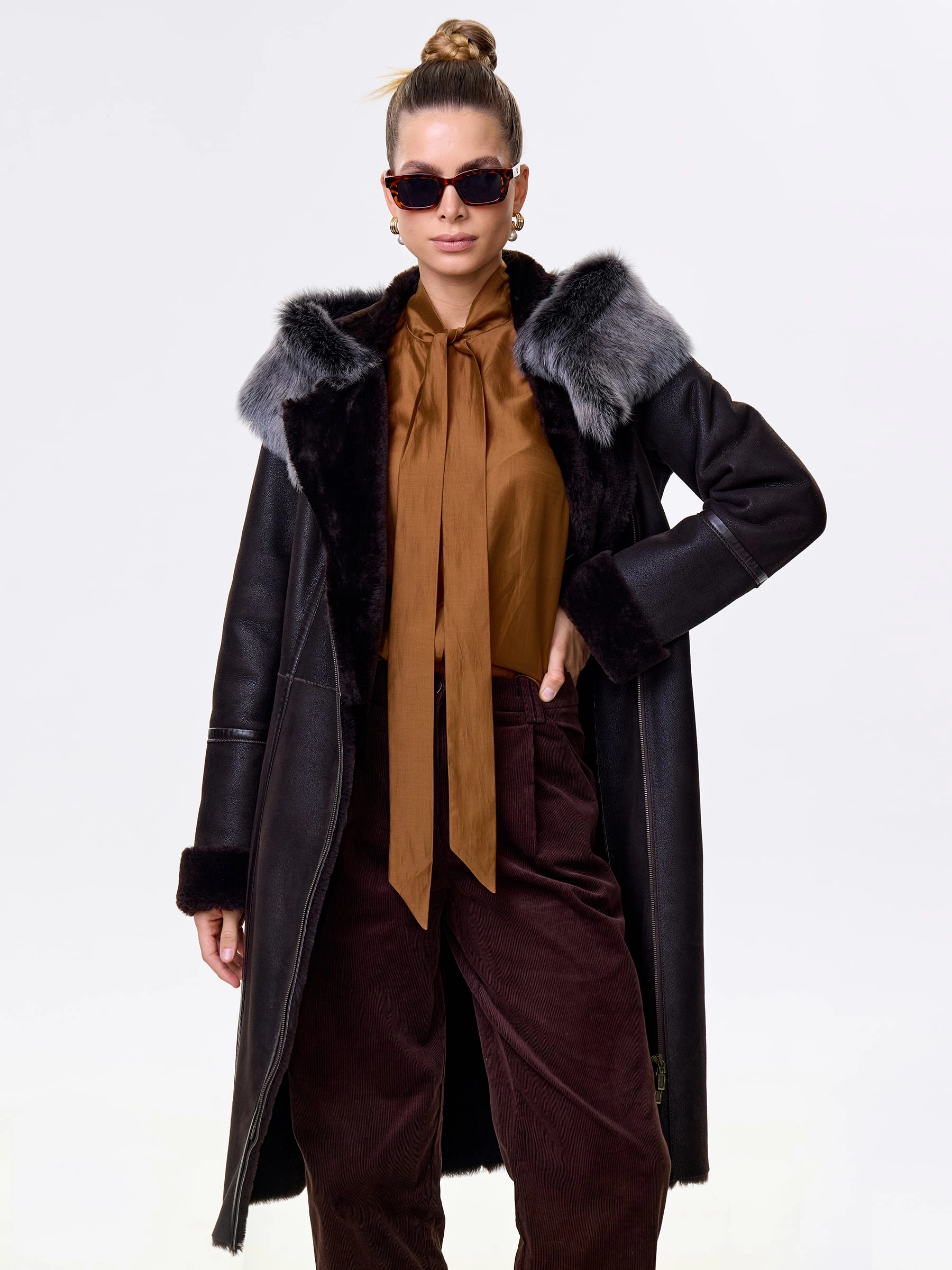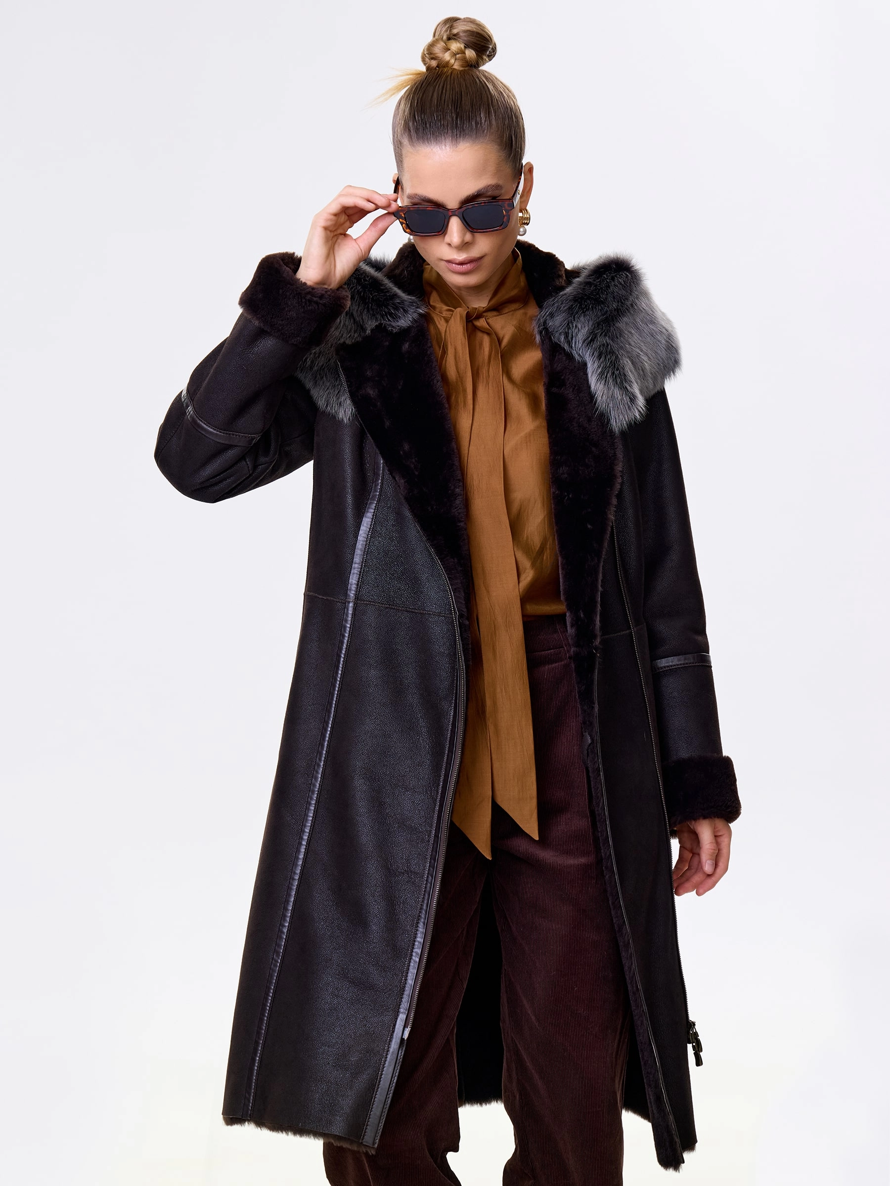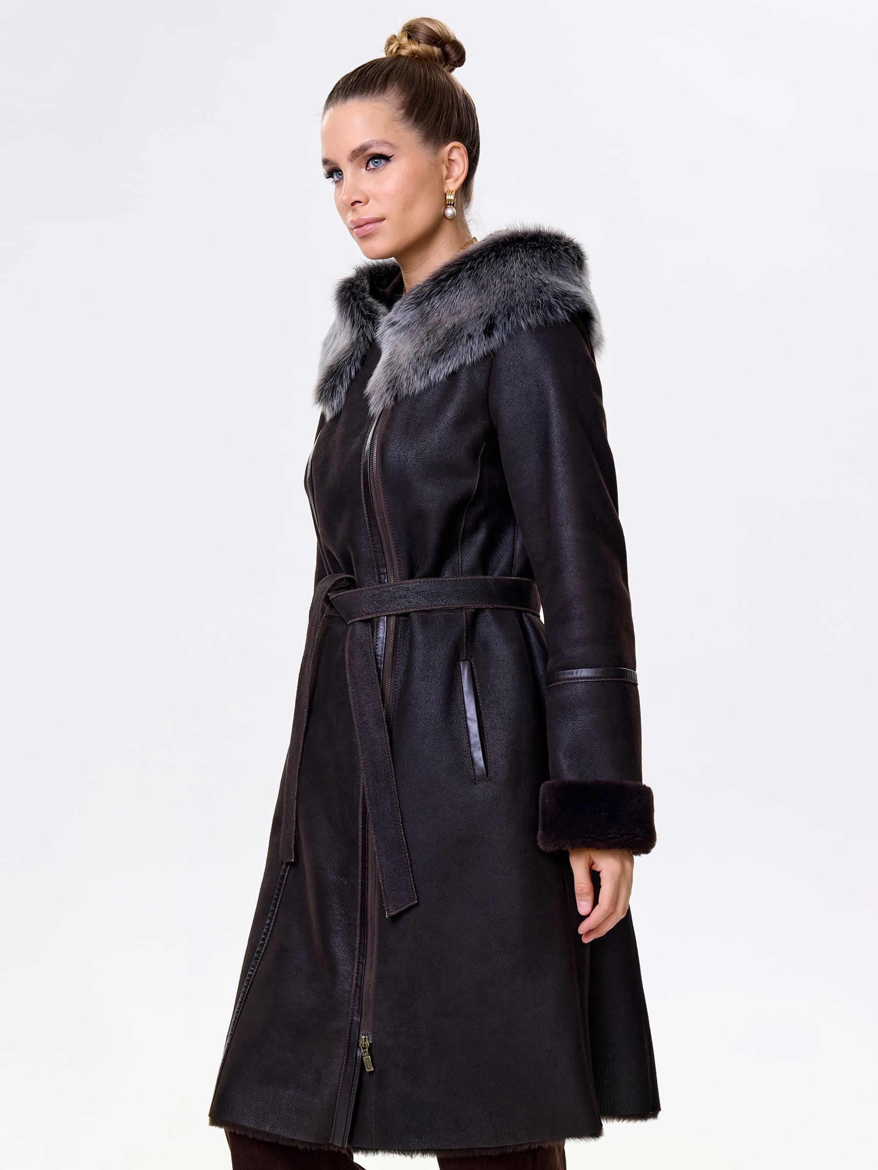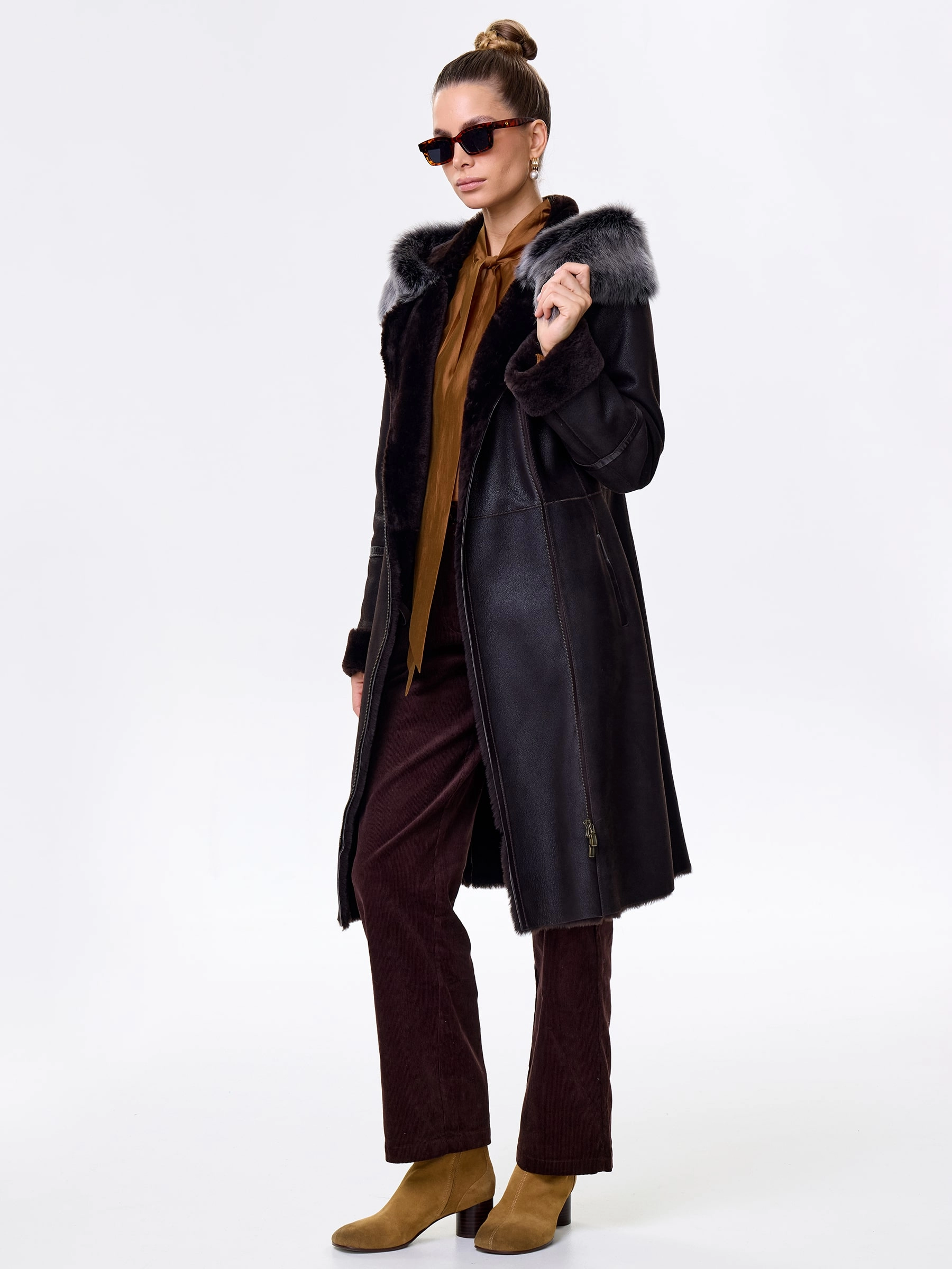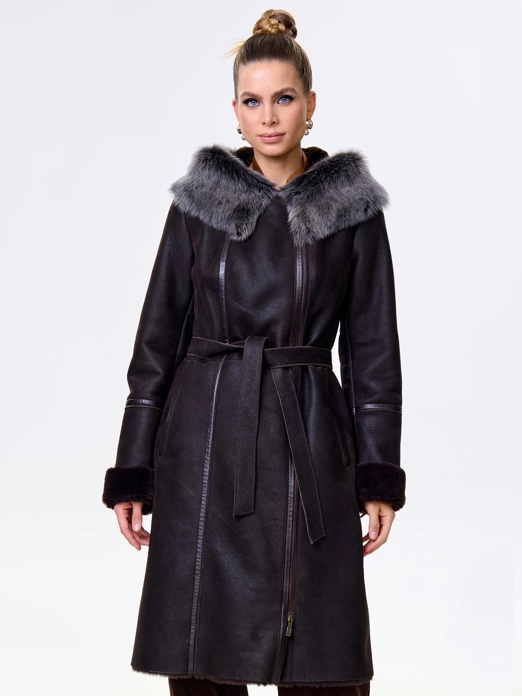 Роскошная длинная дублёнка из натуральной овчины «мерино» с удобной застёжкой-молнией и глубоким несъёмным капюшоном с опушью из тосканской овчины. Полуприлегающий силуэт с втачными рукавами обеспечивает чёткую и комфортную посадку — результат безупречной работы портных. Длинный пояс подчеркнёт талию, а невероятно мягкий густой мех надёжно защитит от холода. Идеальна с облегающими джинсами и свитером для повседневного образа или с платьем и сапогами для выхода — премиальное качество во всём.