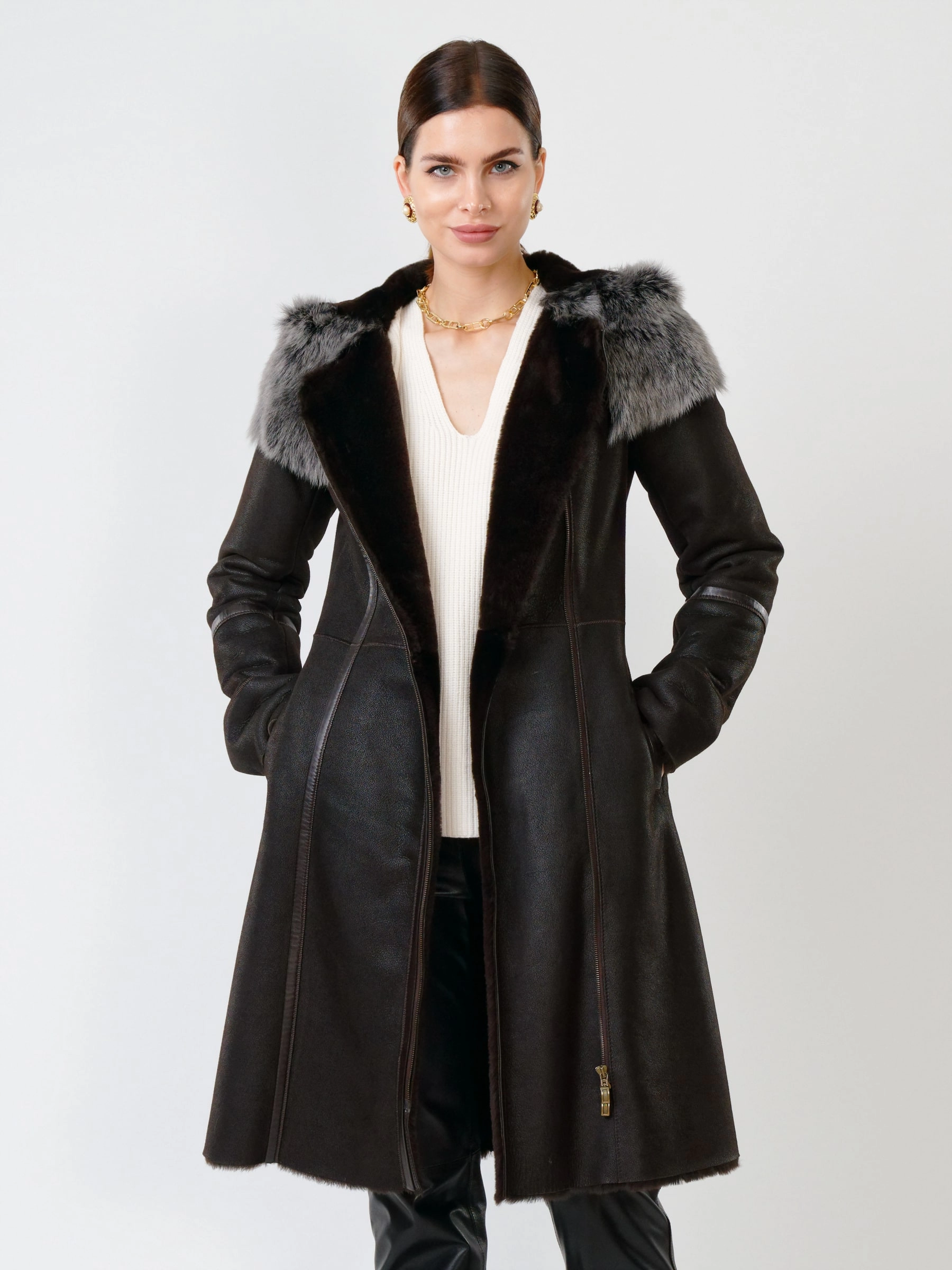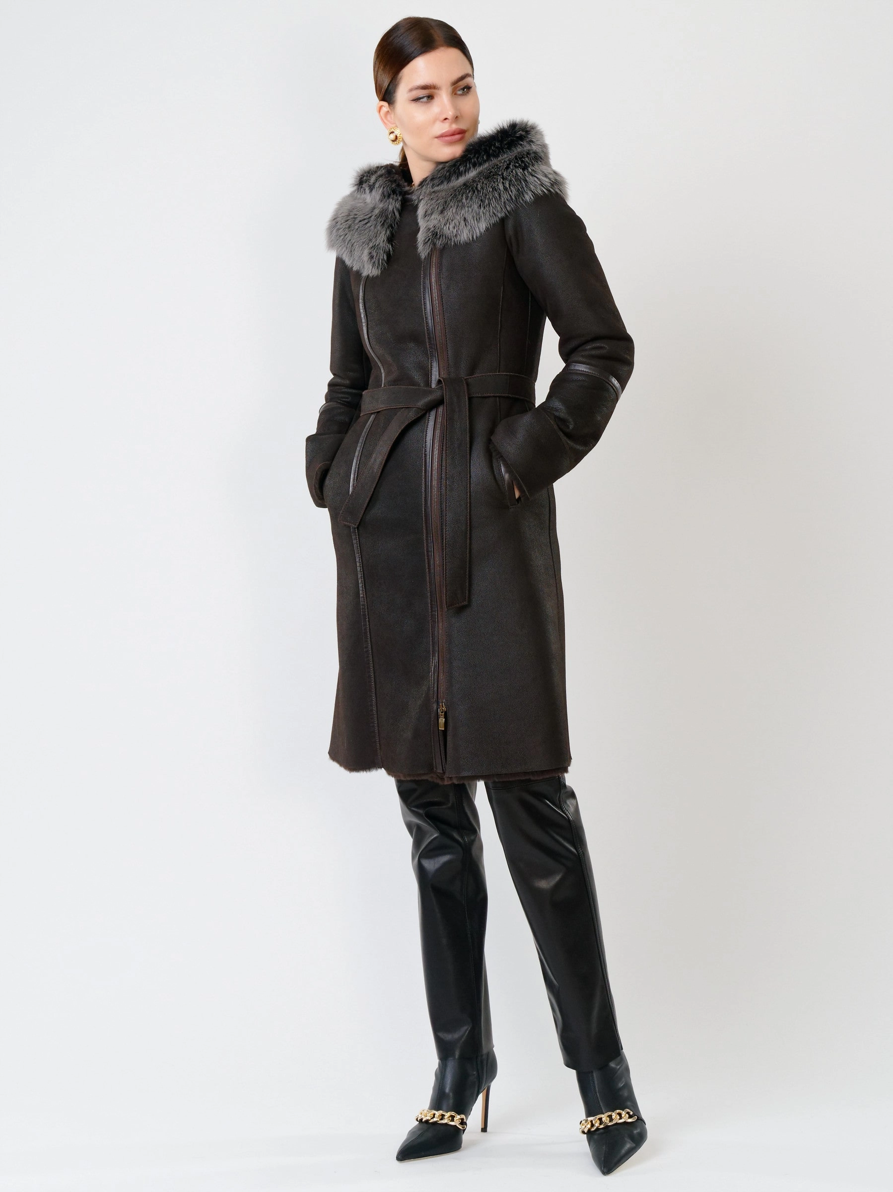 Роскошная длинная дублёнка из натуральной овчины «мерино» с удобной застёжкой-молнией и глубоким несъёмным капюшоном с опушью из тосканской овчины. Полуприлегающий силуэт с втачными рукавами обеспечивает чёткую и комфортную посадку — результат безупречной работы портных. Длинный пояс подчеркнёт талию, а невероятно мягкий густой мех надёжно защитит от холода. Идеальна с облегающими джинсами и свитером для повседневного образа или с платьем и сапогами для выхода — премиальное качество во всём.