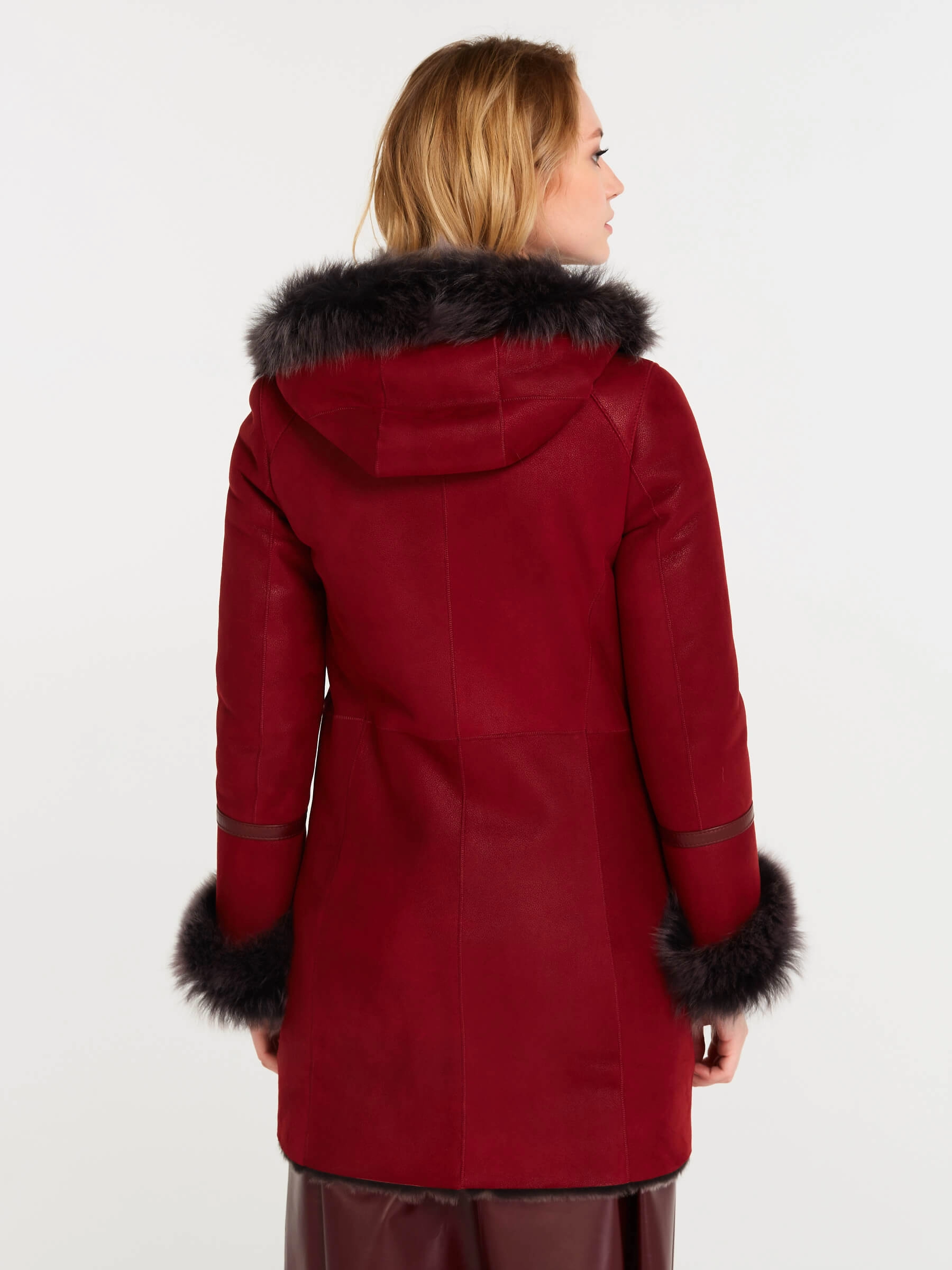 Дубленка косуха женская с капюшоном из тосканы 293, красная, размер 42, артикул 61570