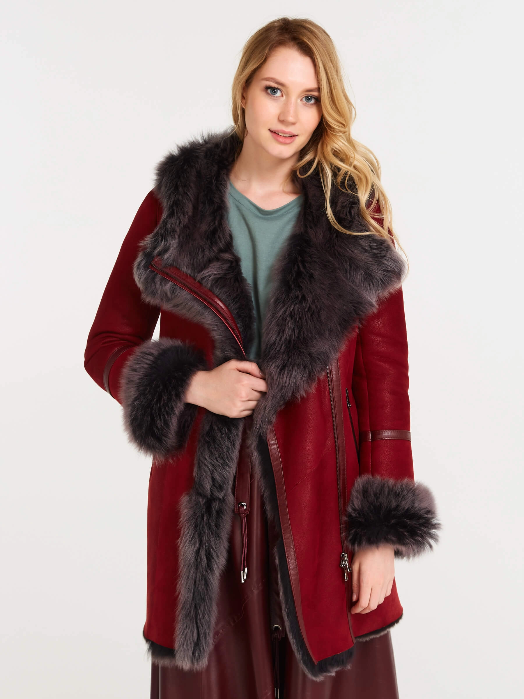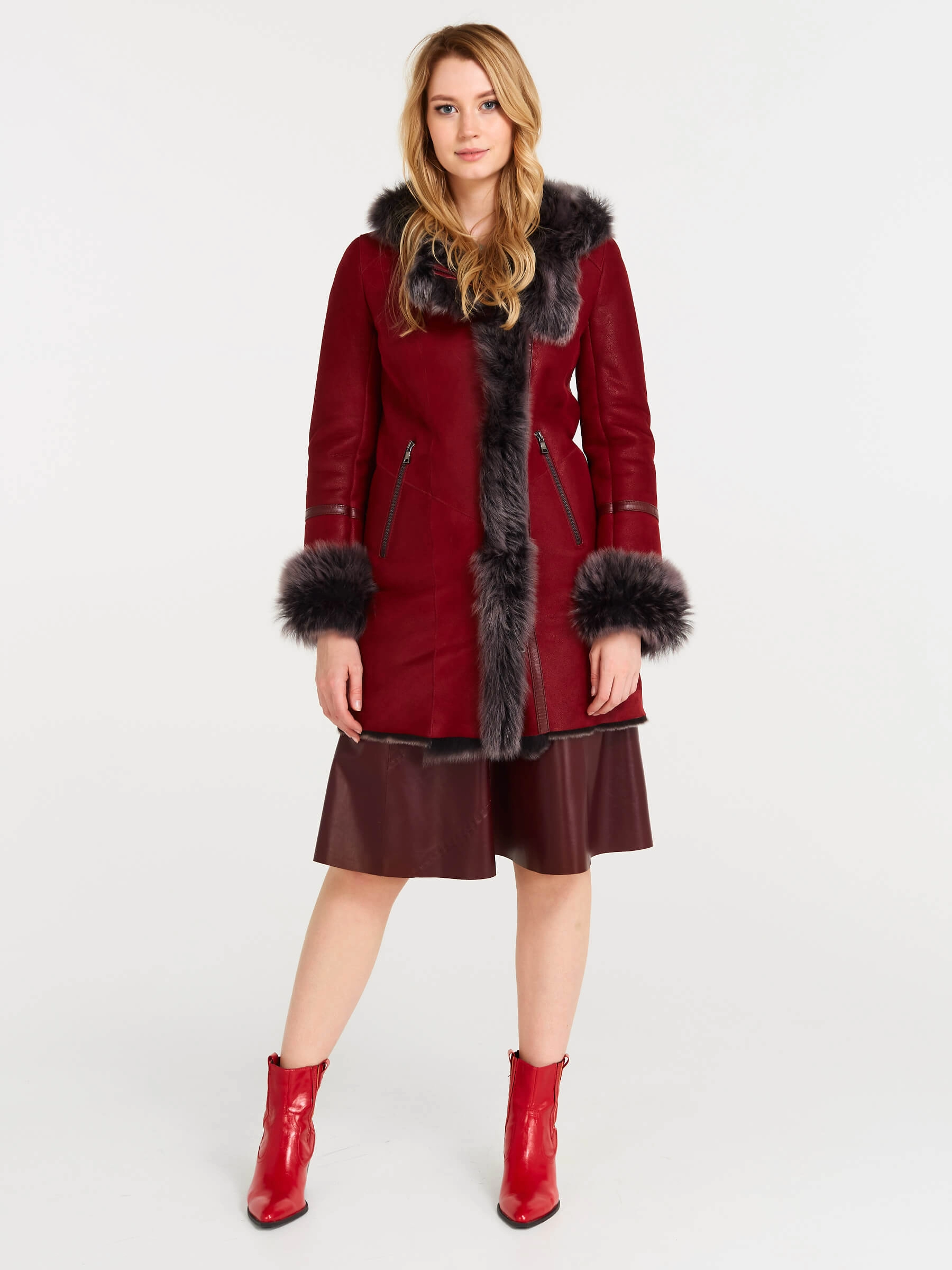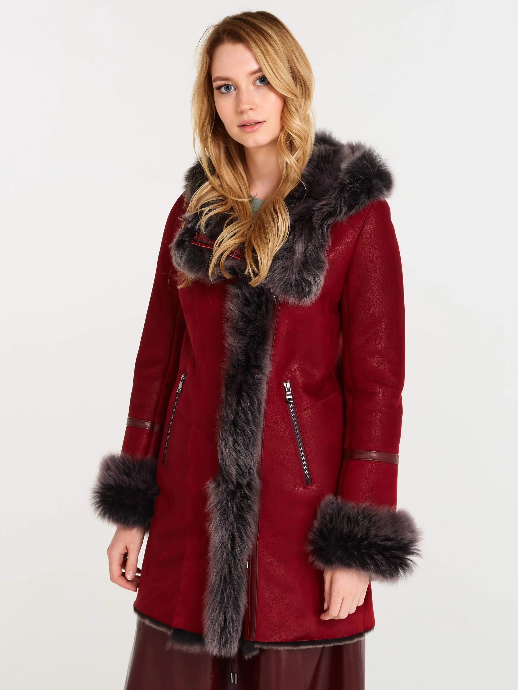 Товар дубленка косуха женская с капюшоном из тосканы 293, красная, размер 42, артикул 61570 выполнен из овчина "мерино" с застежкой молния. Рассчитан на сезон: осень-зима. Длина изделия 75 см, силуэт прямой.