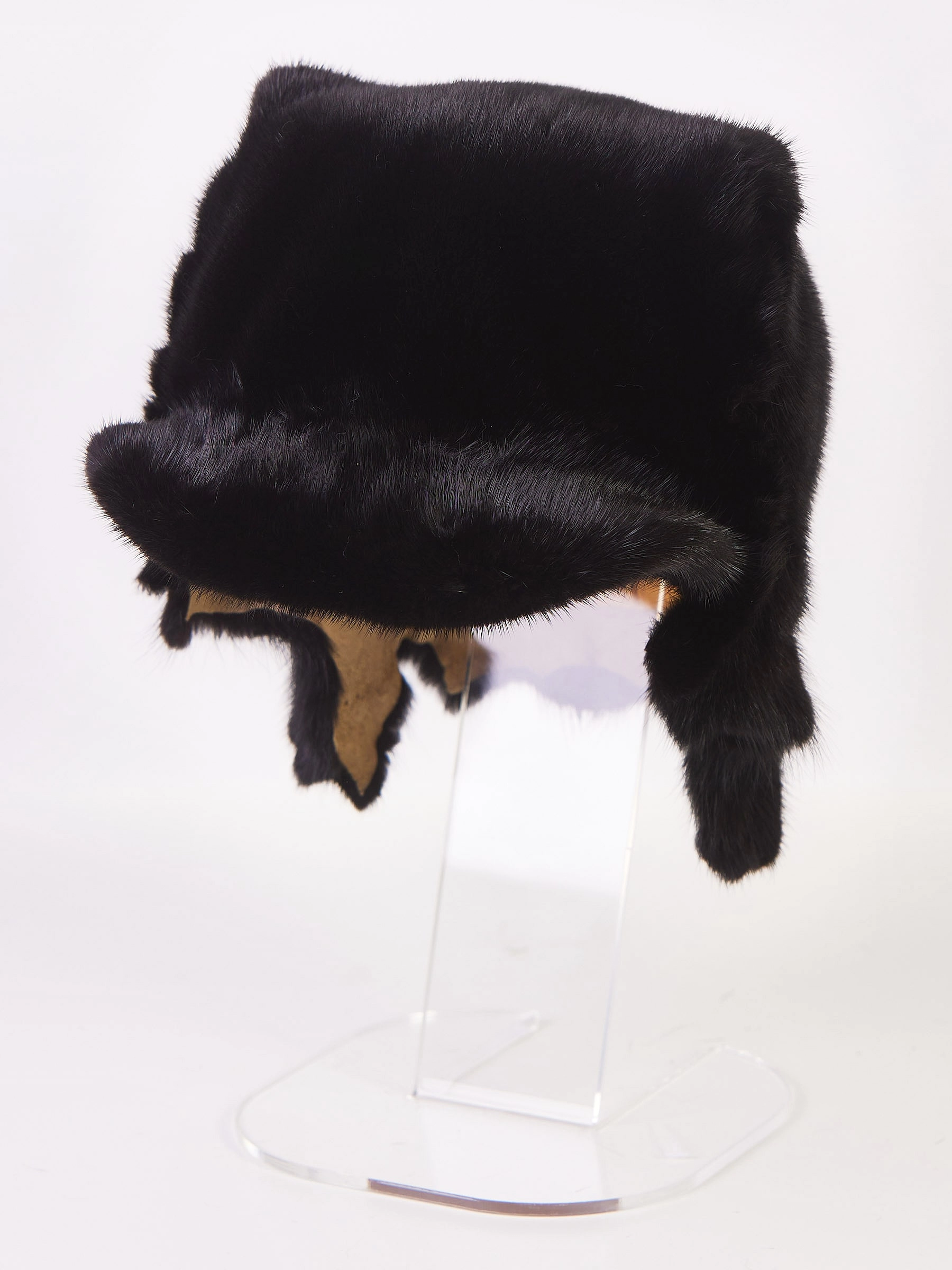 Головной убор из меха норки женский Киска, черный, размер 58, артикул 51550
