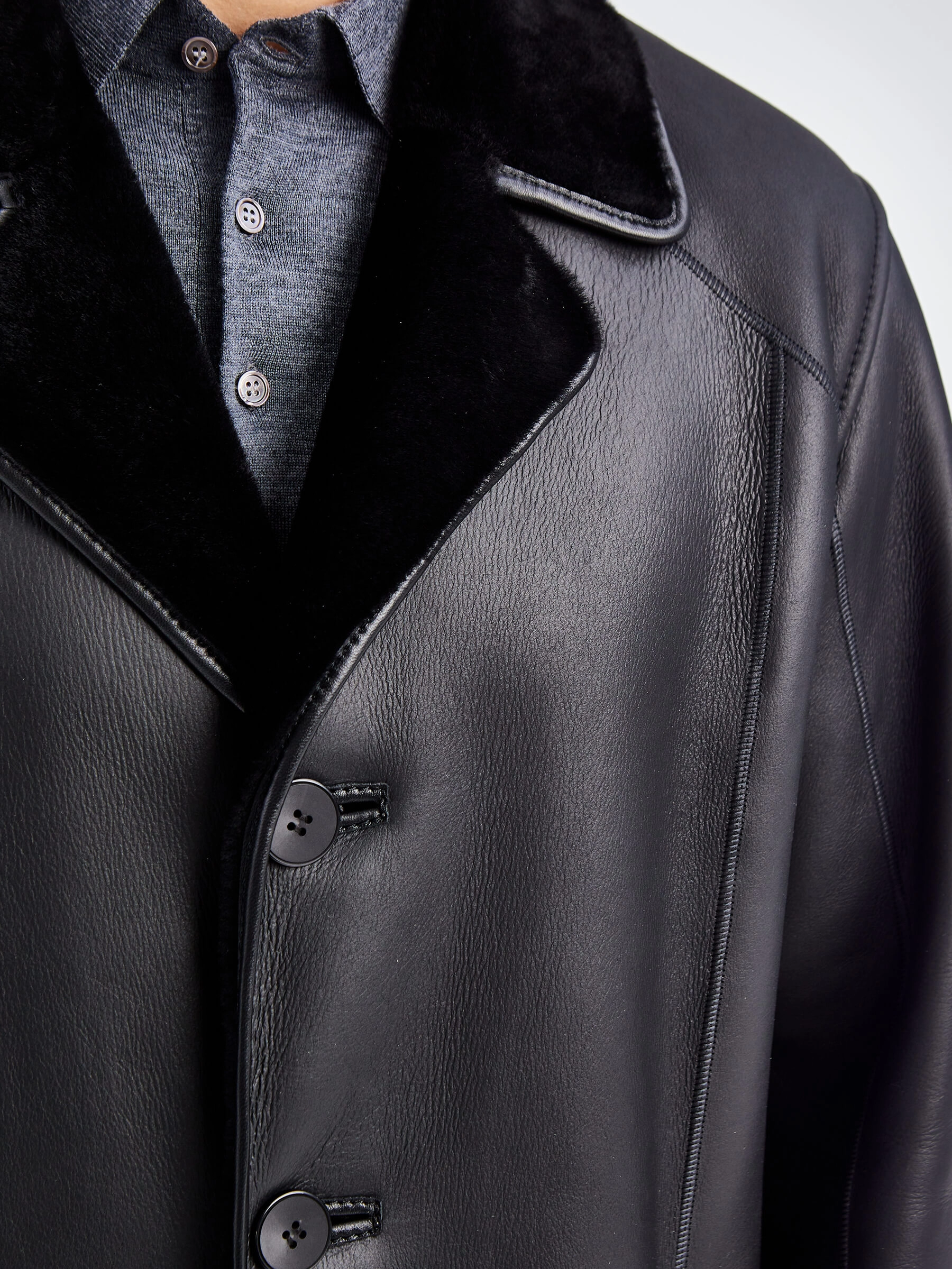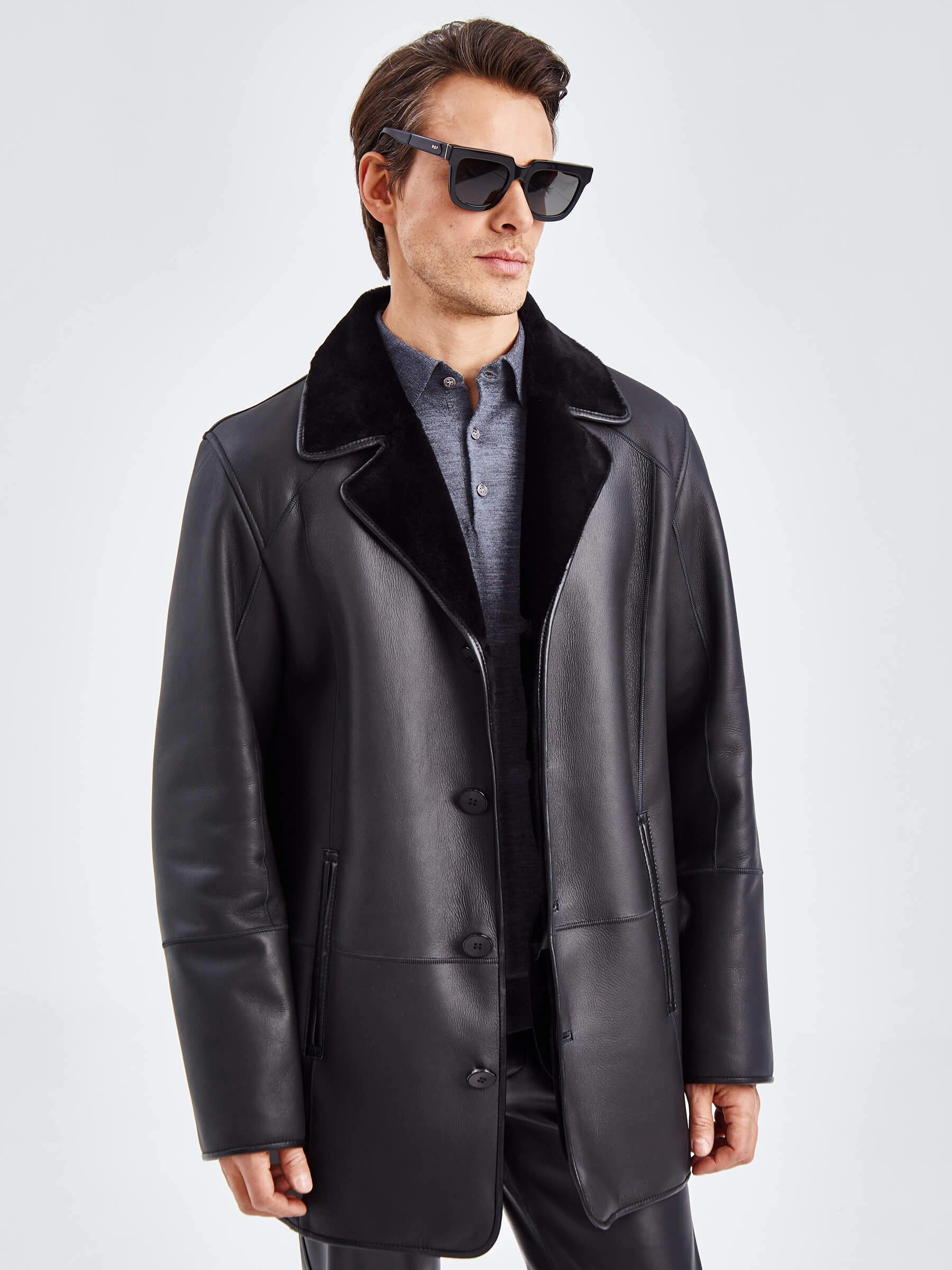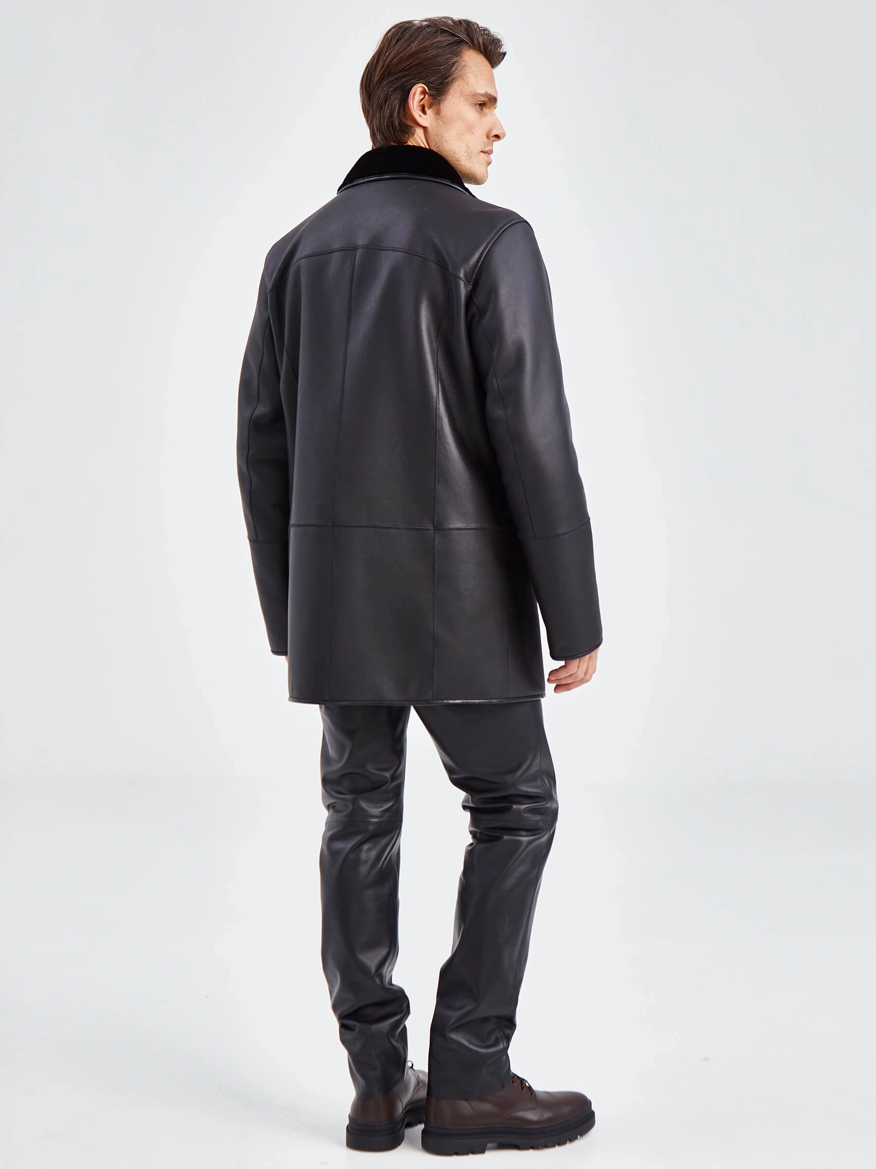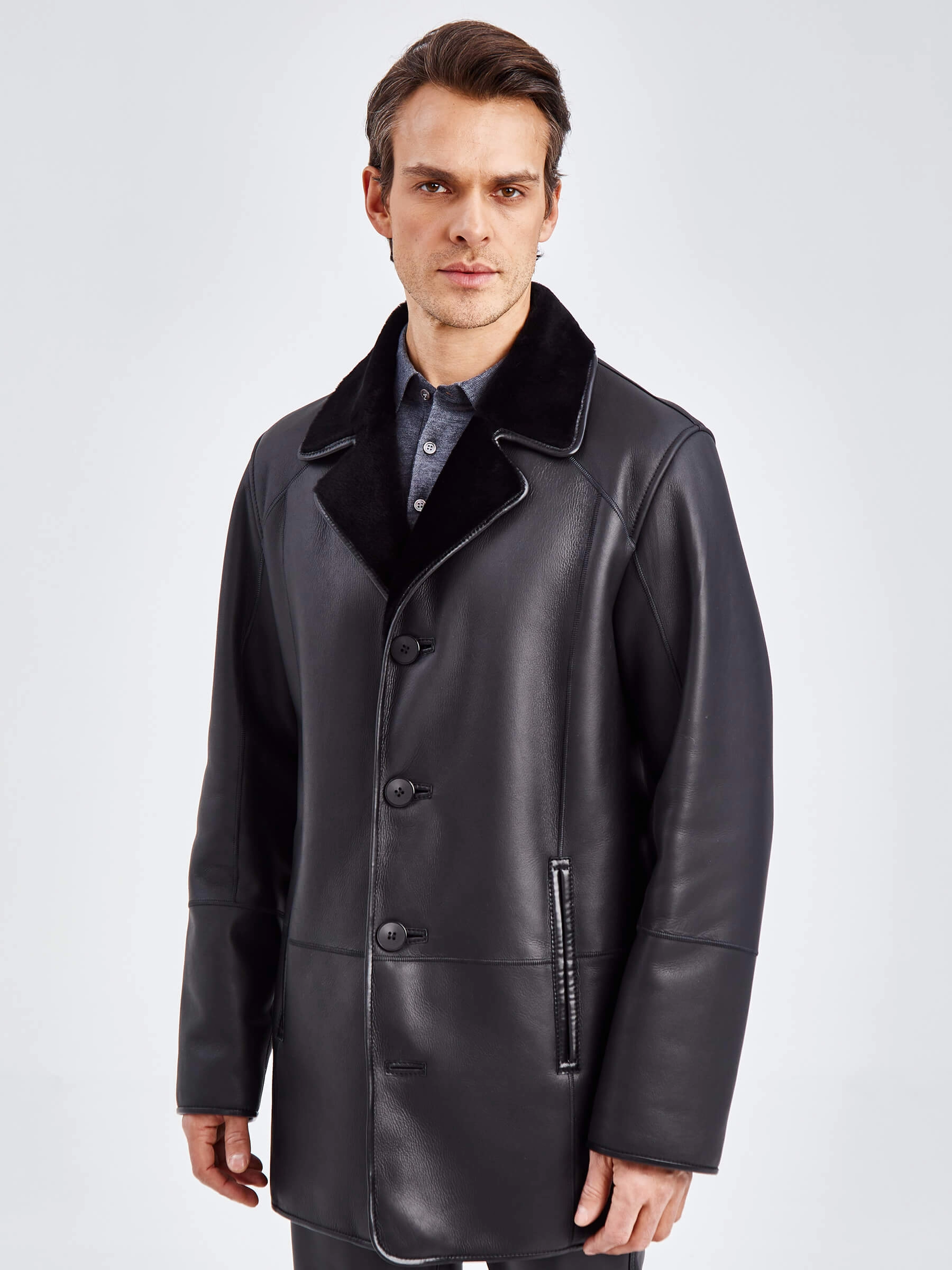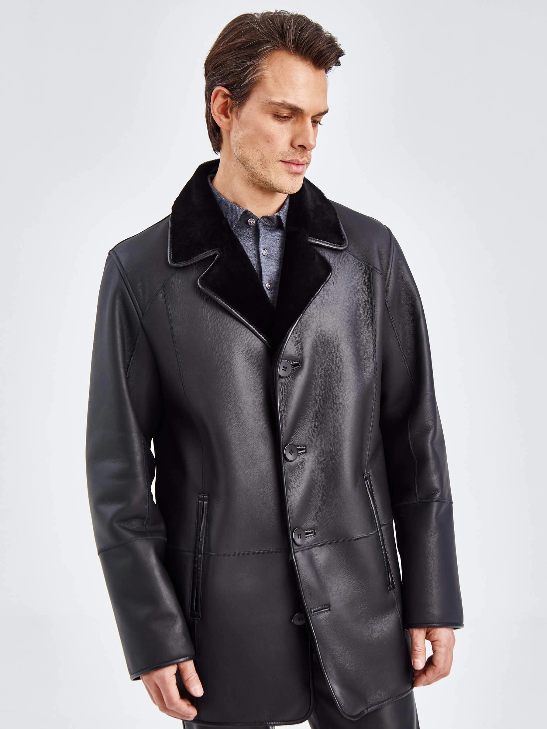 Классическая мужская дубленка премиум класса 135(пр), черная, размер 56, артикул 71400