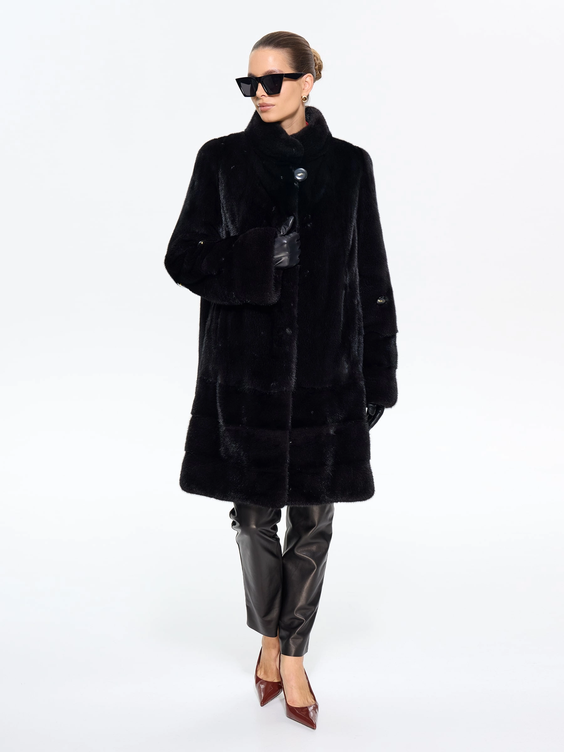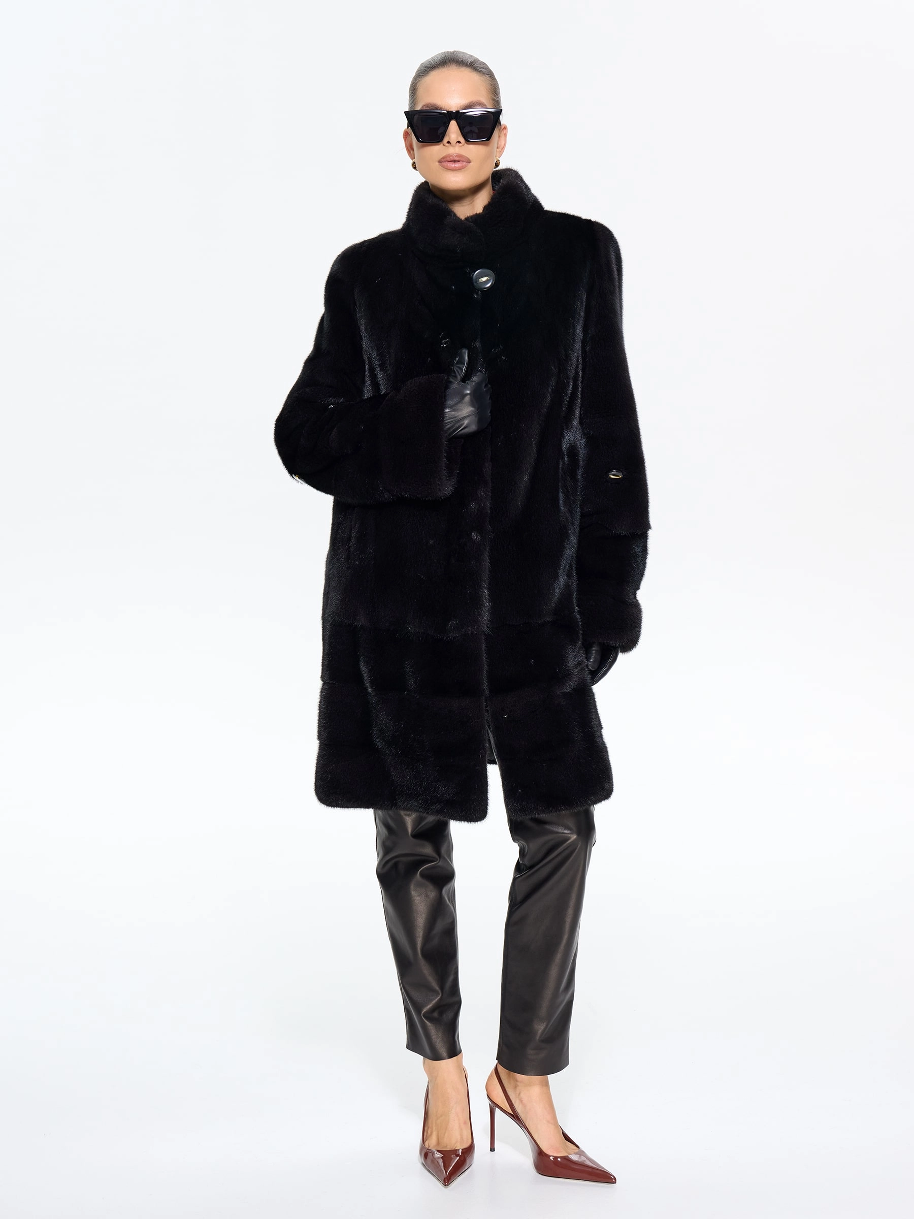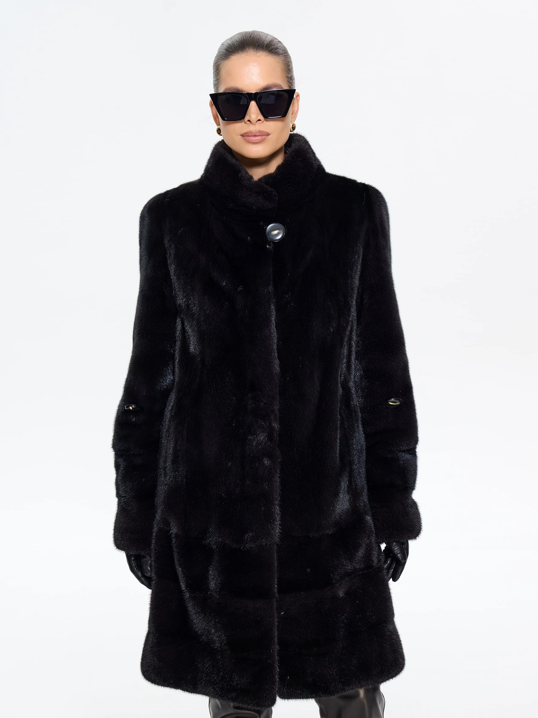 Элегантная шуба из меха норки премиум-класса прямого силуэта и длиной 100 см с воротником-стойкой и втачными рукавами. Эта классическая модель с диагональной раскладкой по подолу и рукавам, карманами и регулируемой внутренней кулиской для изменения силуэта, станет практичной и статусной вещью в вашем гардеробе. Стилисты рекомендуют носить эту роскошную шубу с капюшоном с джинсами-скинни и высокими сапогами для повседневного образа, а также с платьем-миди и каблуками для выхода в свет — её универсальность и утончённая классика покорят любую женщину.
