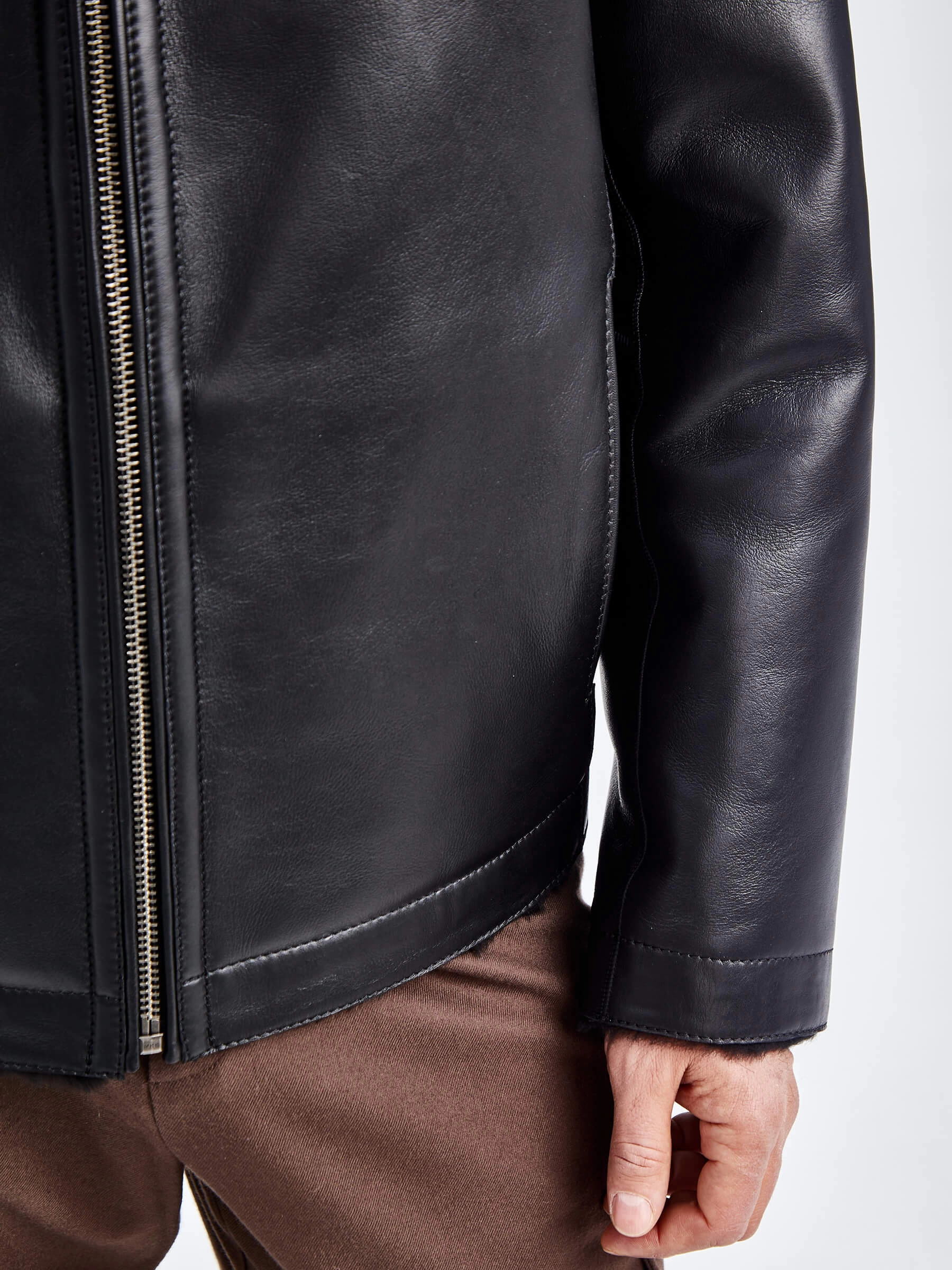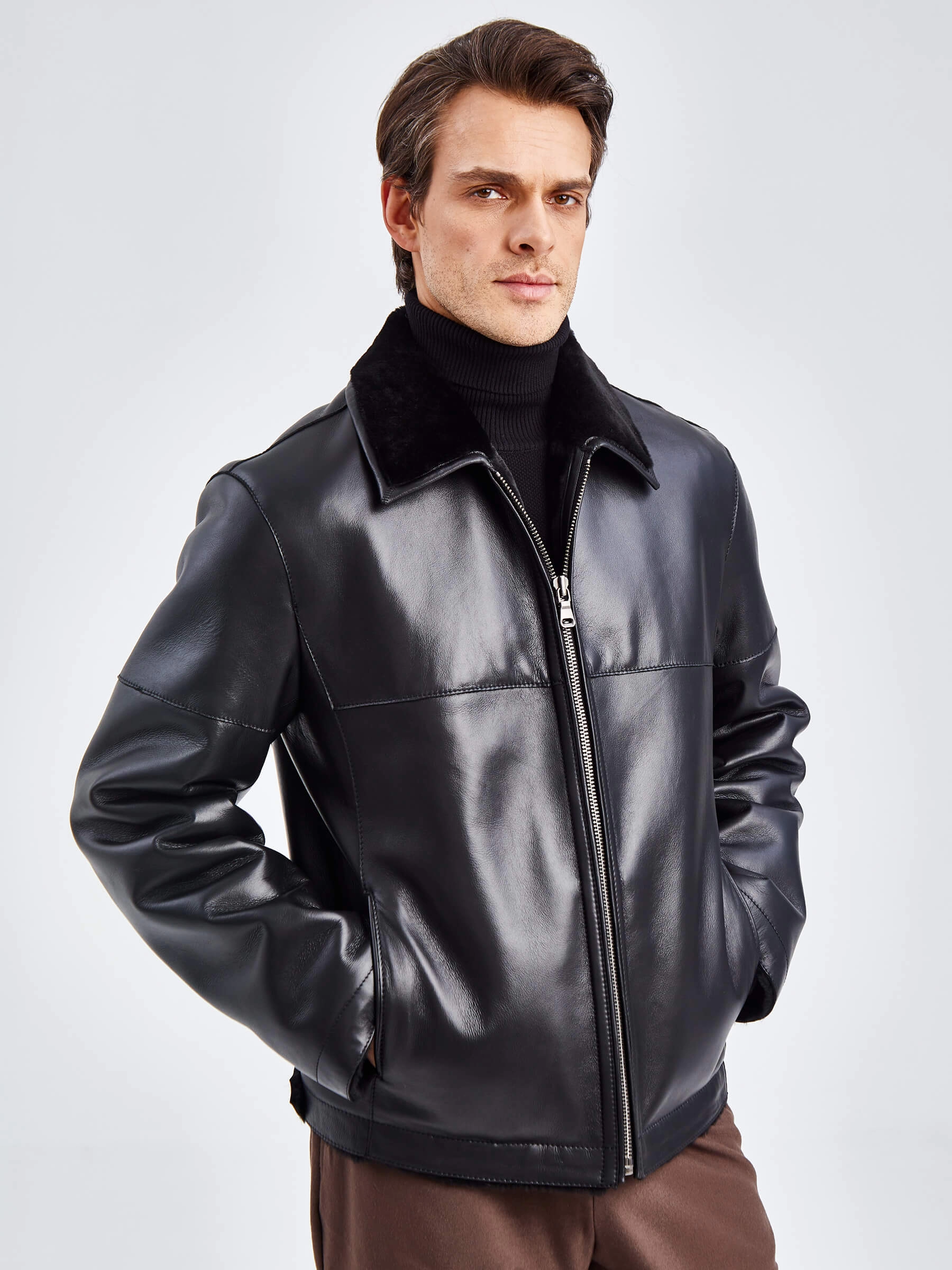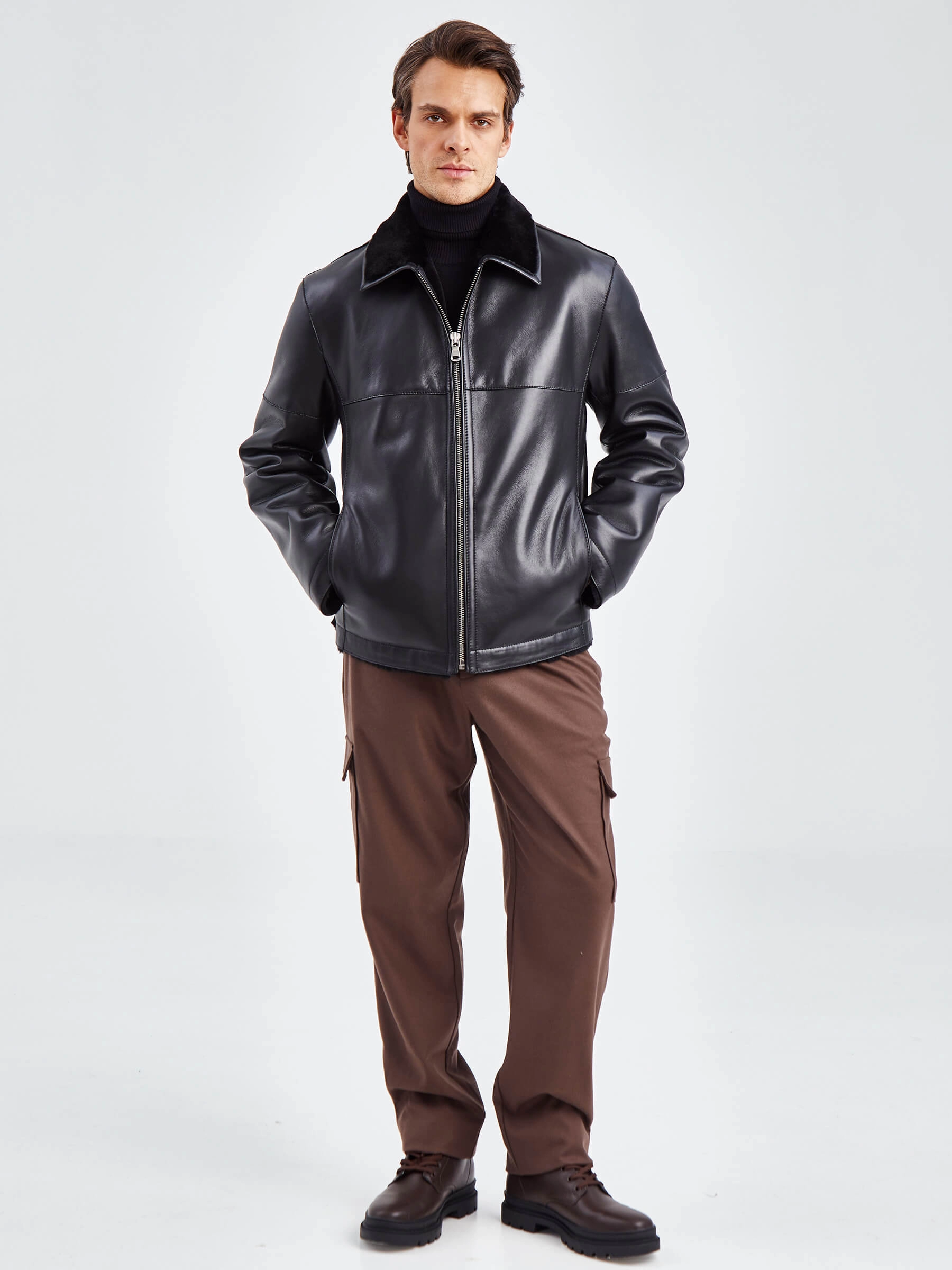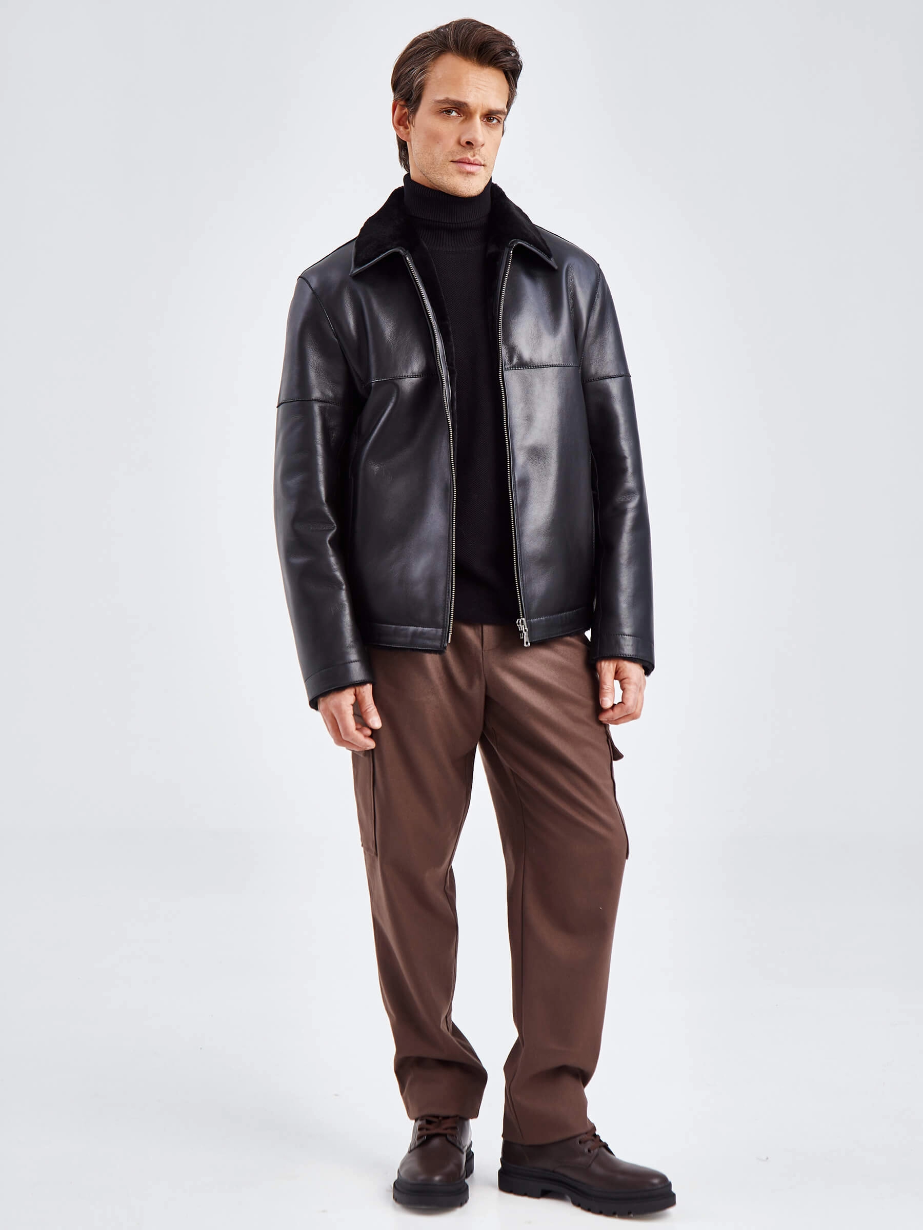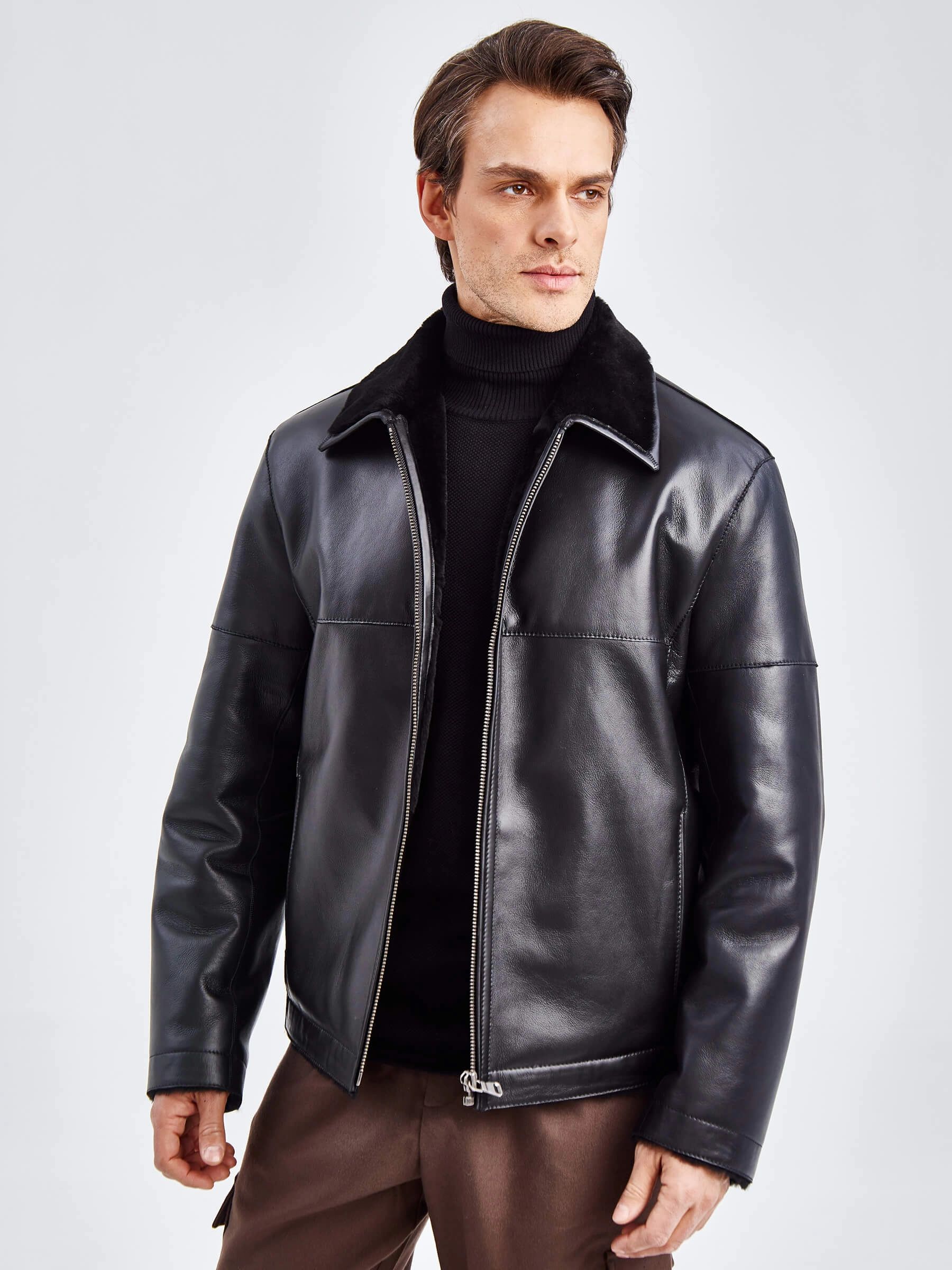 Товар короткая мужская дубленка премиум класса 140(пр), черная, размер 52, артикул 71420 выполнен из овчина "мерино" с застежкой молния. Рассчитан на сезон: осень-зима. Длина изделия 70 см, силуэт прямой.