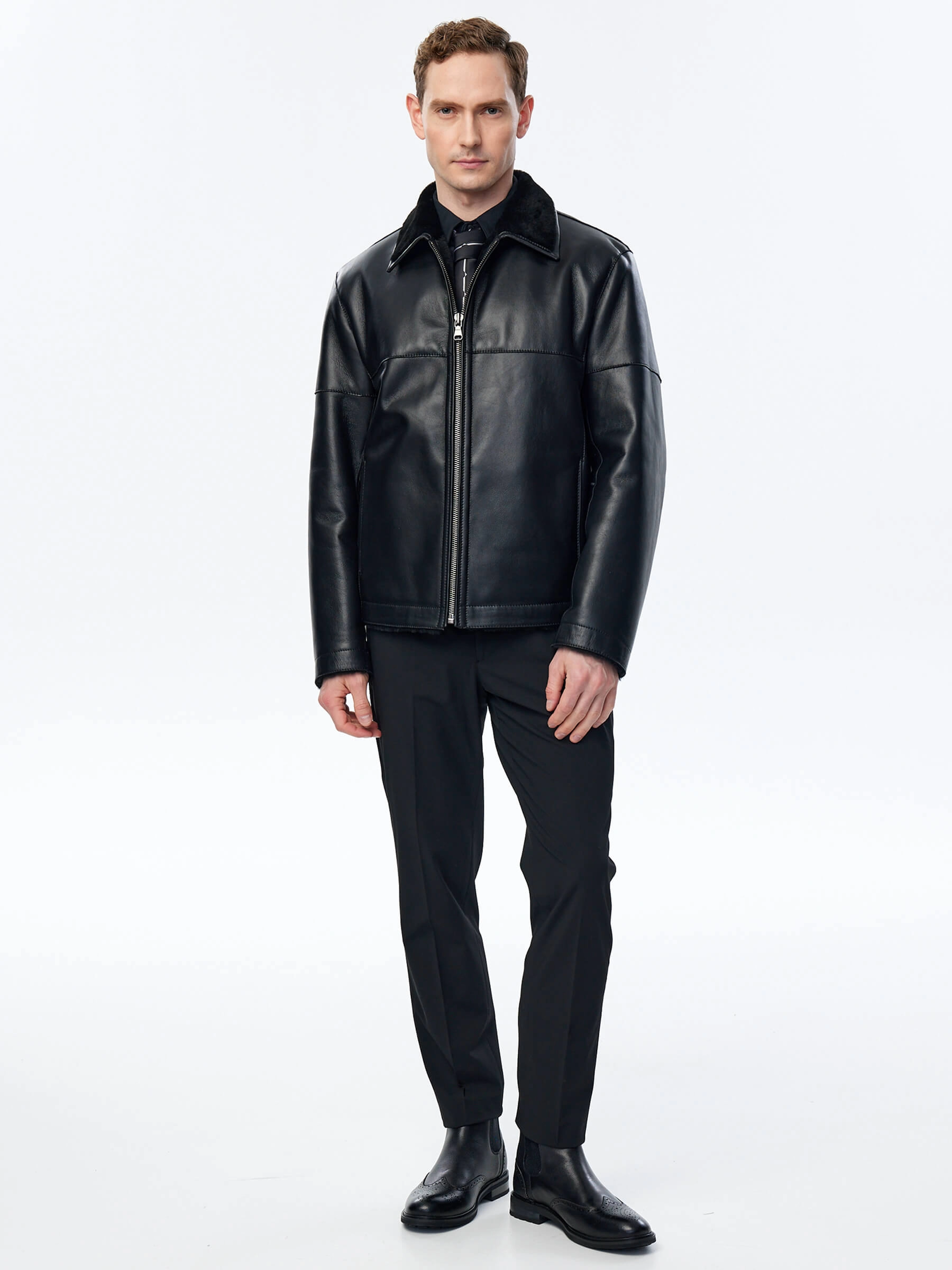 Товар короткая мужская дубленка премиум класса 140(пр), черная, размер 52, артикул 71421 выполнен из овчина "мерино" с застежкой молния. Рассчитан на сезон: осень-зима. Длина изделия 70 см, силуэт прямой.