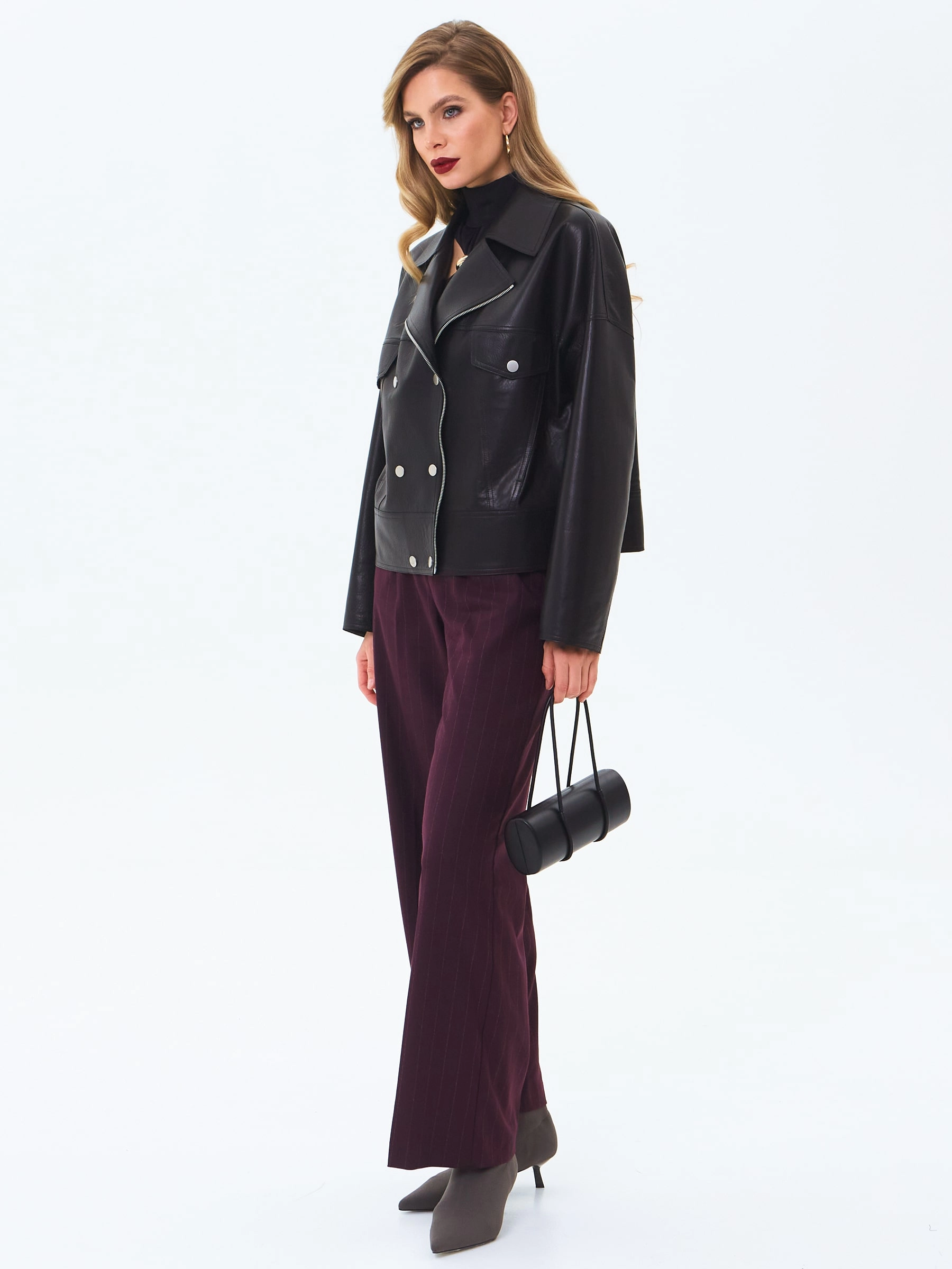 Товар короткая женская кожаная куртка косуха премиум класса 3085, черная, размер 46, артикул 24610 выполнен из натуральной кожи с застежкой молния. Рассчитан на сезон: весна-лето. Длина изделия 58 см, силуэт прямой.