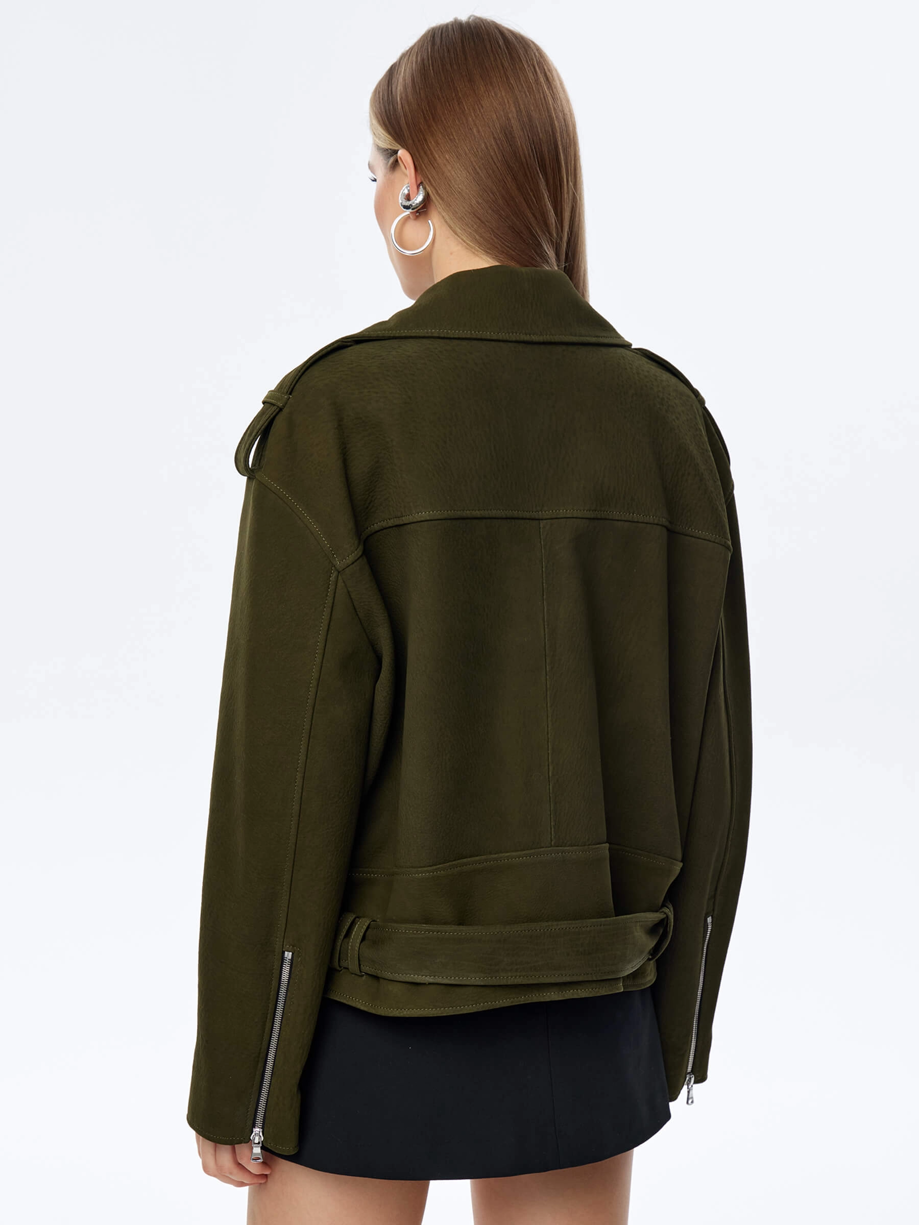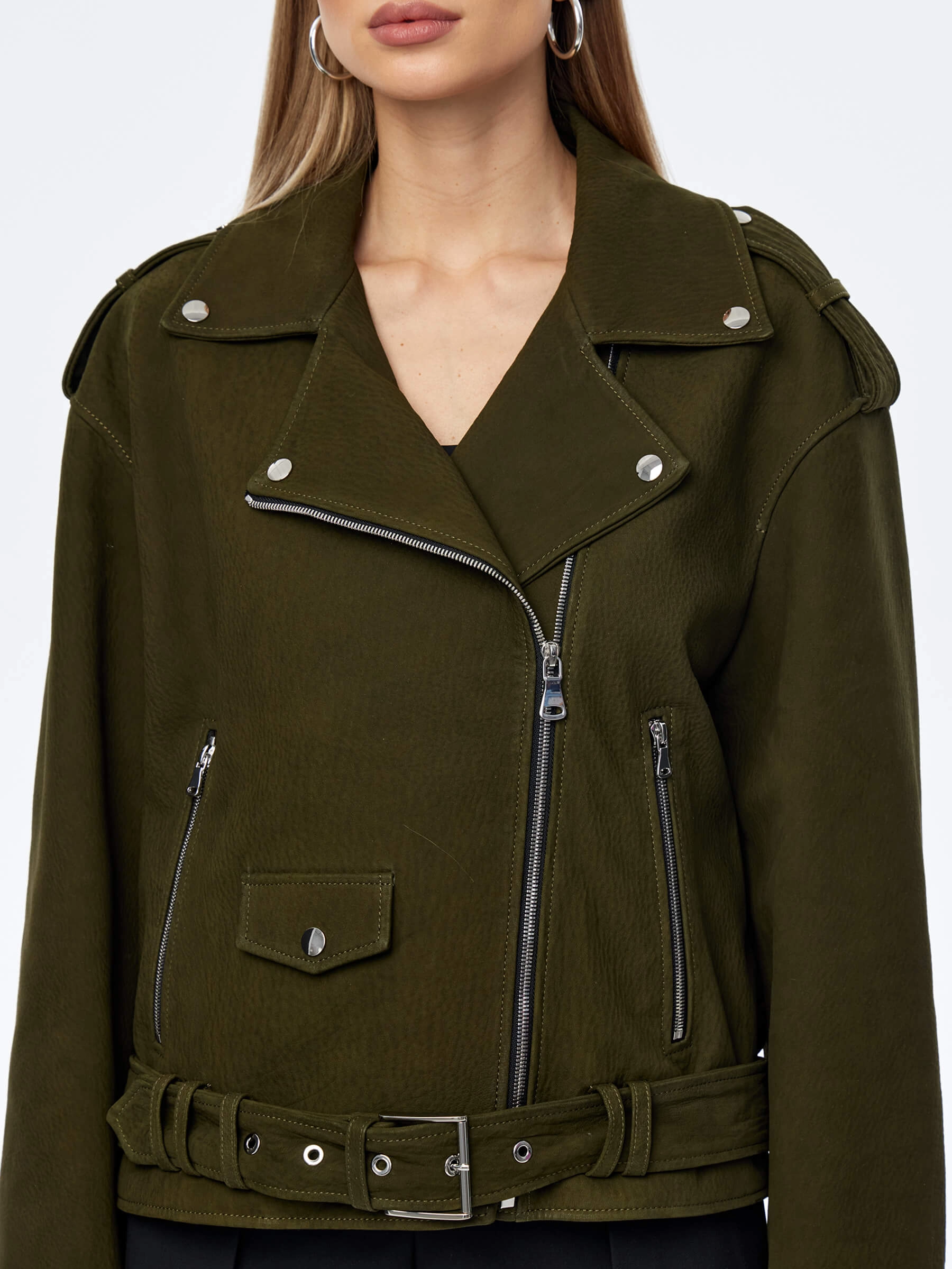 Товар короткая женская кожаная куртка косуха с поясом премиум класса 3052, хаки, размер 44, артикул 23970 выполнен из натуральной кожи. Рассчитан на сезон: весна-осень. Длина изделия 60 см, силуэт свободный.