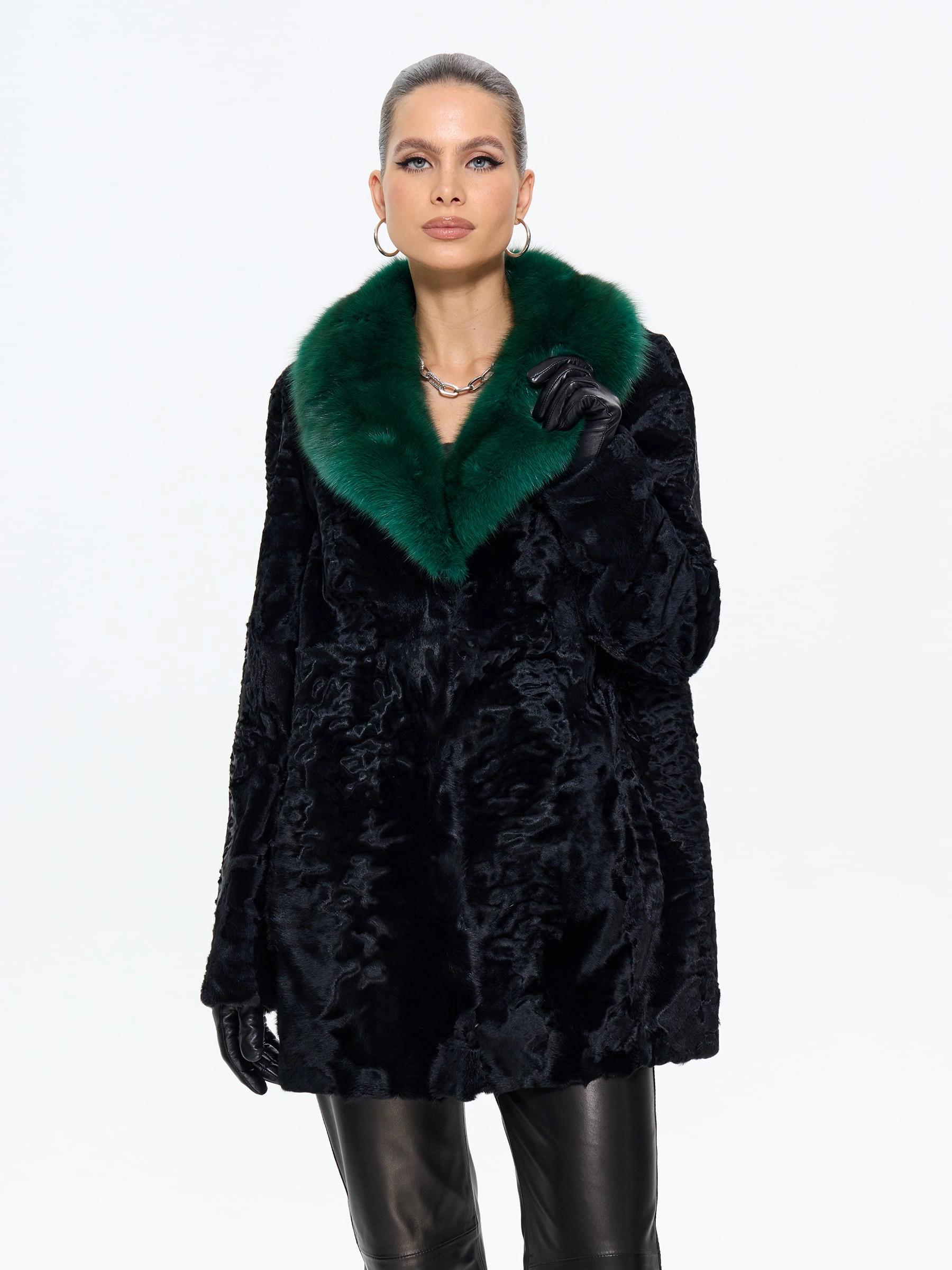 Шуба из меха каракульчи премиум-класса с элегантным английским воротником. Классический прямой силуэт длиной 80 см подчеркивает стройность и воплощает утонченный шарм. Модель с втачными рукавами и застежкой-клипсами легко дополняется аксессуарами. Стилисты рекомендуют носить эту шубу с кожаными перчатками, объемной сумкой и сапогами-челси для повседневного образа или с платьем-футляром и жемчугом для вечернего выхода. Это идеальный вариант для ценительниц вечной классики и безупречного стиля.