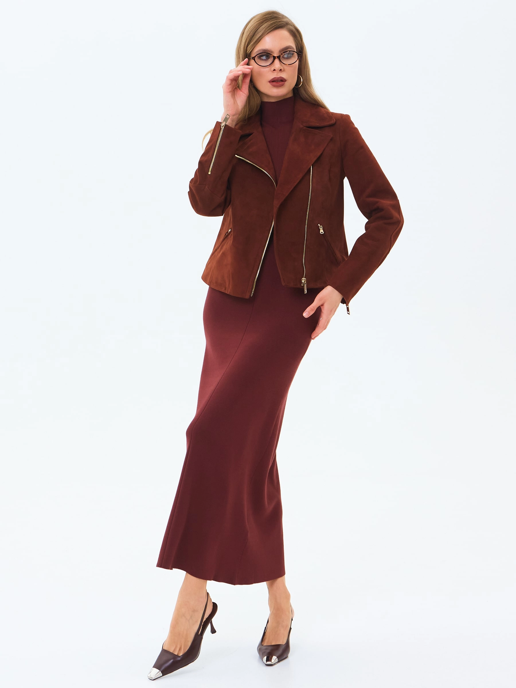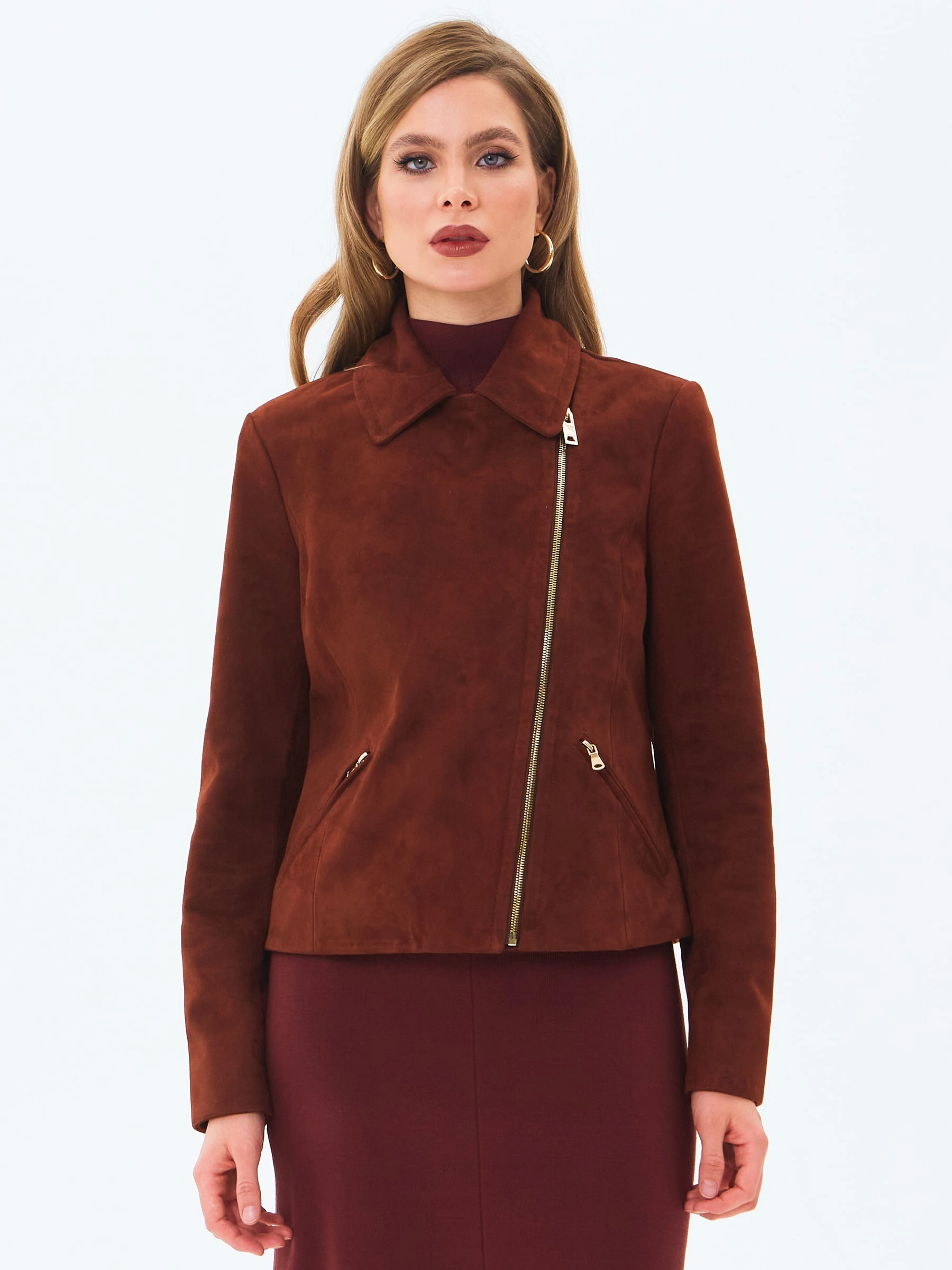 Короткая женская замшевая куртка косуха премиум класса 3095з, табачная, размер 46, артикул 24450