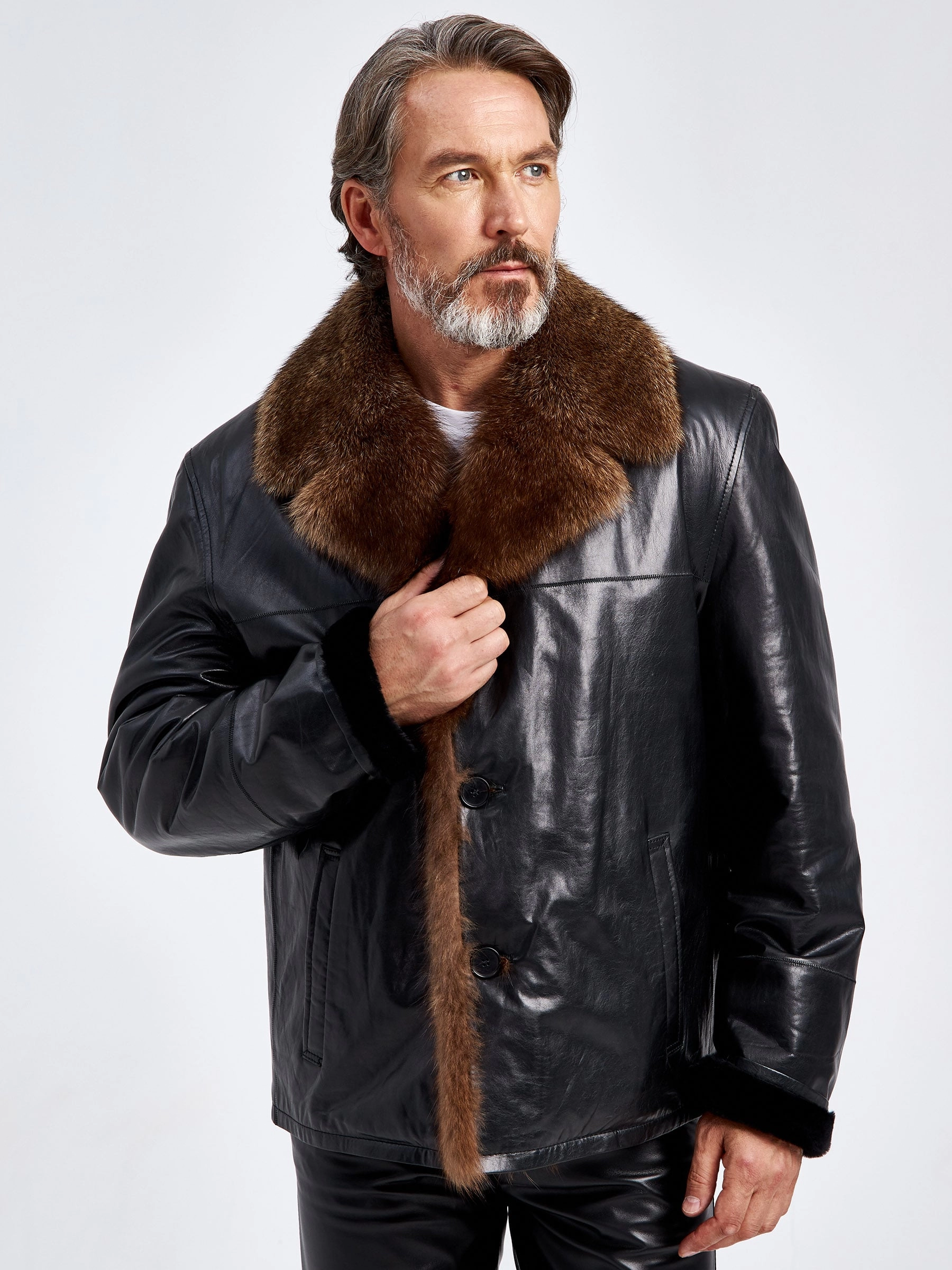 Товар кожаная мужская дубленка с воротником меха соболя премиум класса 4365, черная, размер 58, артикул 71040 выполнен из натуральной кожи с застежкой пуговицы. Рассчитан на сезон: осень-зима. Длина изделия 70 см, силуэт прямой.